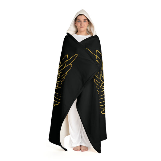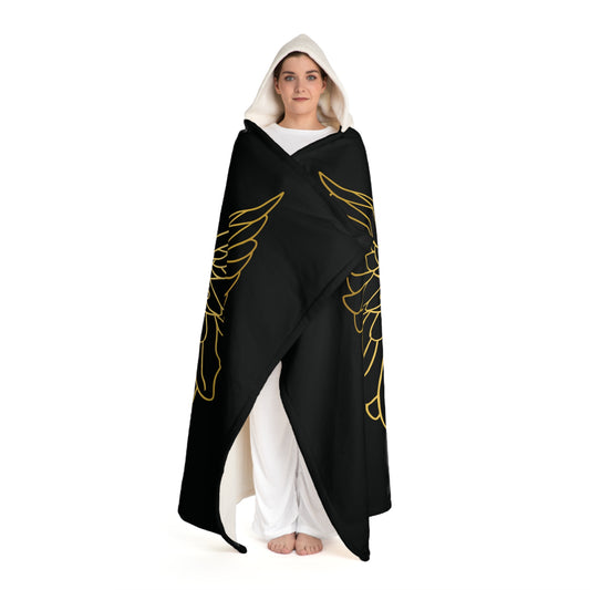 ENGELSFLÜGEL GOLDGELB • Kapuzen Kuscheldecke Schwarz • Wohndecke Sherpa 130cm x 180cm