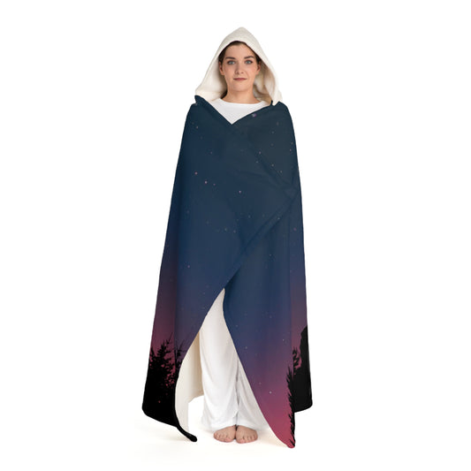 WALD BÄUME LILA HIMMEL VIOLET • Kapuzen Kuscheldecke Violet Lila • Wohndecke Sherpa 130cm x 180cm