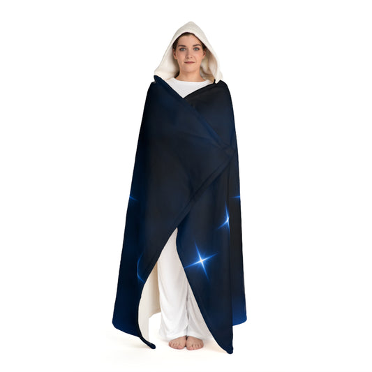 STERNEN MAGIE • Kapuzen Kuscheldecke Dunkelblau • Wohndecke Sherpa 130cm x 180cm