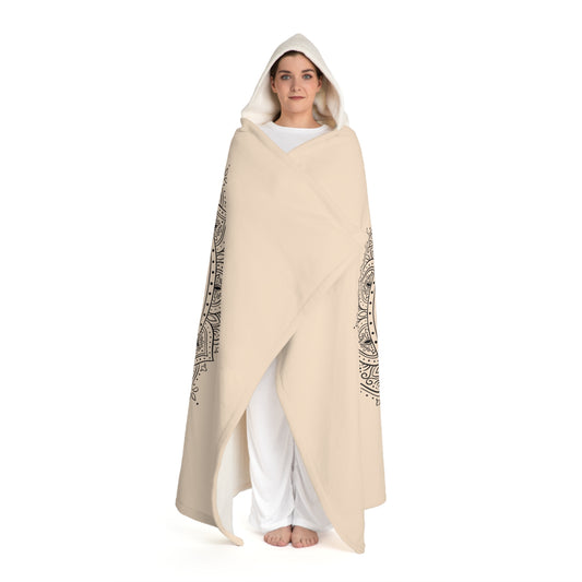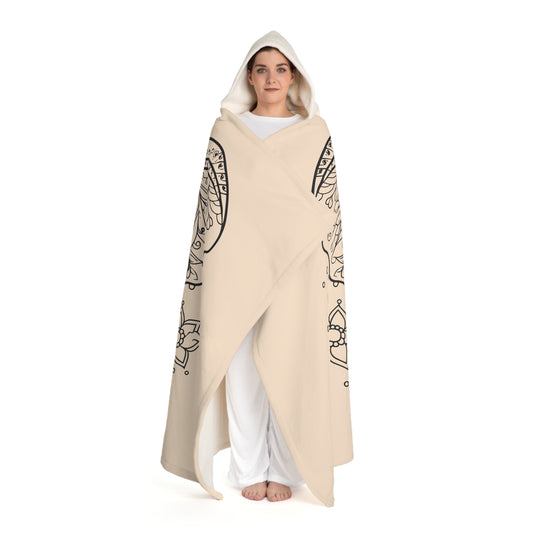 LOTUS MOND ORNAMENT SPIRITUELL • Kapuzen Kuscheldecke Beige Creme • Wohndecke Sherpa 130cm x 180cm