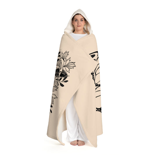 MANDALA BLUME • Kapuzen Kuscheldecke Beige Creme • Wohndecke Sherpa 130cm x 180cm