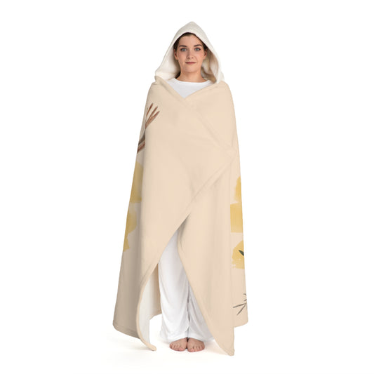 KATZE MOND • Kapuzen Kuscheldecke Beige Creme • Wohndecke Sherpa 130cm x 180cm