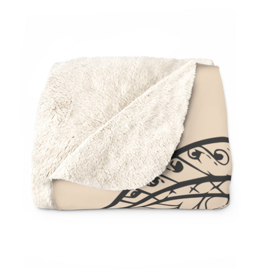 OLIVENBAUM PFLANZENMOTIV • Meditationsdecke Beige & CremeWeiß • Sherpa Wohndecke 130x150cm & 150x200cm