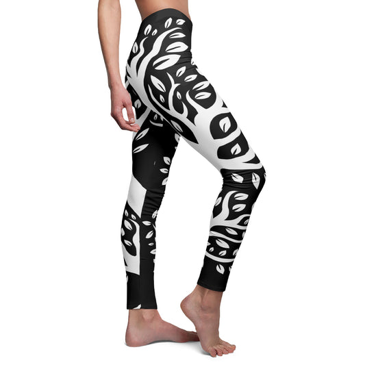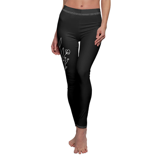 BLUMEN BLUMENZEICHNUNG MOTIV FLORAL • Elegante Damen Leggins Schwarz • Beste Leggings für Sport & Freizeit