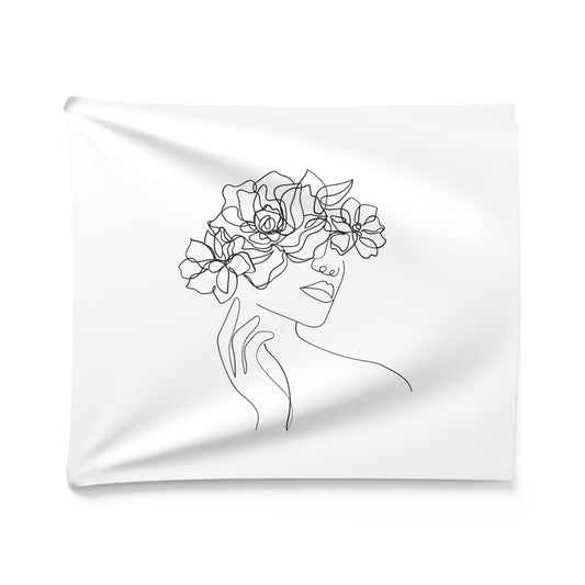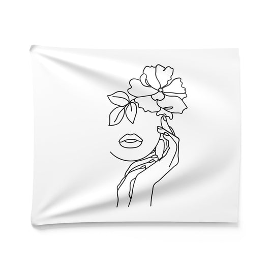 SCHÖNE FRAU mit BLUMEN - Ästhetisch • Wandtuch • Wandttepich Schwarz Weiß • Wanddekor in v. Größen bis XXL