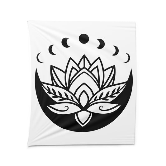 LOTUSBLÜTE MONPHASEN • Wandtuch • Wandttepich Schwarz Weiß • Wanddekor in v. Größen bis XXL