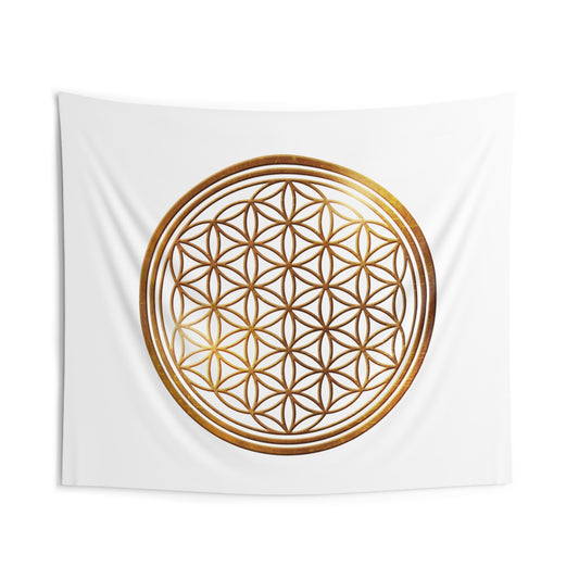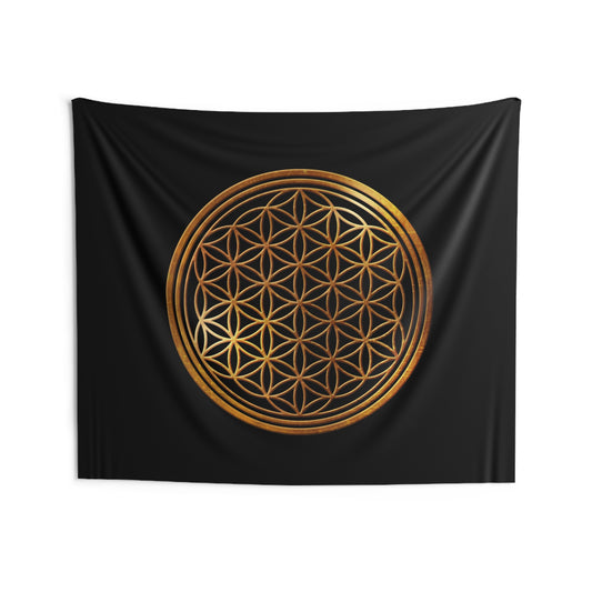 BLUME DES LEBENS - Bronzegold • Wandtuch • Wandttepich Schwarz • Wanddekor in v. Größen bis XXL