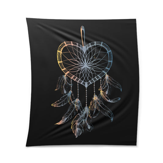 TRAUMFÄNGER HERZFORM INDIANERFERDERN • Wandtuch • Wandttepich Schwarz Weiß • Wanddekor in v. Größen bis XXL