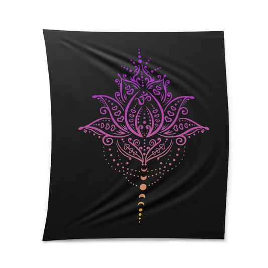 LOTUSBLÜTE MONDPHASEN LILA Pink • Wandtuch • Wandttepich Schwarz • Wanddekor in v. Größen bis XXL