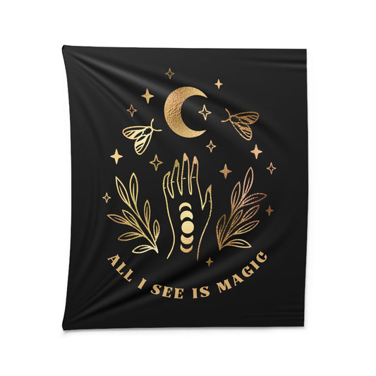ALL I SEE IS MAGIC • Wandtuch • Wandttepich Schwarz • Wanddekor in v. Größen bis XXL