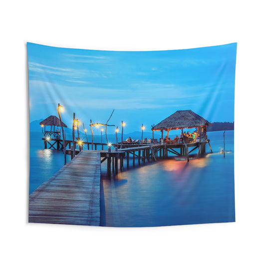 KARIBIK ABEND Strandhaus auf Meer • Urlaubsmotiv • Wandtuch • Wandttepich • Wanddekor in v. Größen bis XXL