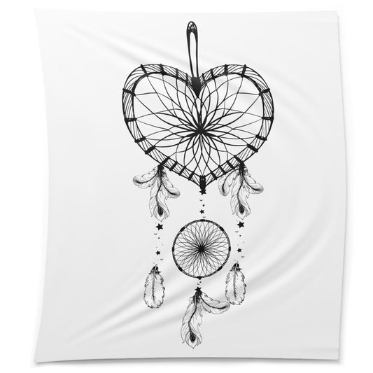 TRAUMFÄNGER HERZFORM INDIANER SYMBOL • Wandtuch • Wandttepich Schwarz Weiß • Wanddekor in v. Größen bis XXL