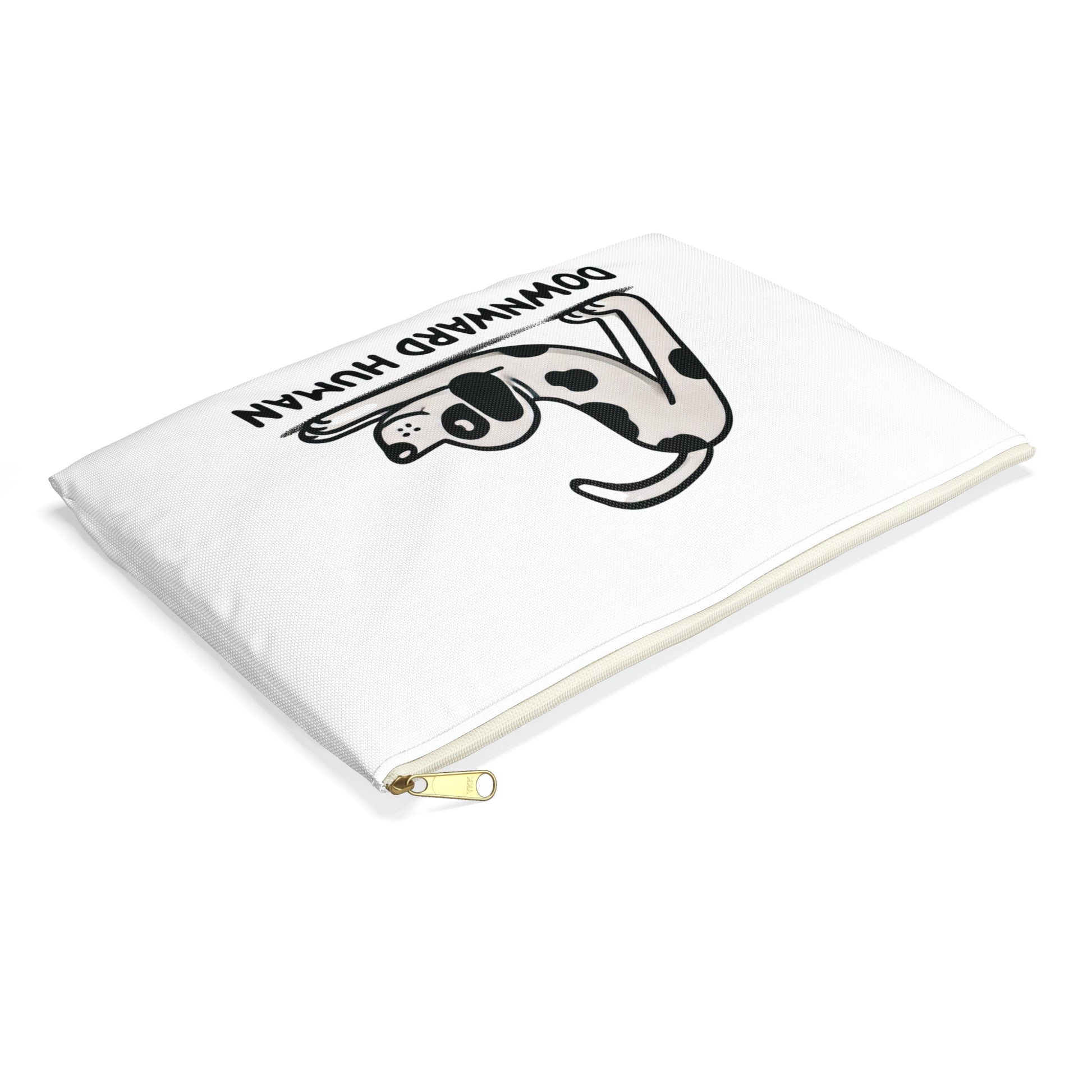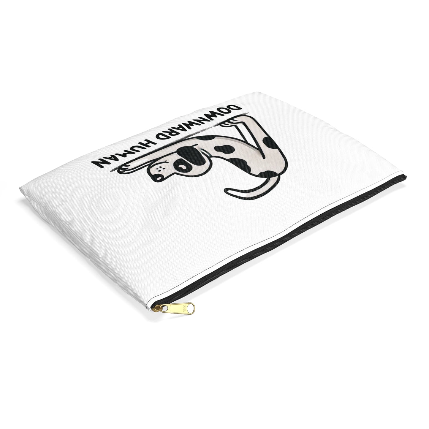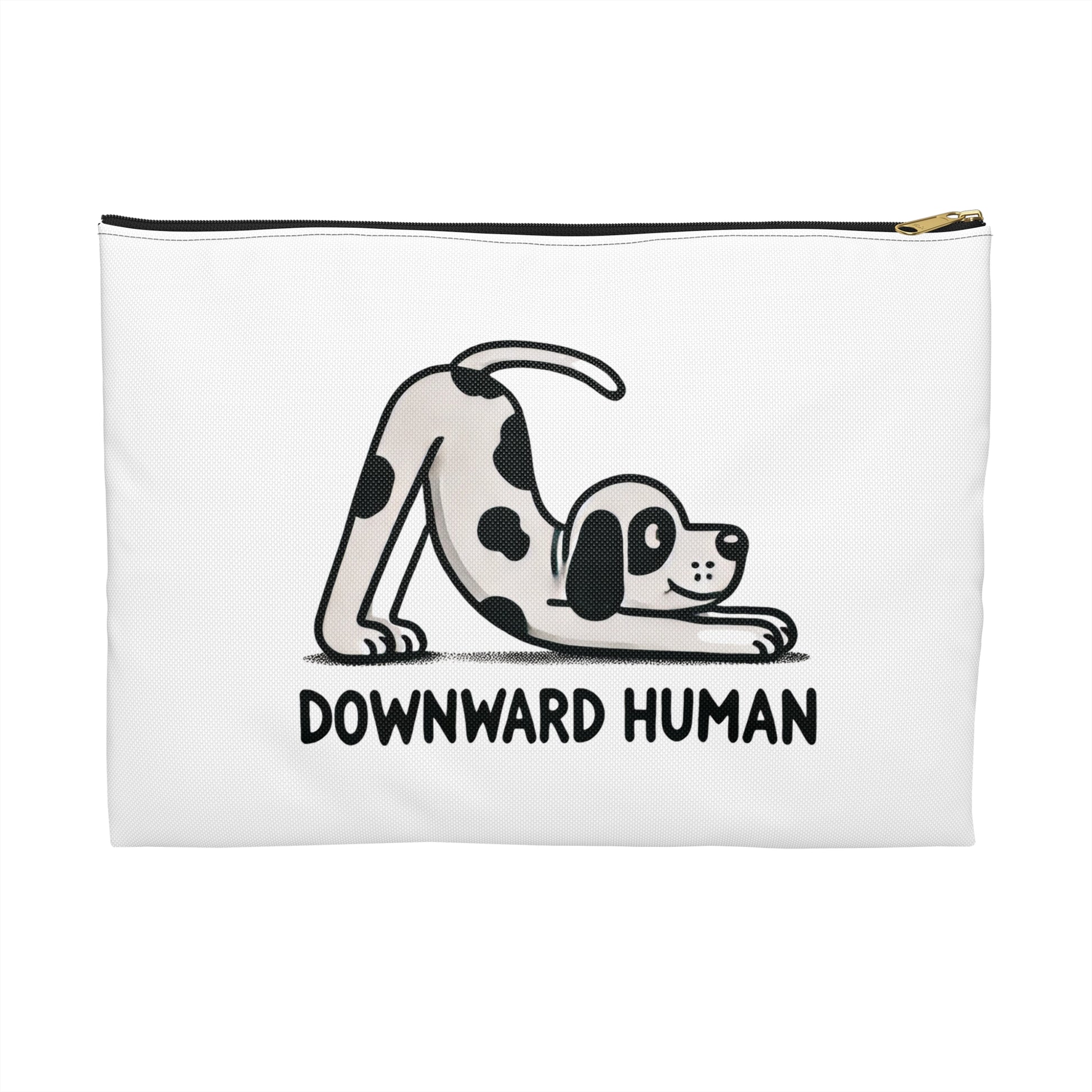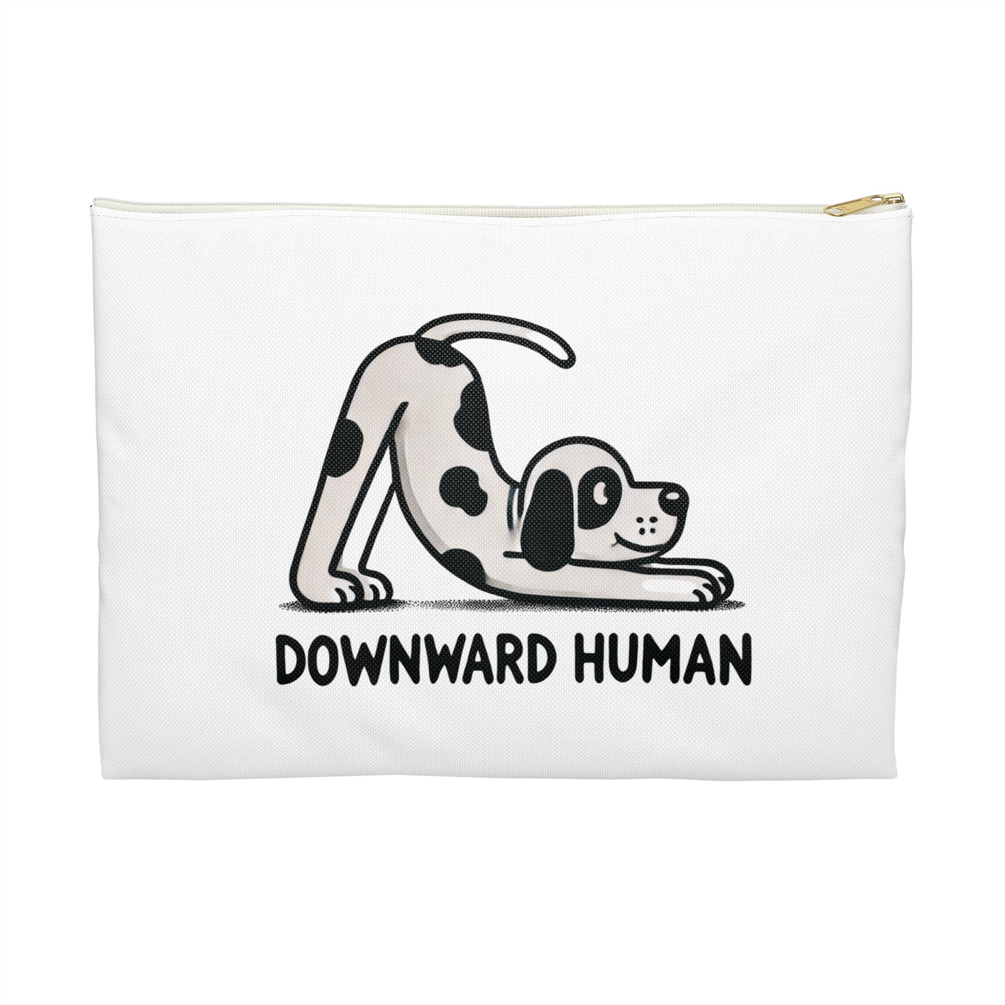 DOWNWARD HUMAN - Lustiger Yoga Hund - Tieryoga Pose Herabschauender Hund • Handtaschen Organizer Flach mit Reißverschluss • Groß & Klein