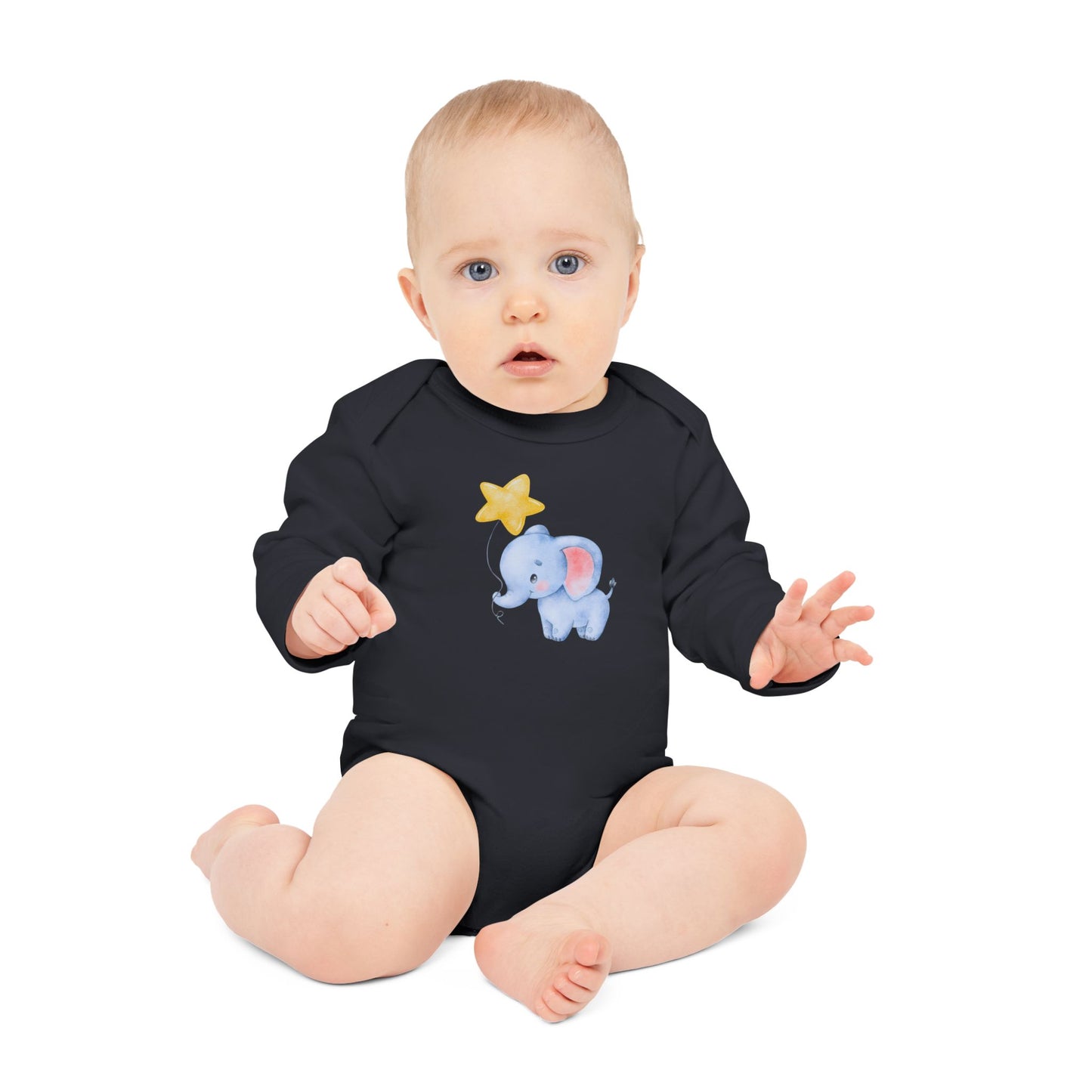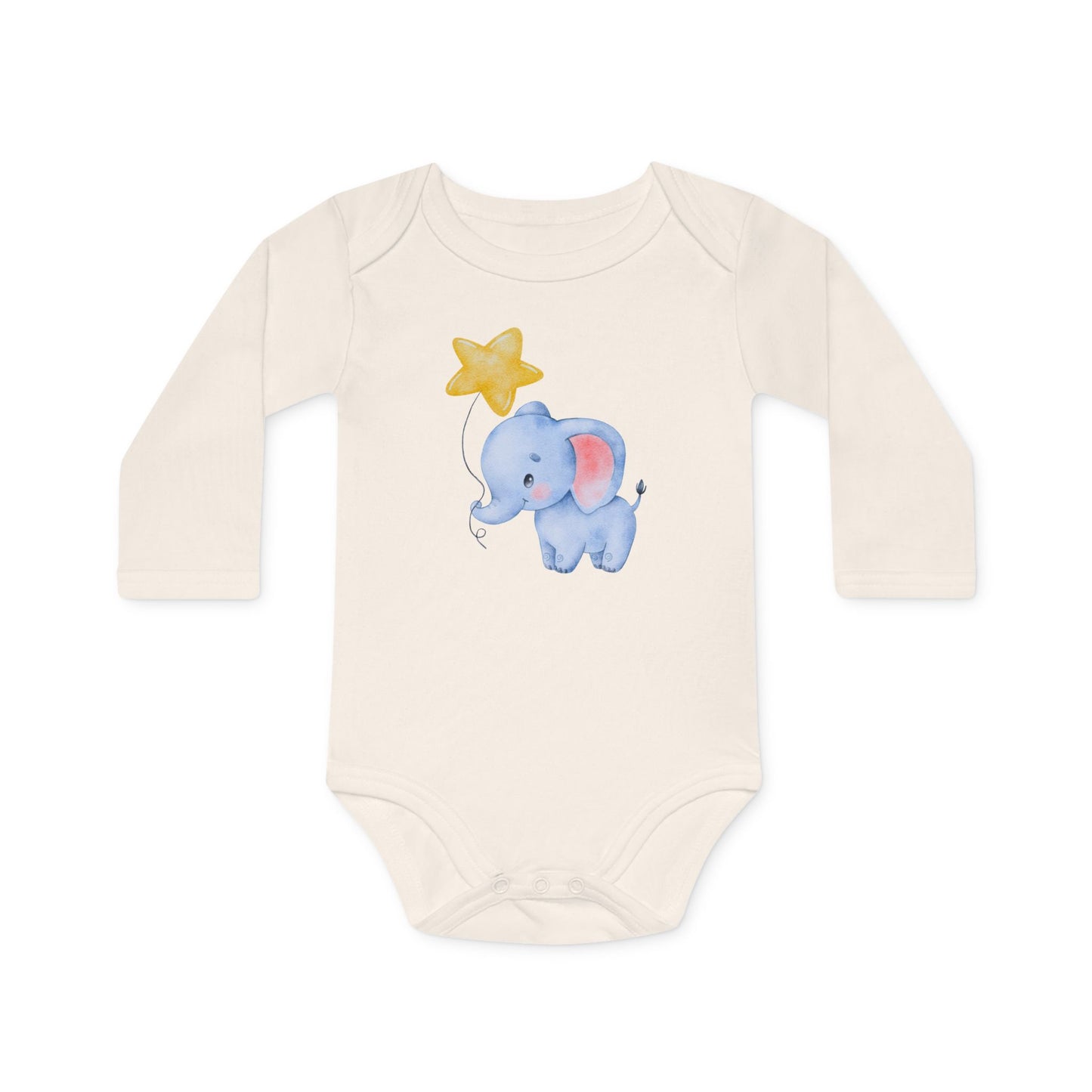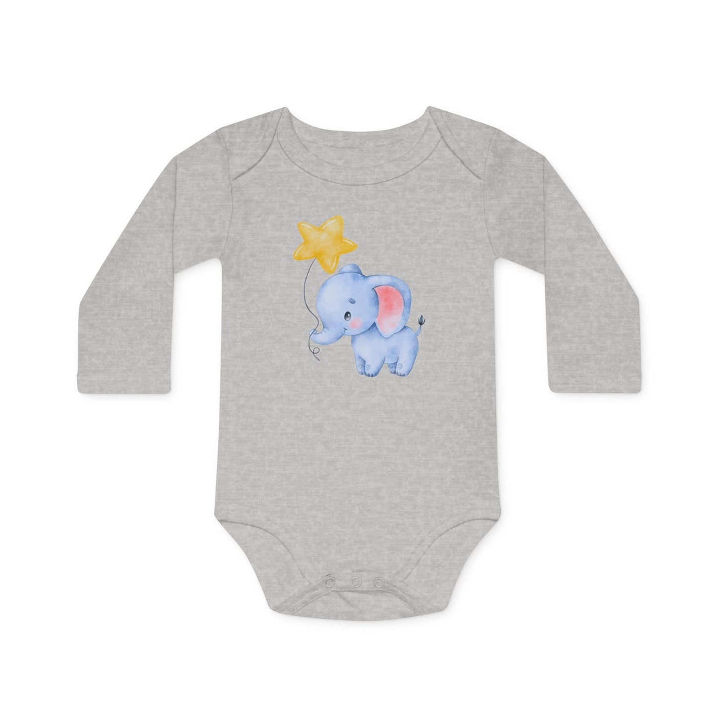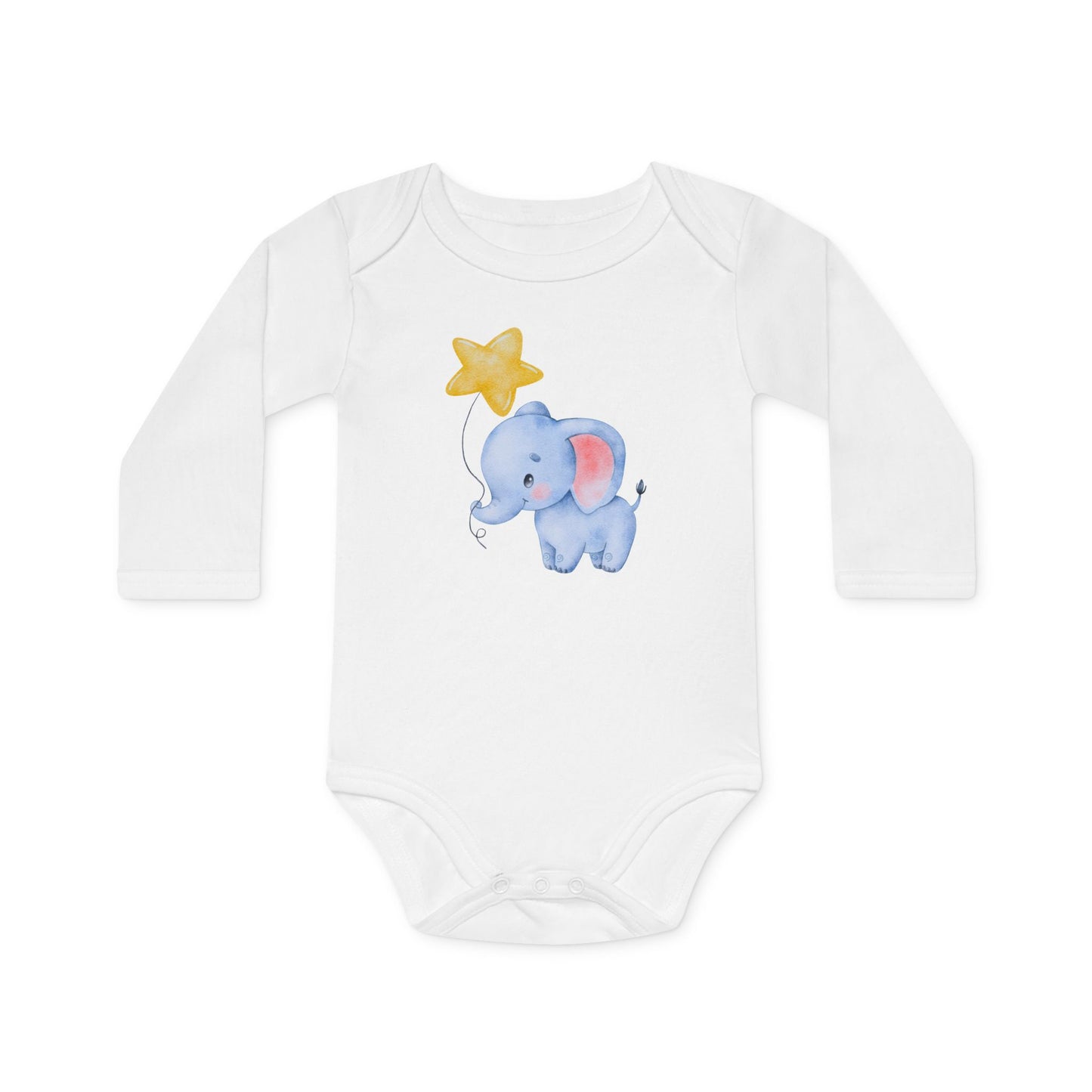 ELEFANT MIT STERNEN-LUFTBALLON • Niedlich süßer Baby Body Langarm • Mädchen & Jungen • BIO Baumwolle 🌿
