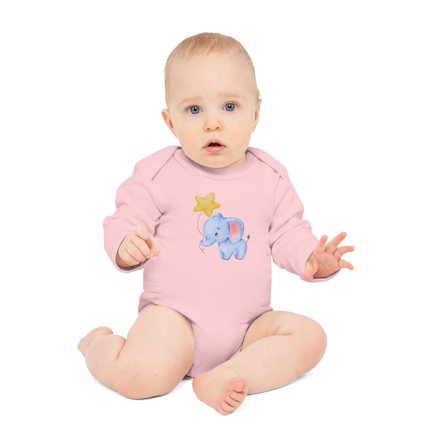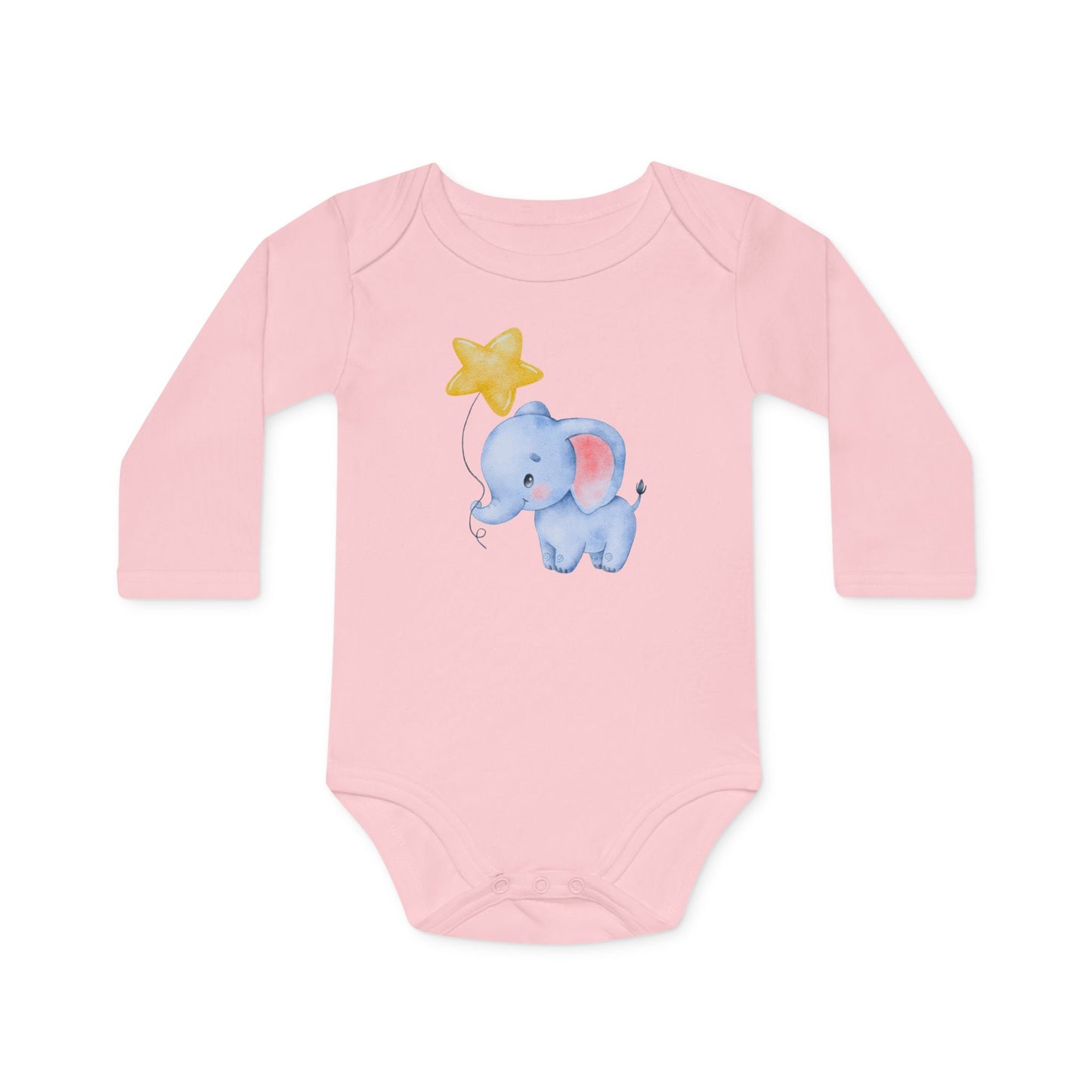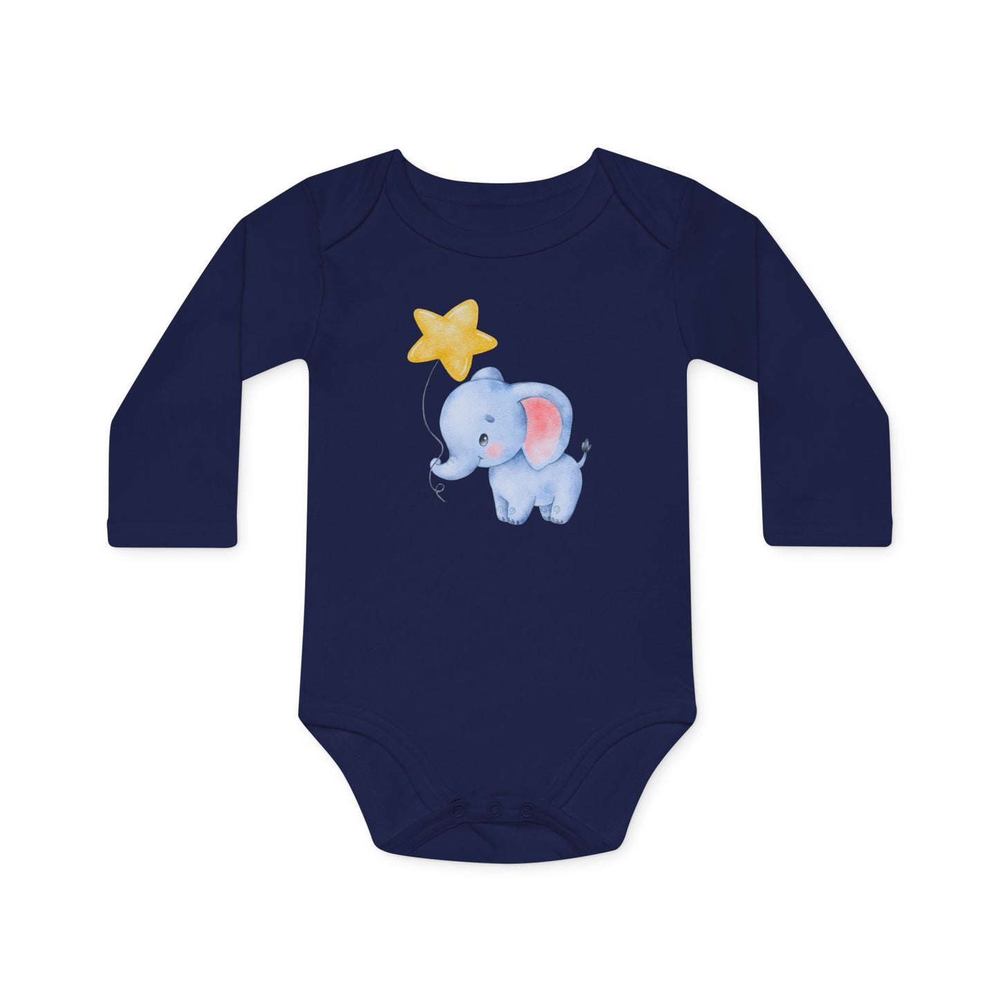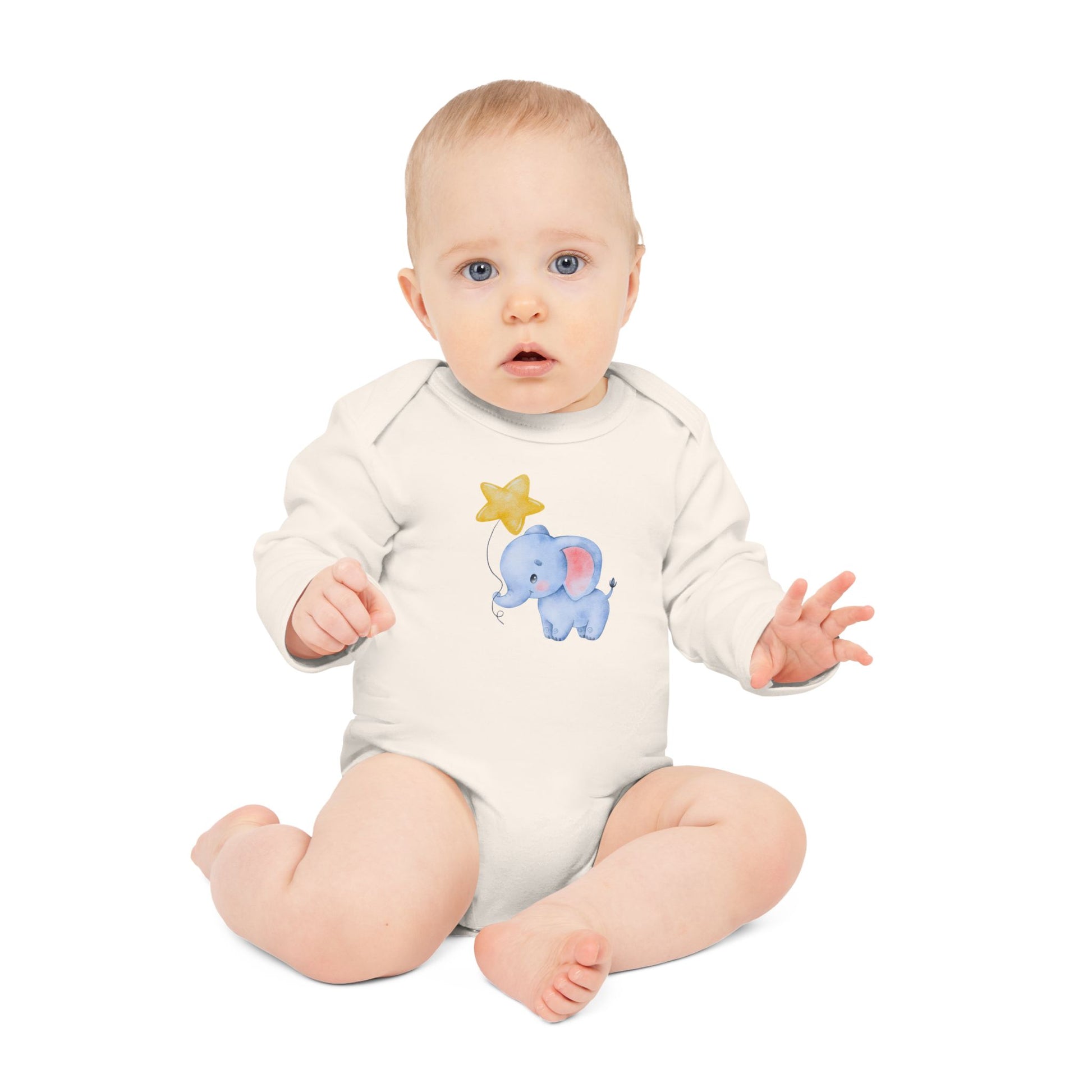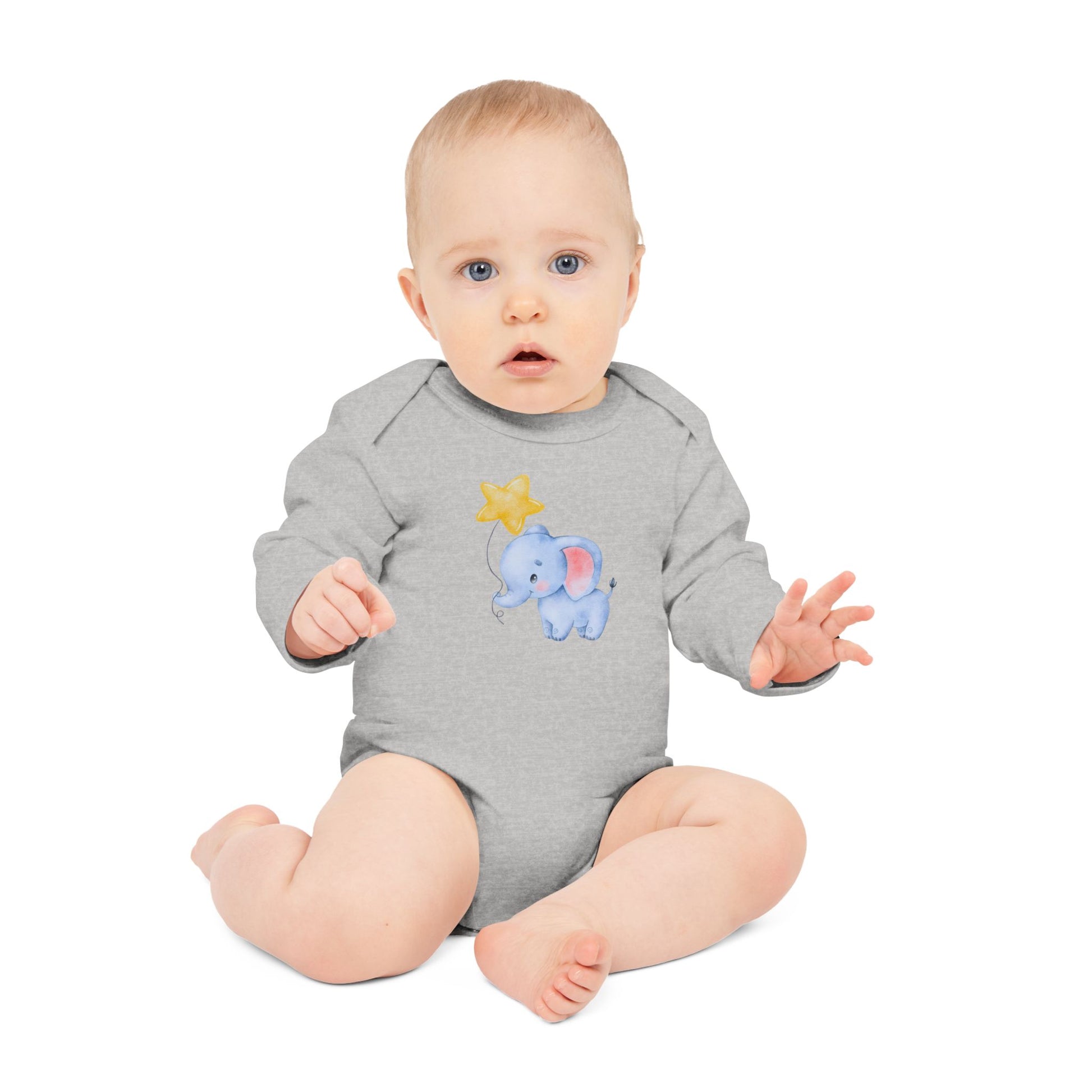 ELEFANT MIT STERNEN-LUFTBALLON • Niedlich süßer Baby Body Langarm • Mädchen & Jungen • BIO Baumwolle 🌿