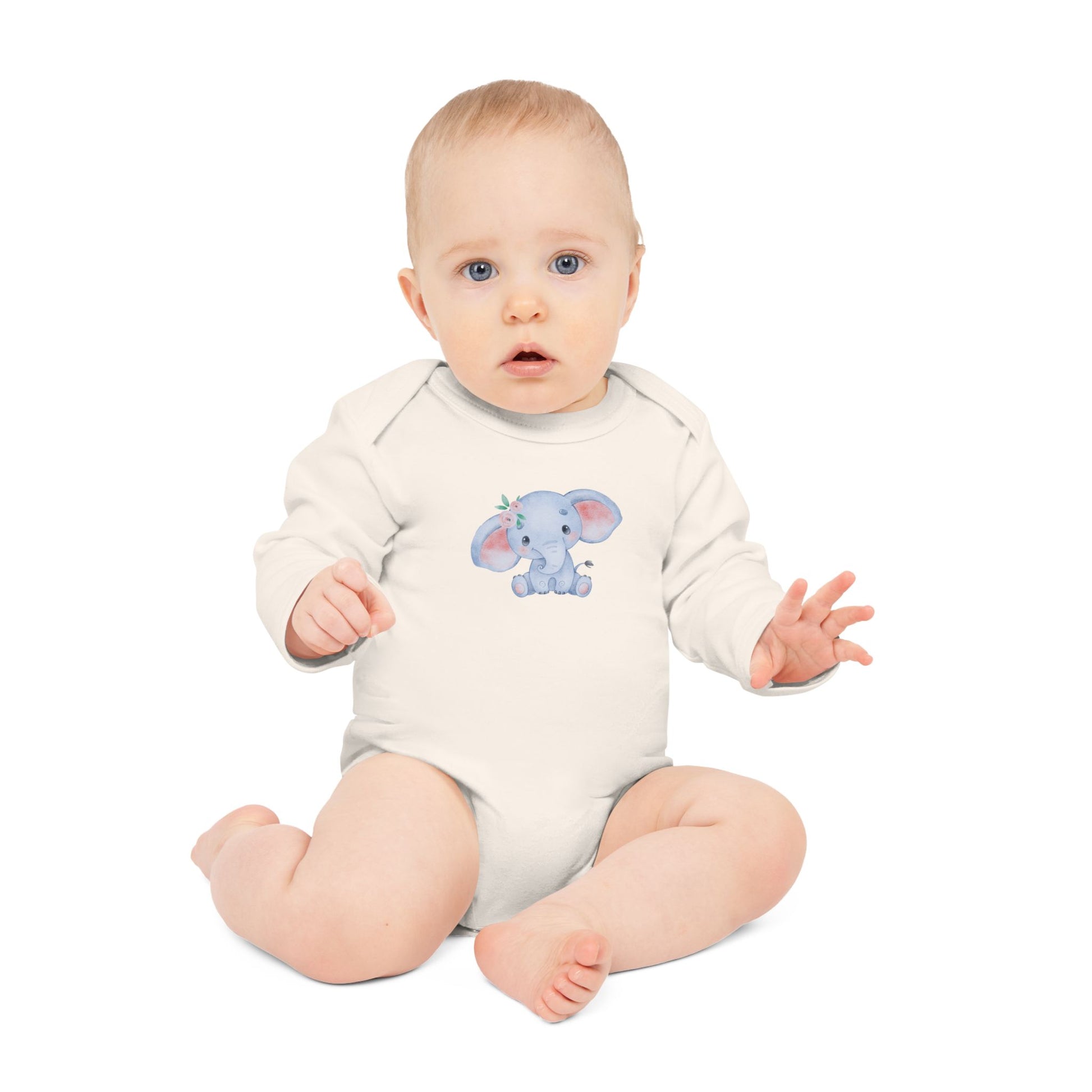 NIEDLICHER ELEFANT • Süßer Baby Body Langarm • Mädchen & Jungen • BIO Baumwolle 🌿