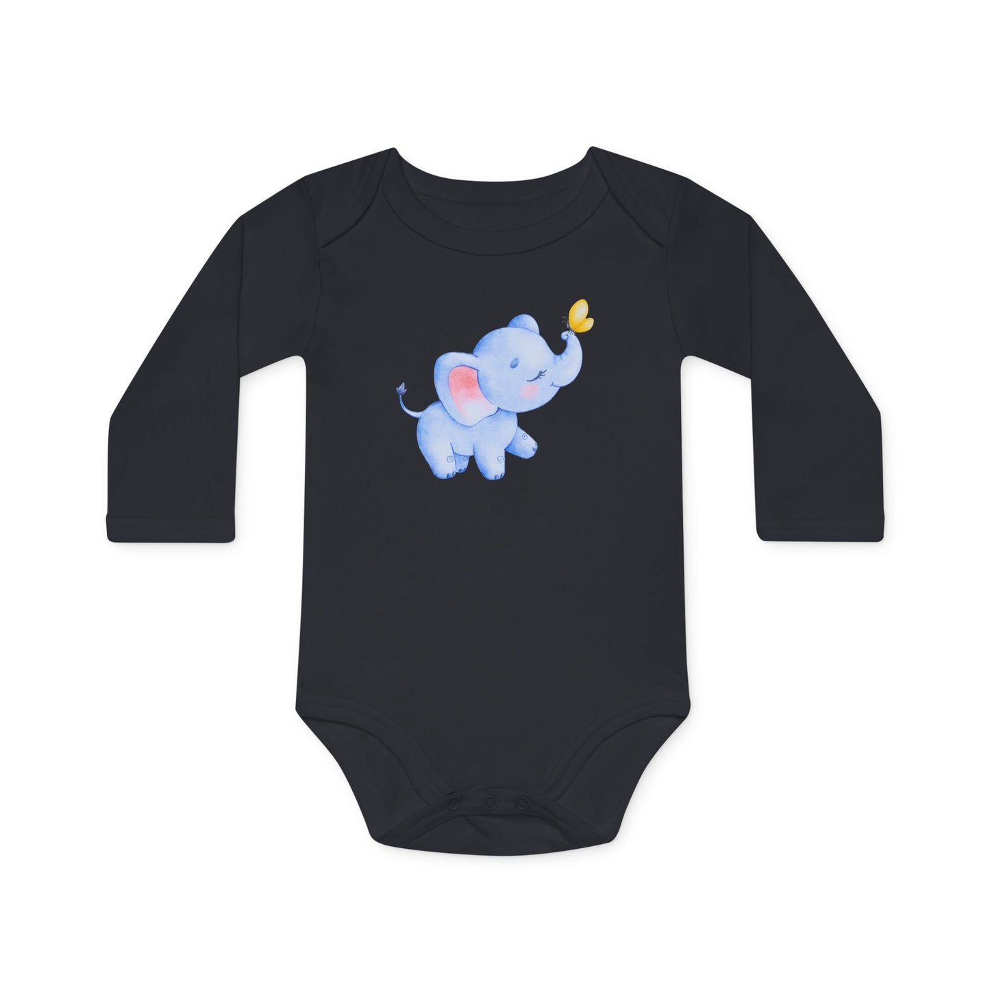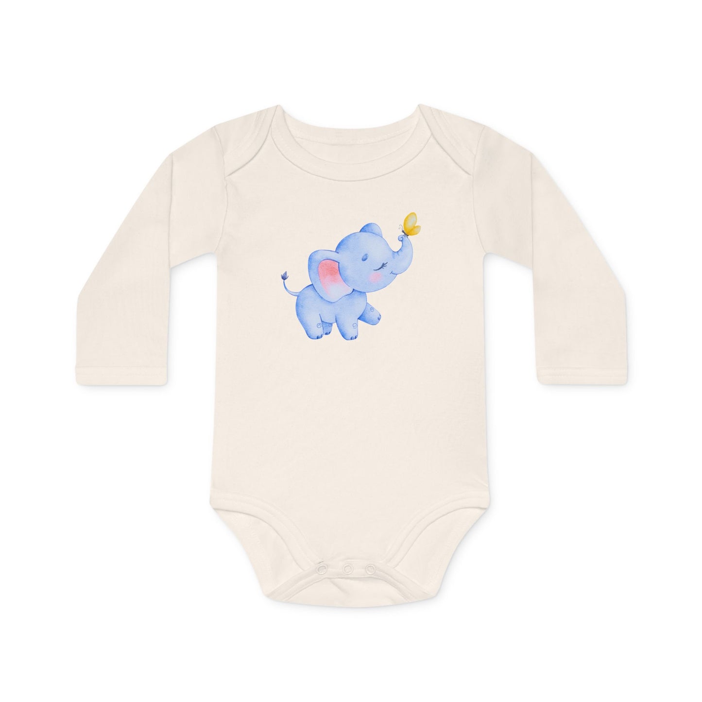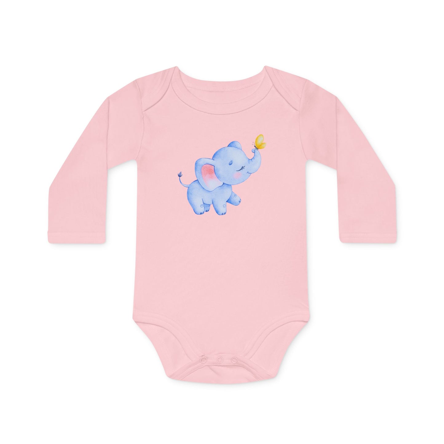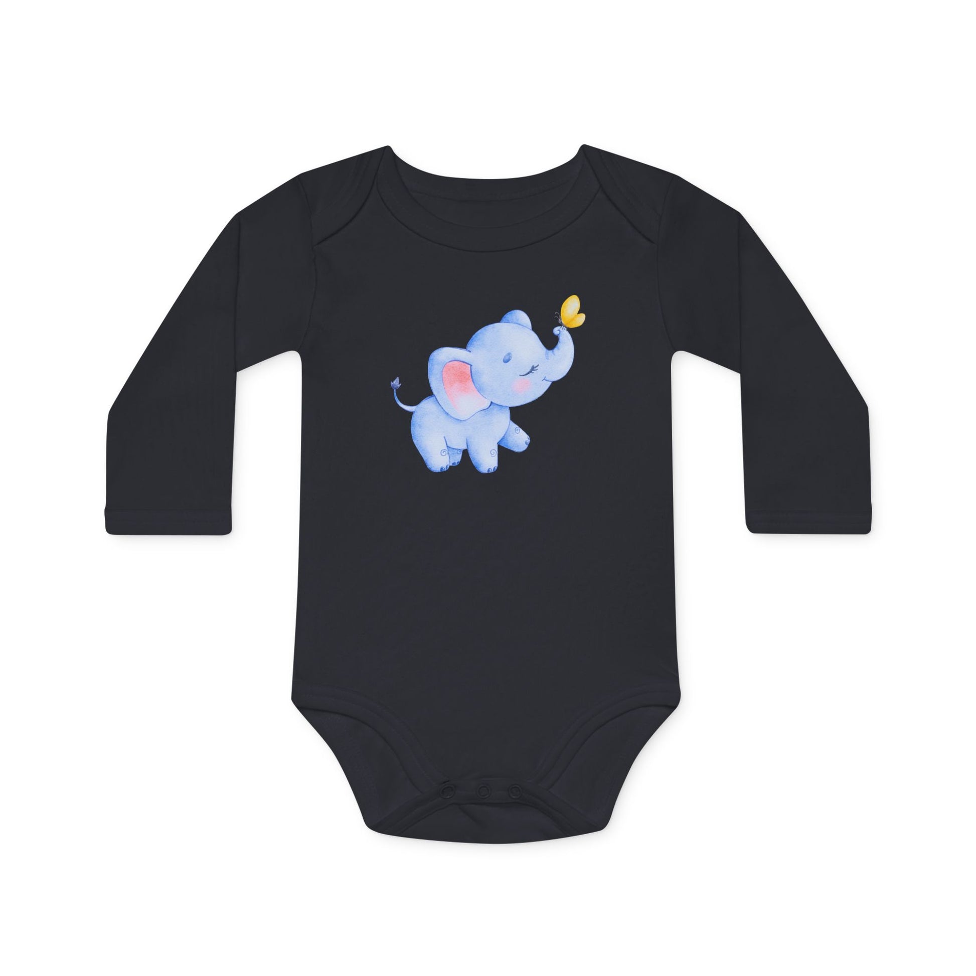 STRAMPLER ELEFANT MIT SCHMETTERLING • Niedlich Süßer Baby Body Langarm • Mädchen & Jungen • BIO Baumwolle 🌿