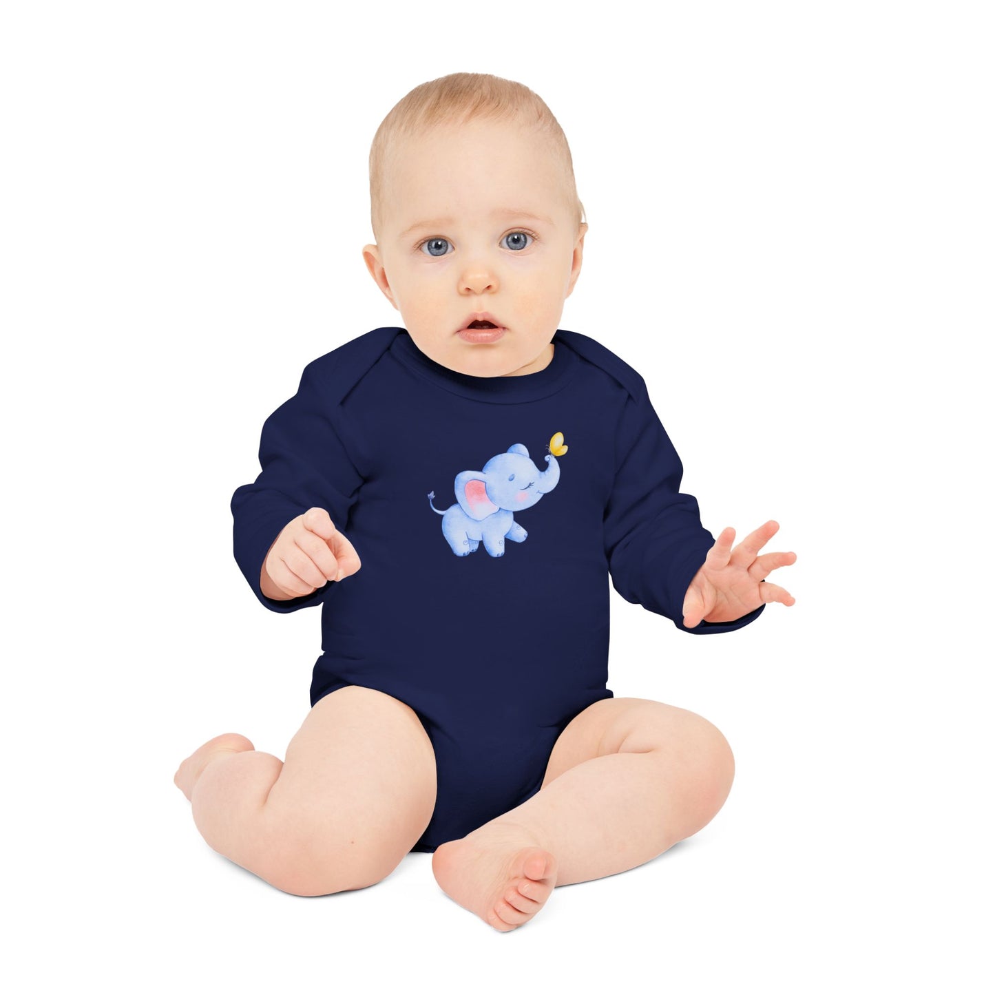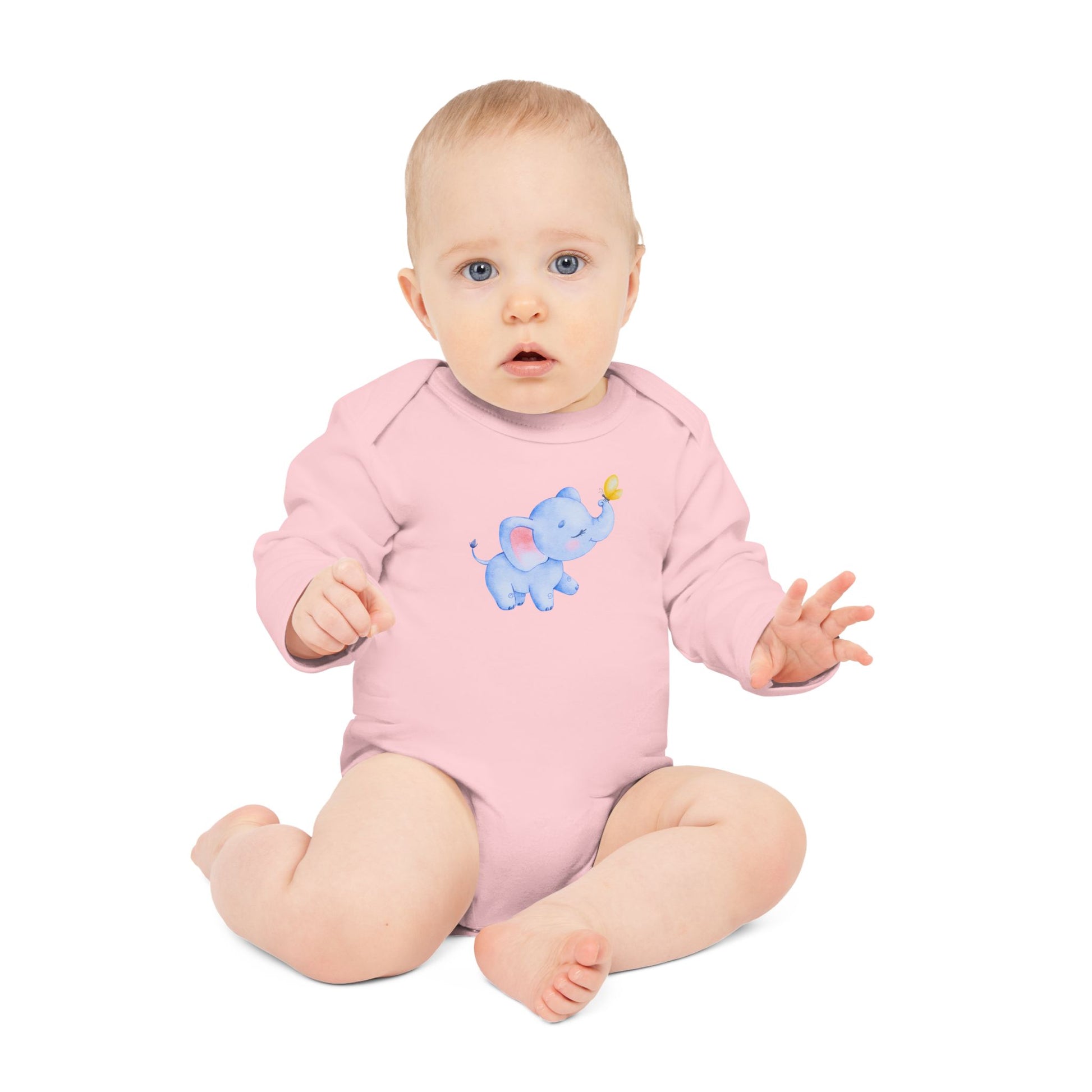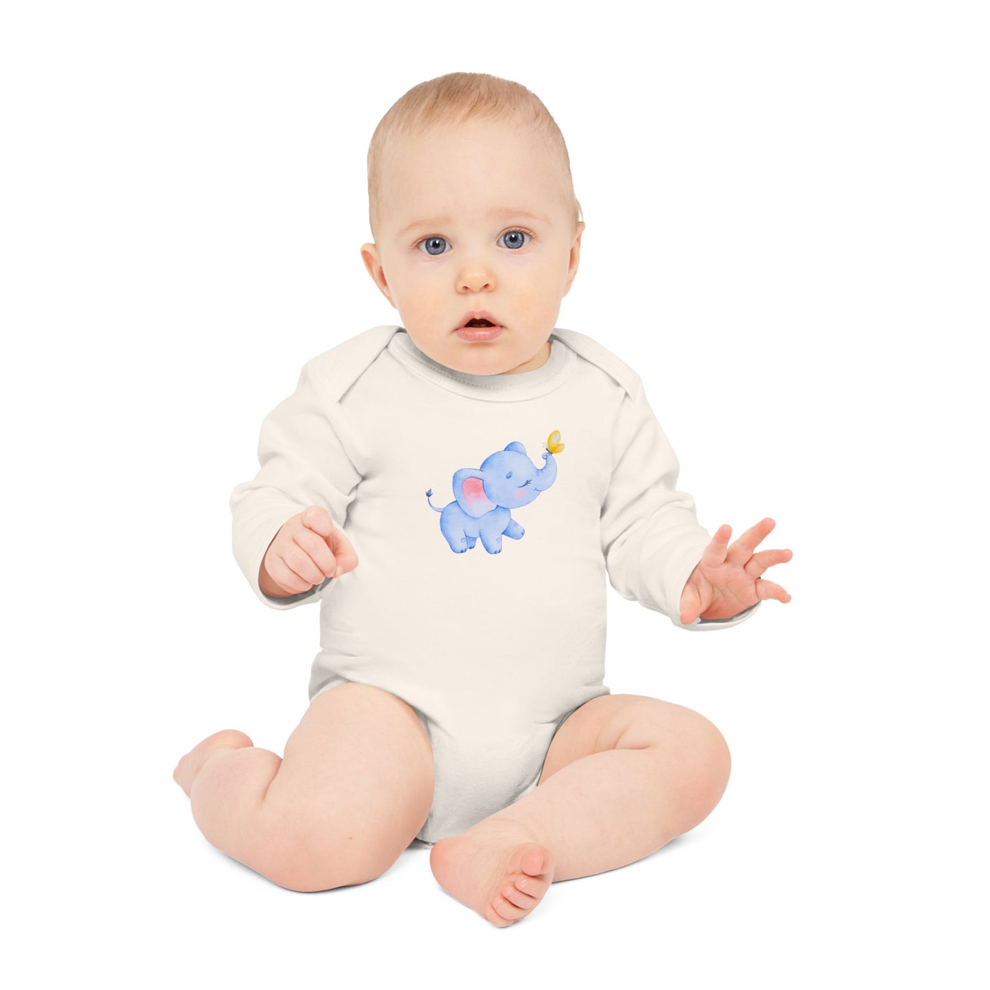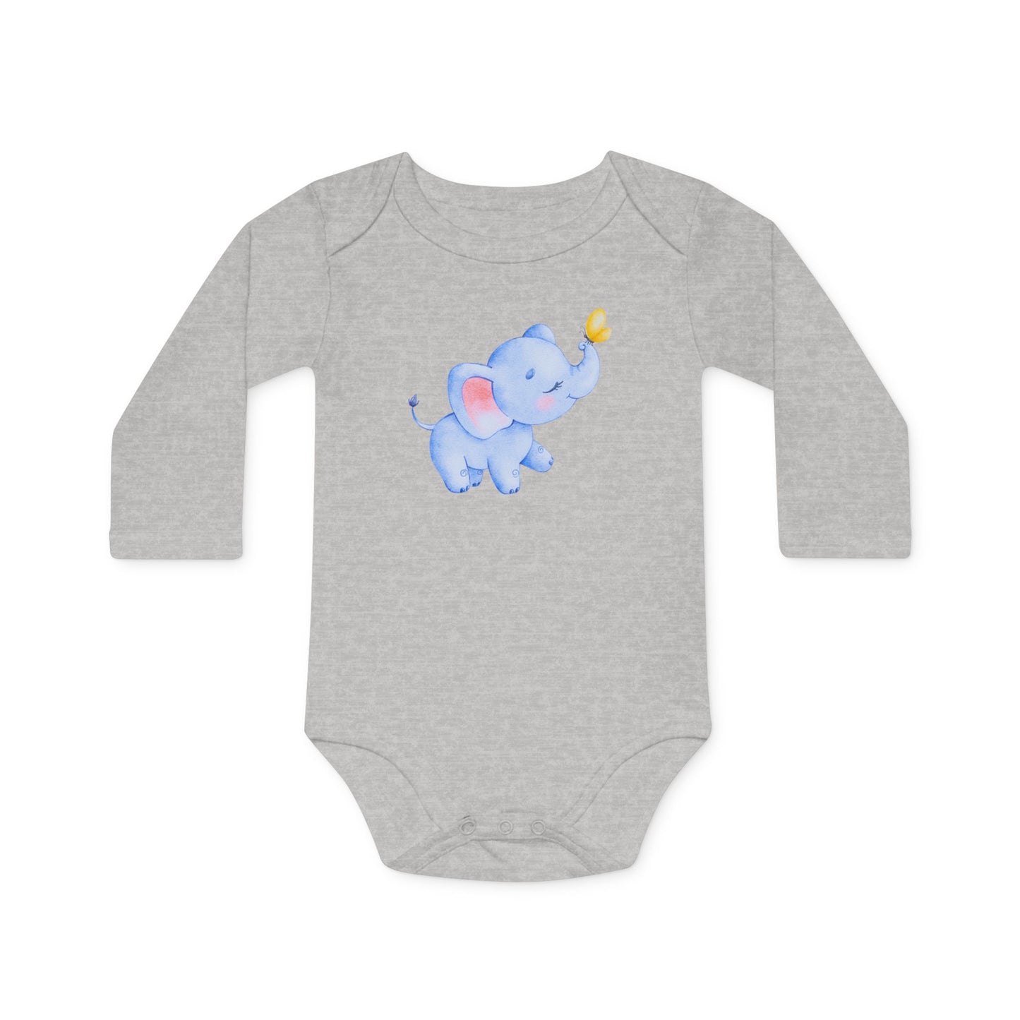 STRAMPLER ELEFANT MIT SCHMETTERLING • Niedlich Süßer Baby Body Langarm • Mädchen & Jungen • BIO Baumwolle 🌿