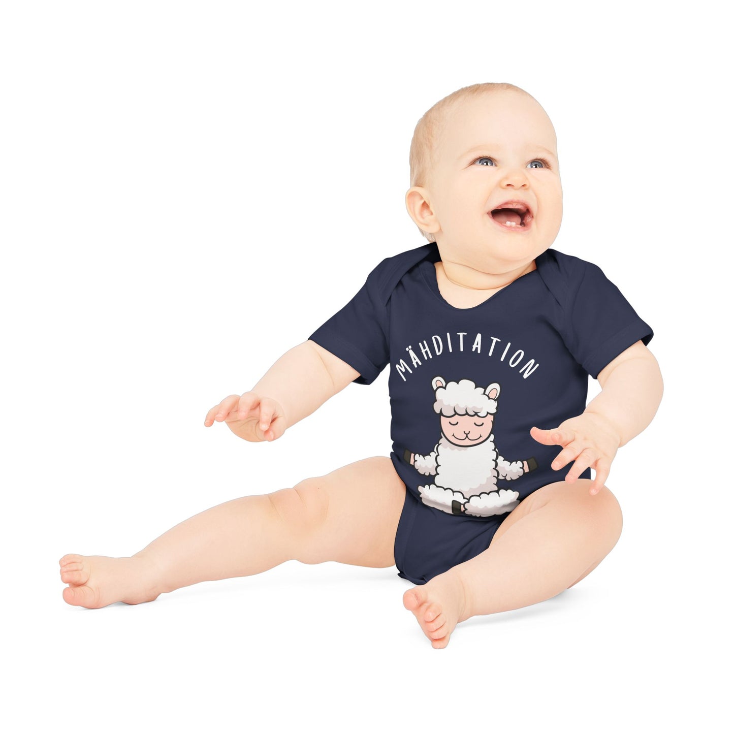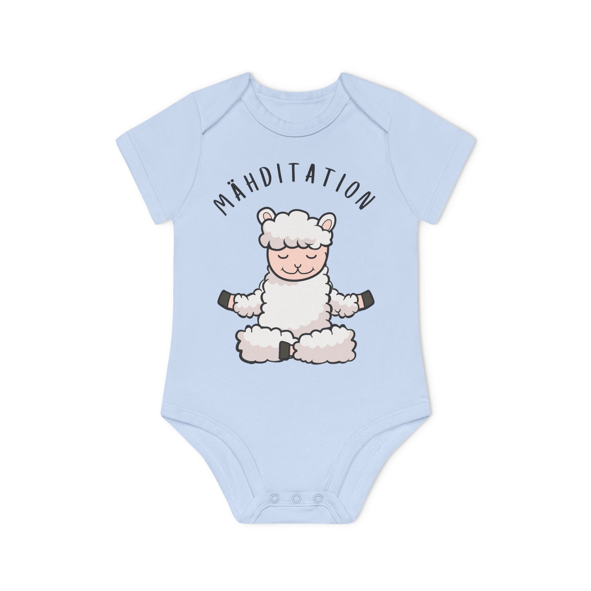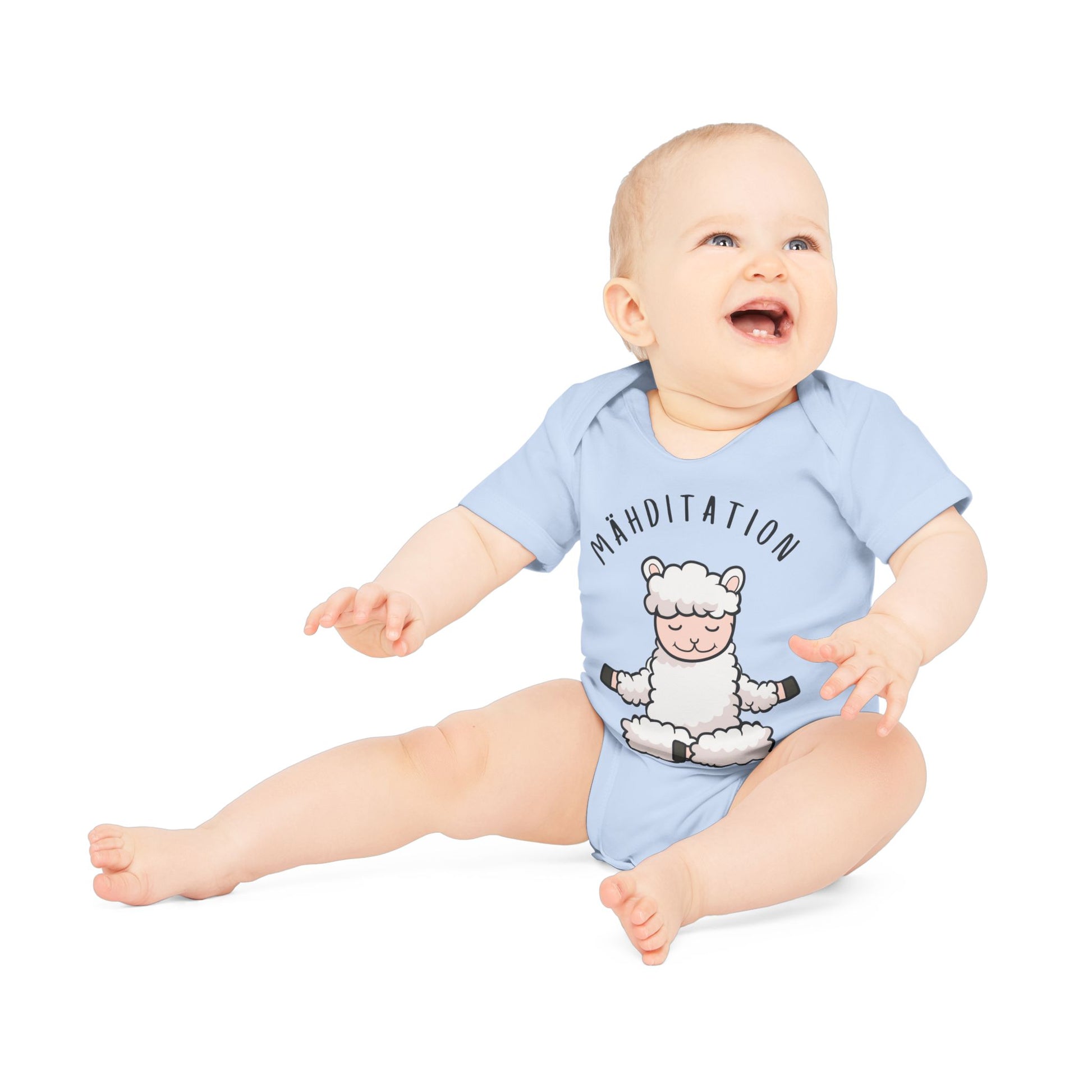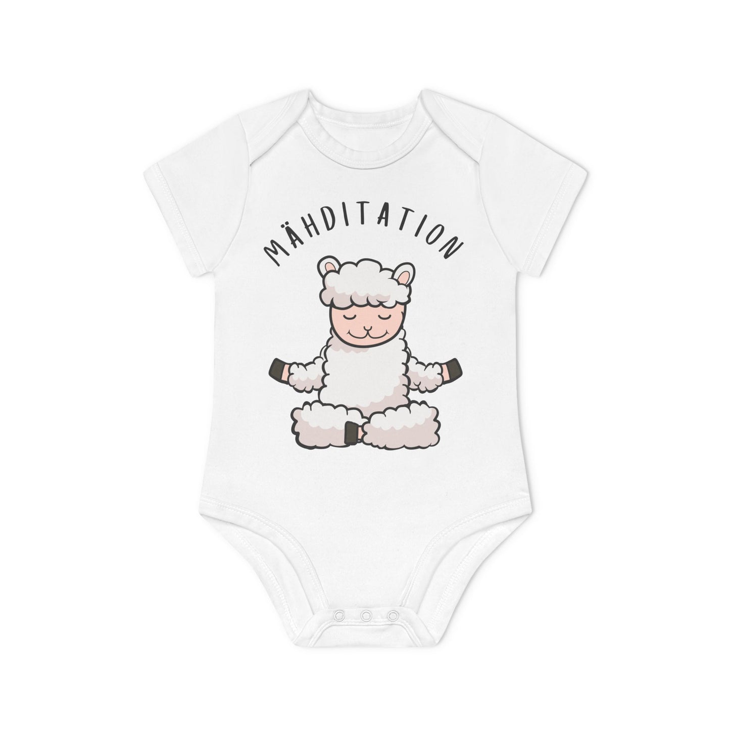 MÄHDITATION SCHAF LUSTIGE COMIC ZEICHNUNG TIERYOGA MEDITATION • Niedlich süßer Baby Body Kurzarm • Mädchen & Jungen • BIO Baumwolle 🌿