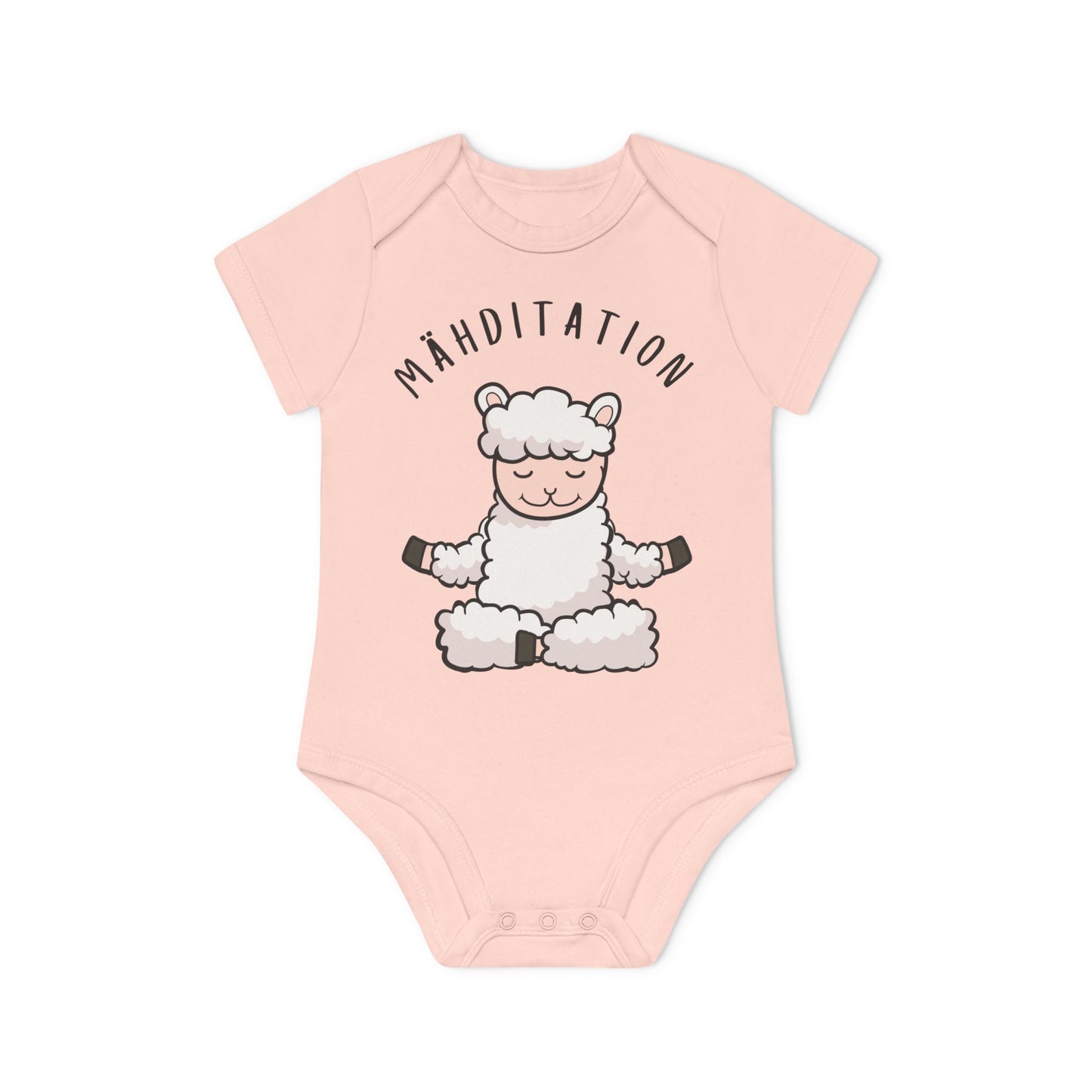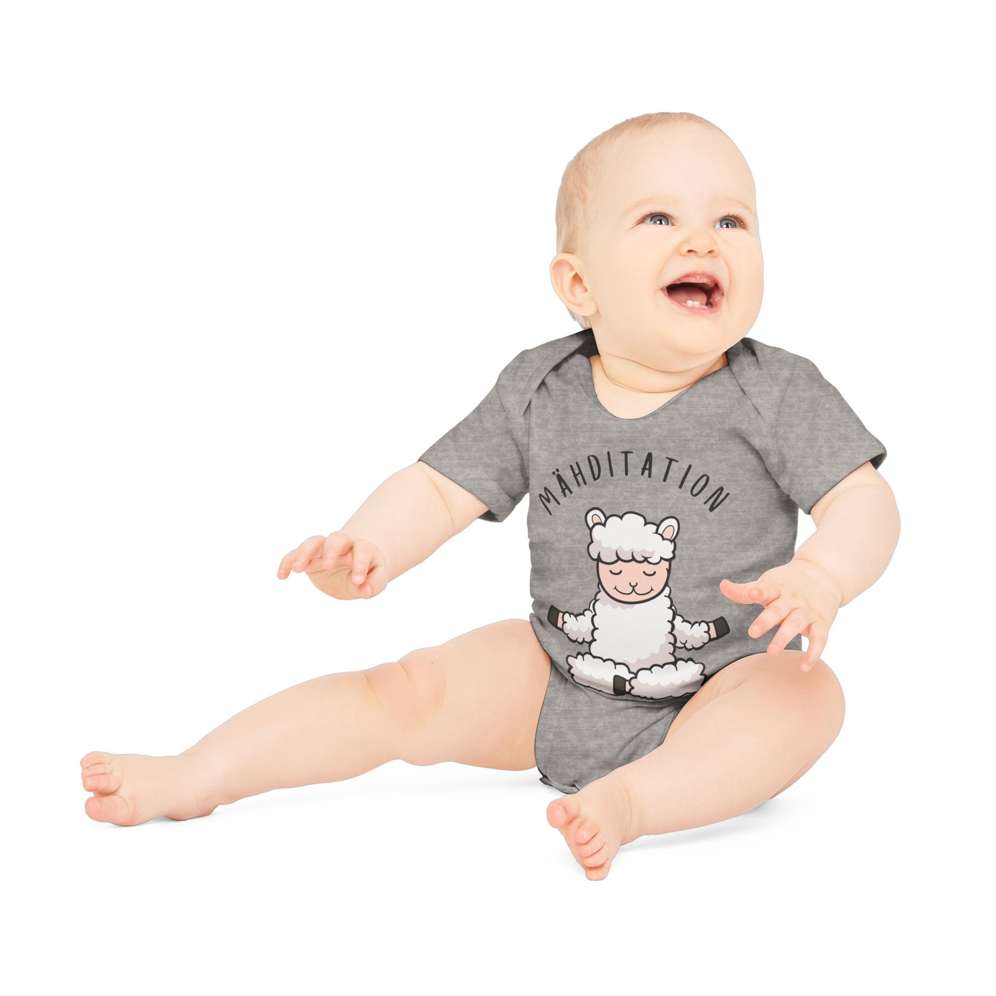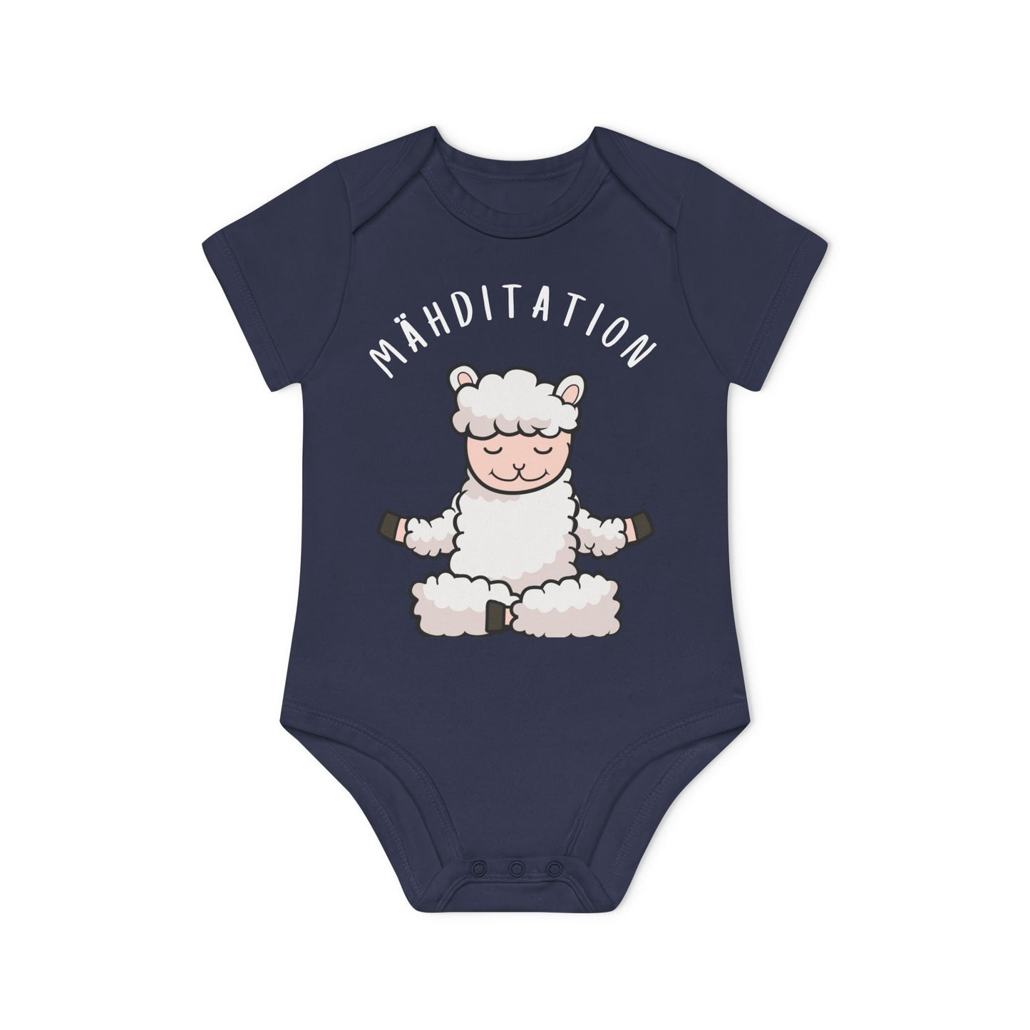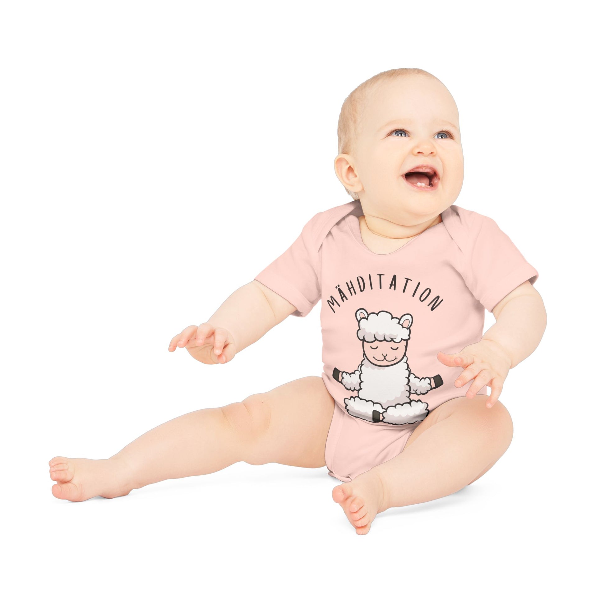 MÄHDITATION SCHAF LUSTIGE COMIC ZEICHNUNG TIERYOGA MEDITATION • Niedlich süßer Baby Body Kurzarm • Mädchen & Jungen • BIO Baumwolle 🌿