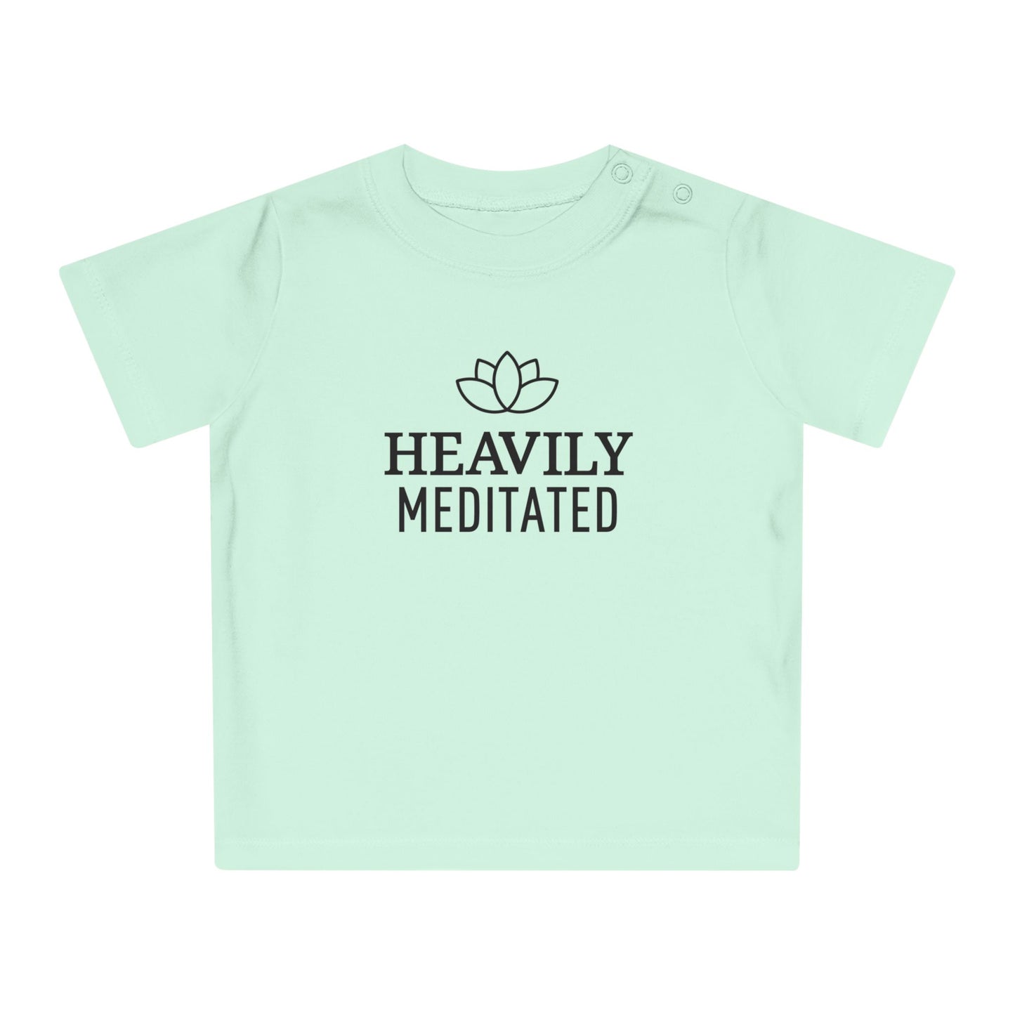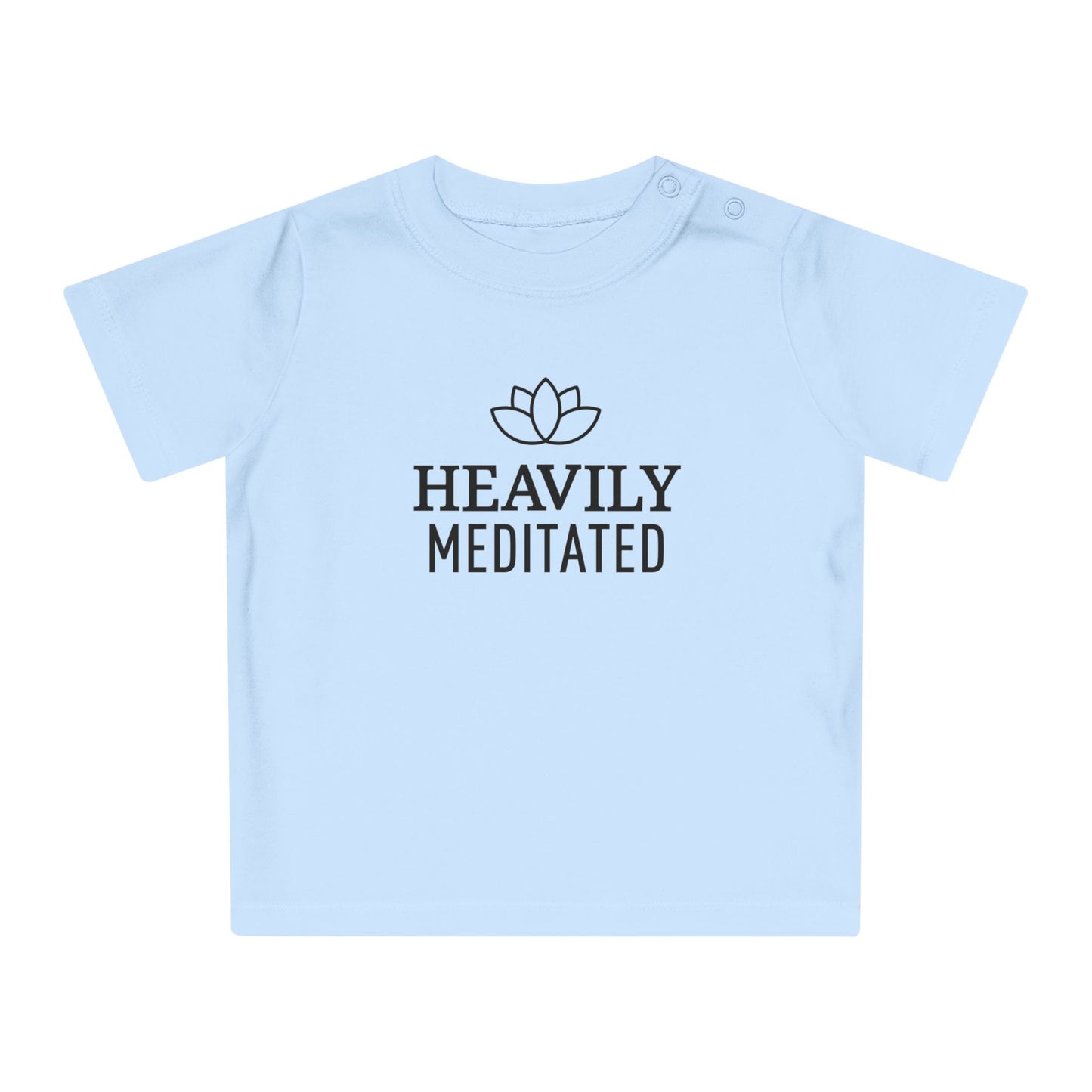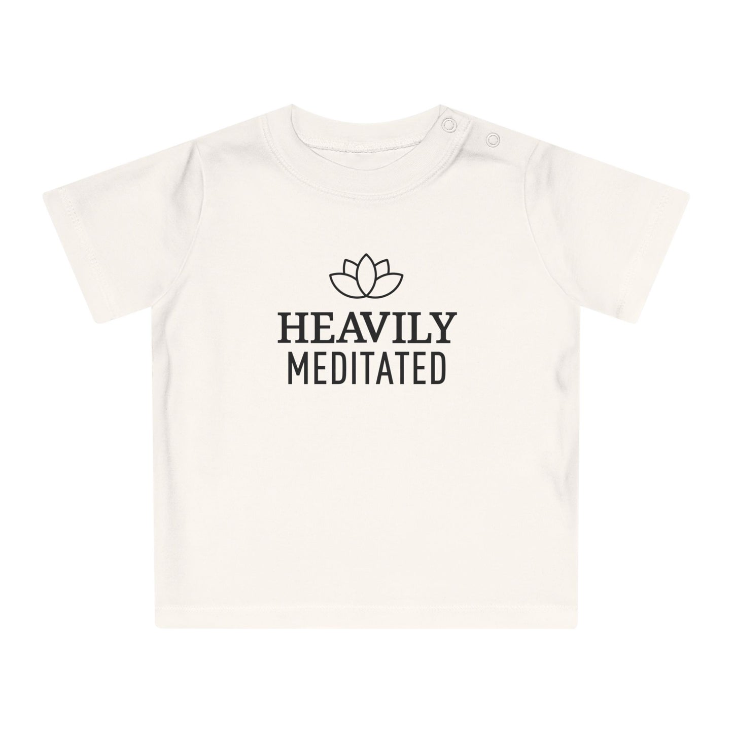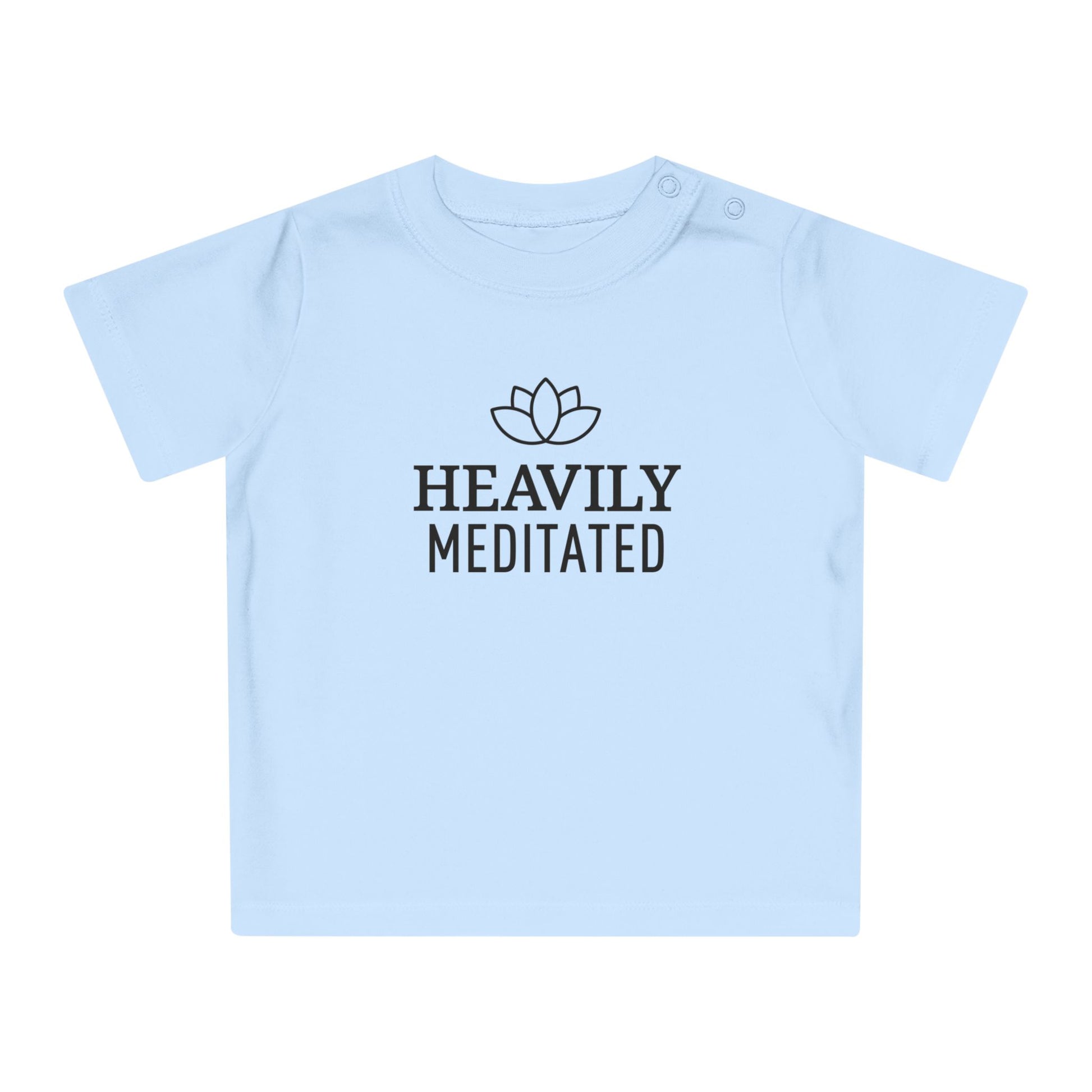 HEAVILY MEDITATED & Lotusblume / Lotusblüte Blumenmotiv & Schriftzug • YOGA-Spruch MEDITATION Baby T-Shirt • Mädchen Jungen • BIO Baumwolle 🌿