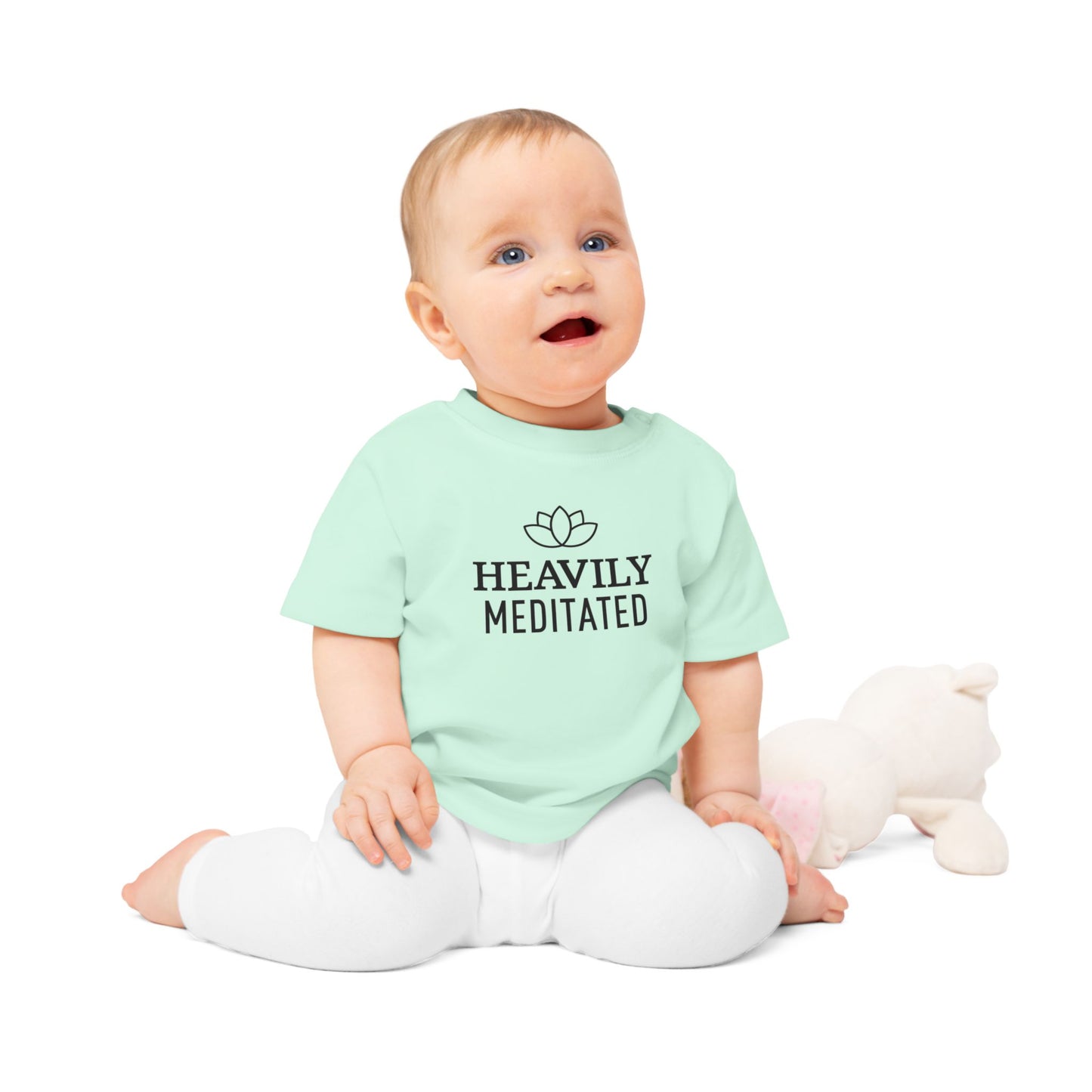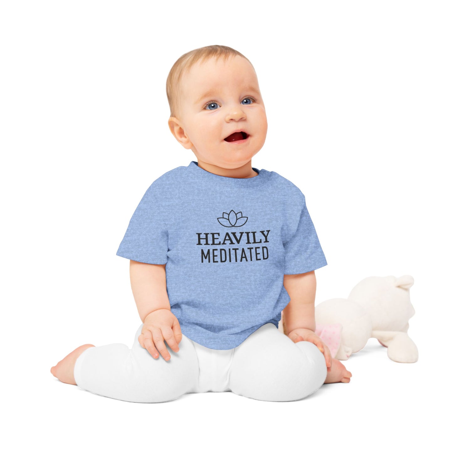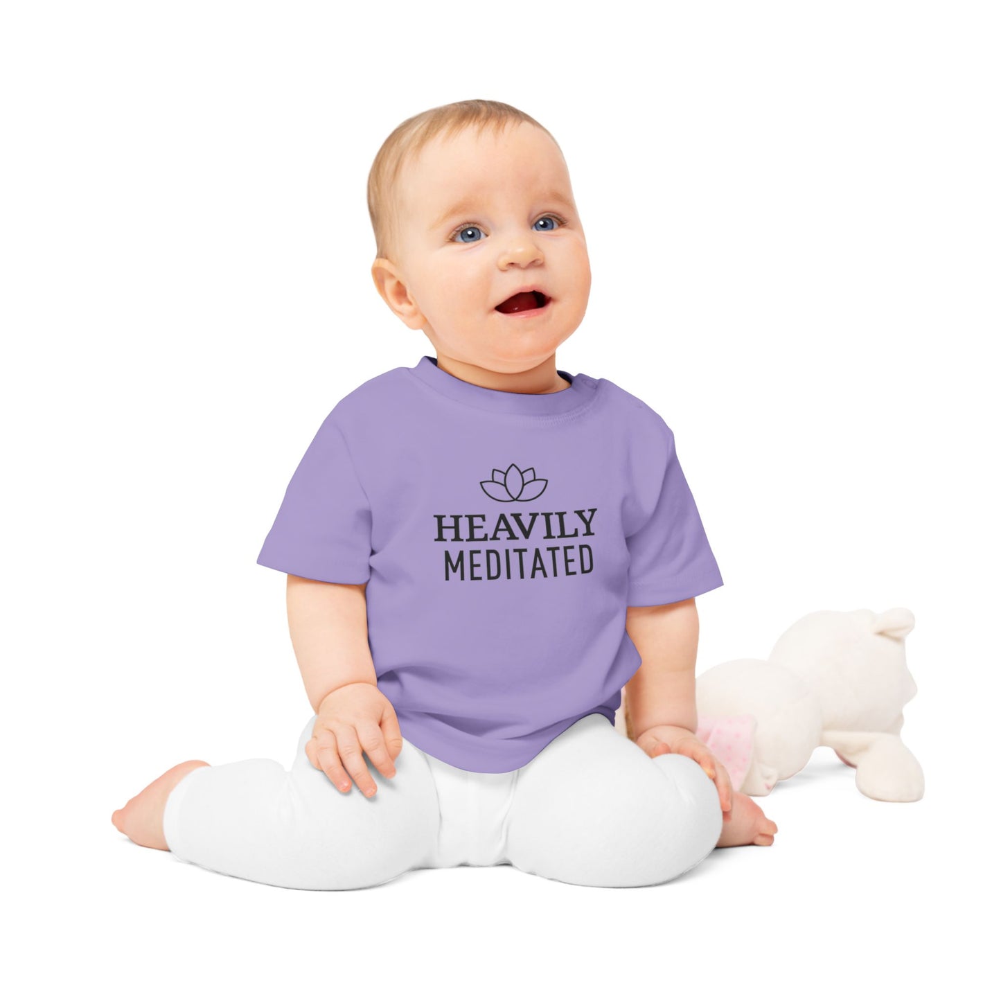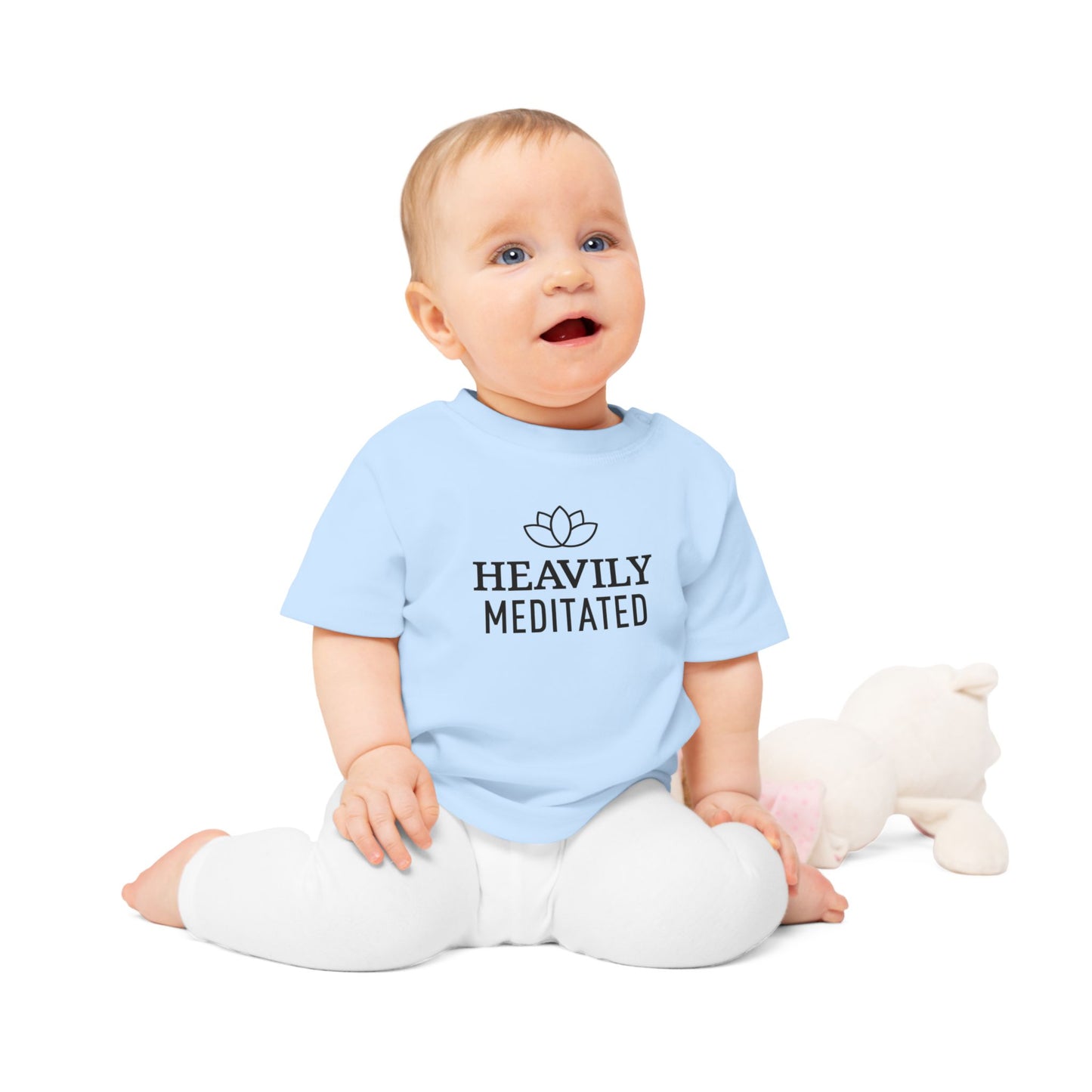 HEAVILY MEDITATED & Lotusblume / Lotusblüte Blumenmotiv & Schriftzug • YOGA-Spruch MEDITATION Baby T-Shirt • Mädchen Jungen • BIO Baumwolle 🌿