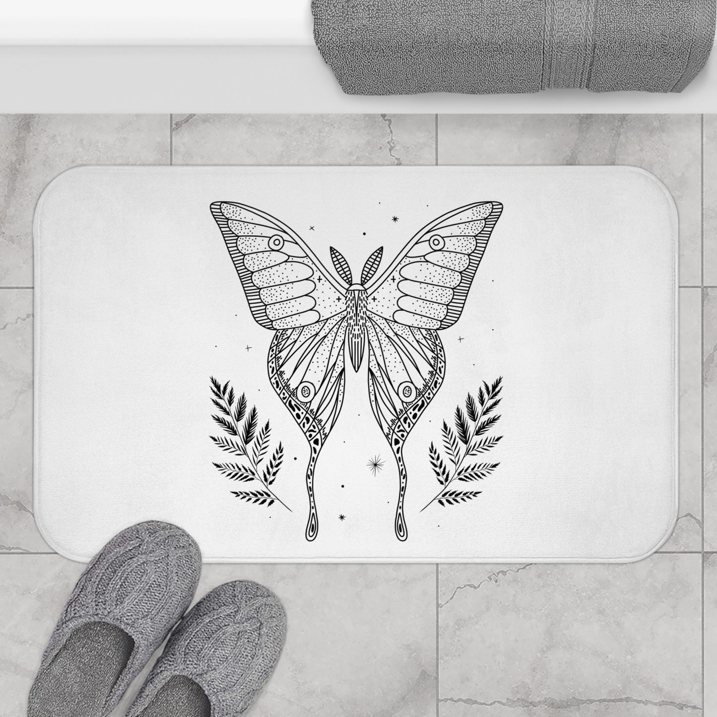 SCHMETTERLING ÄSTHETISCH • Badvorleger Weiss / Fussmatte / Badteppich EXTRA Weich • 43 x 61 cm & 53 x 86 cm
