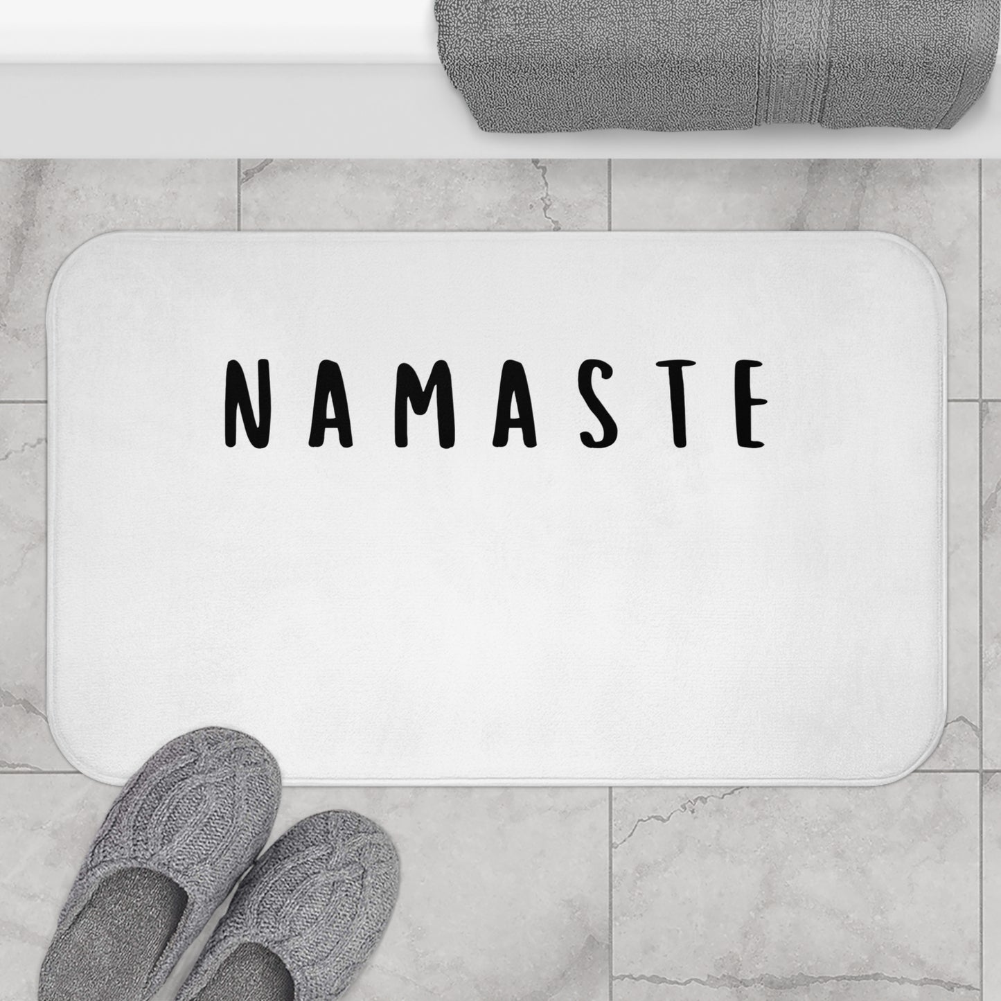 NAMASTE YOGA SPRUCH BEGRÜßUNG • Badvorleger Weiss / Fussmatte / Badteppich EXTRA Weich • 43 x 61 cm & 53 x 86 cm