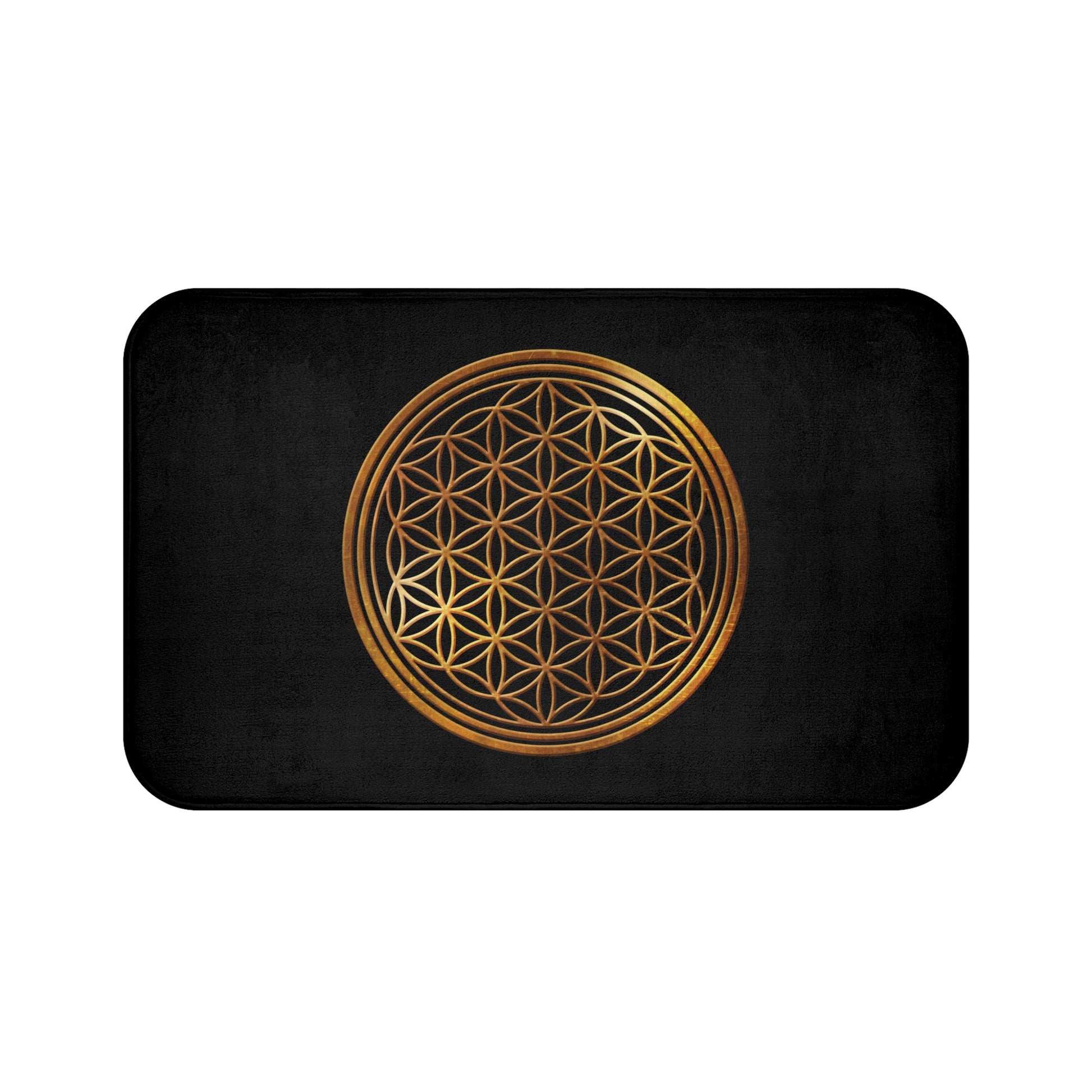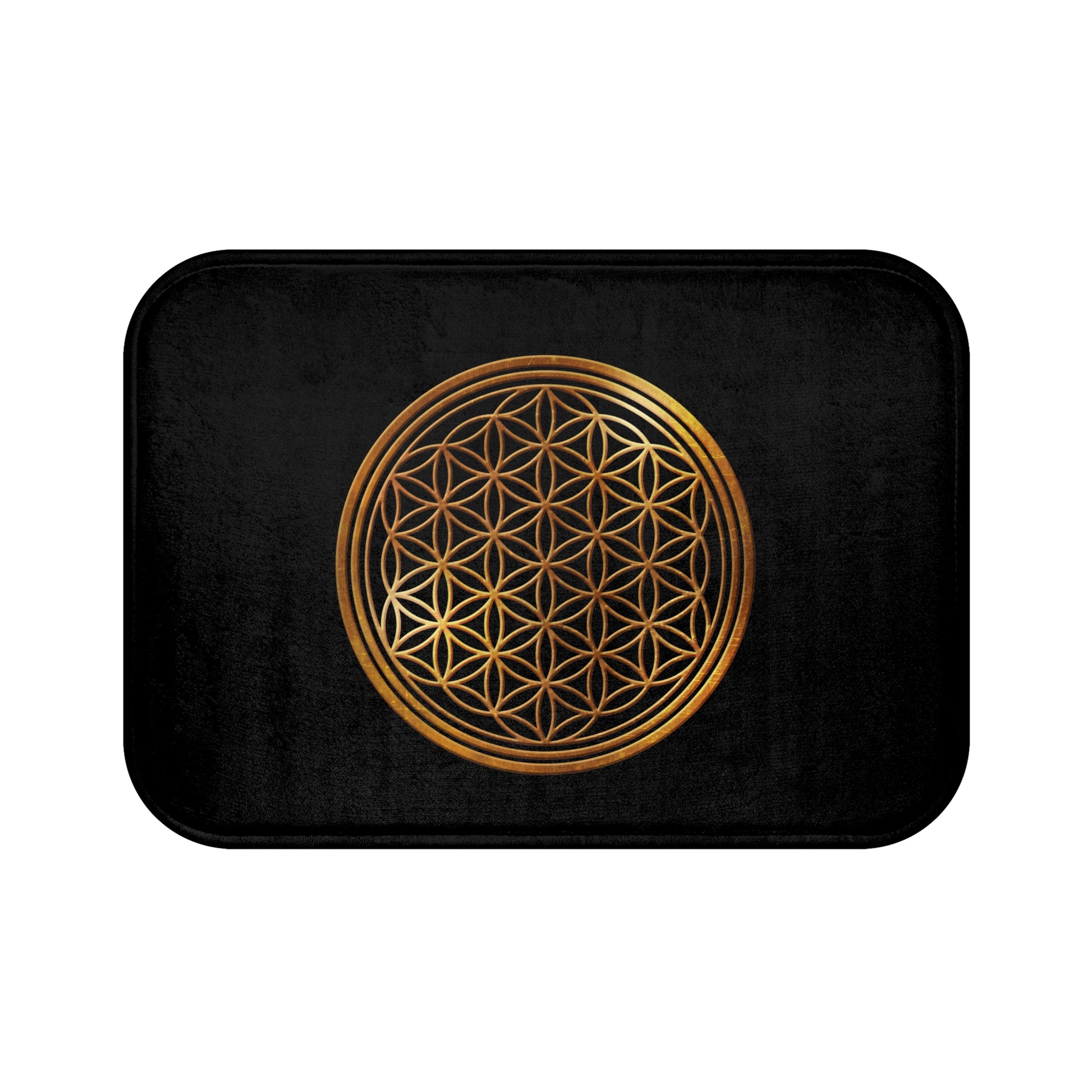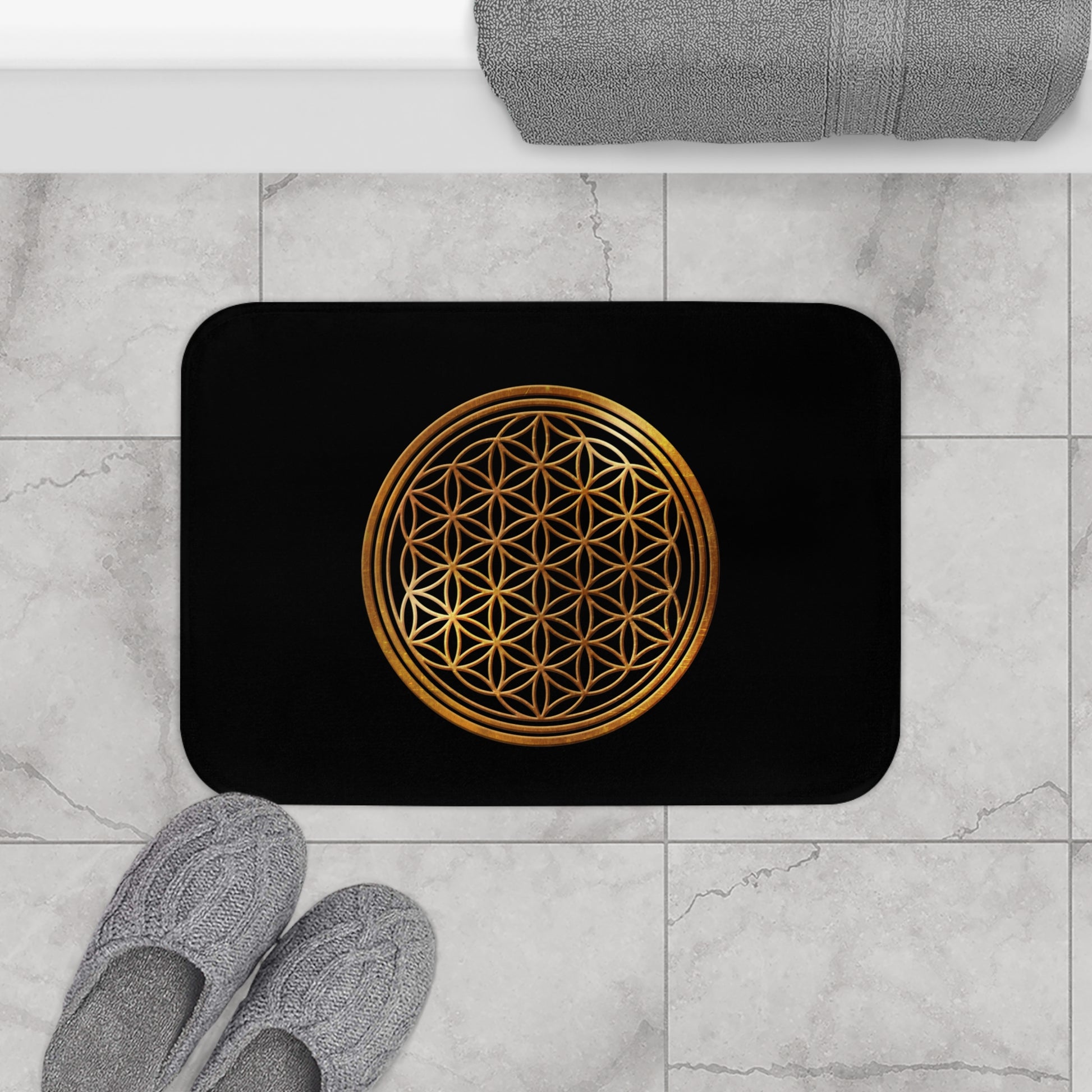 BLUME DES LEBENS BRONZE • Badvorleger Schwarz / Fussmatte / Badteppich EXTRA Weich • 53 x 86 cm