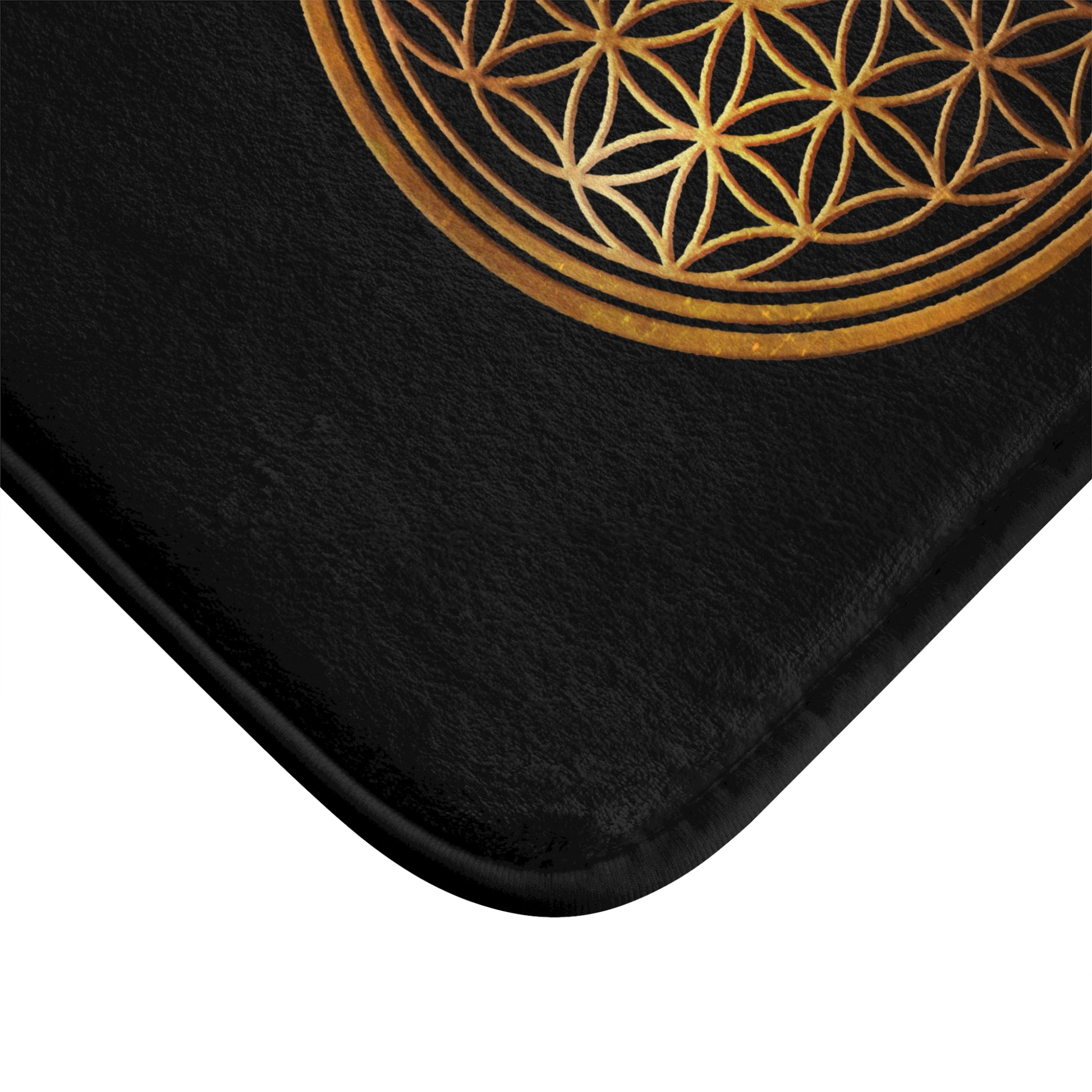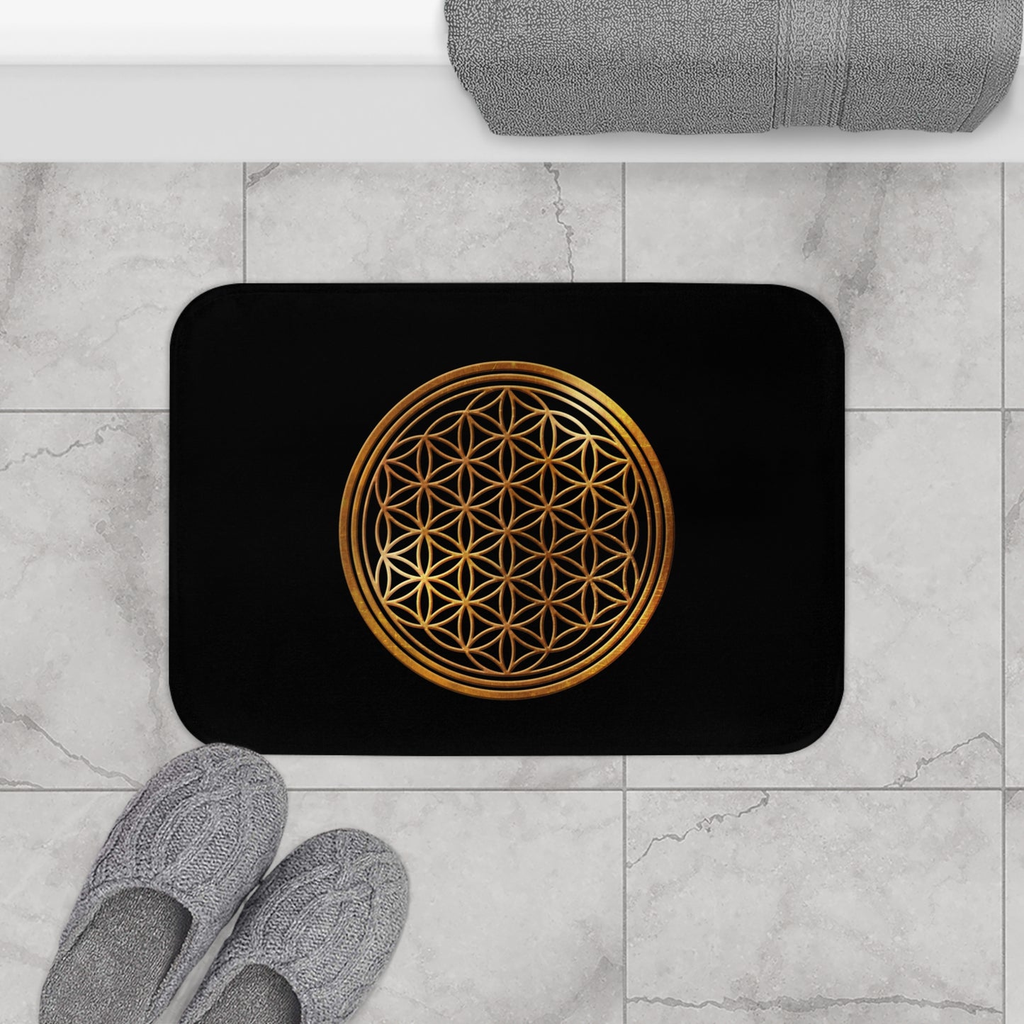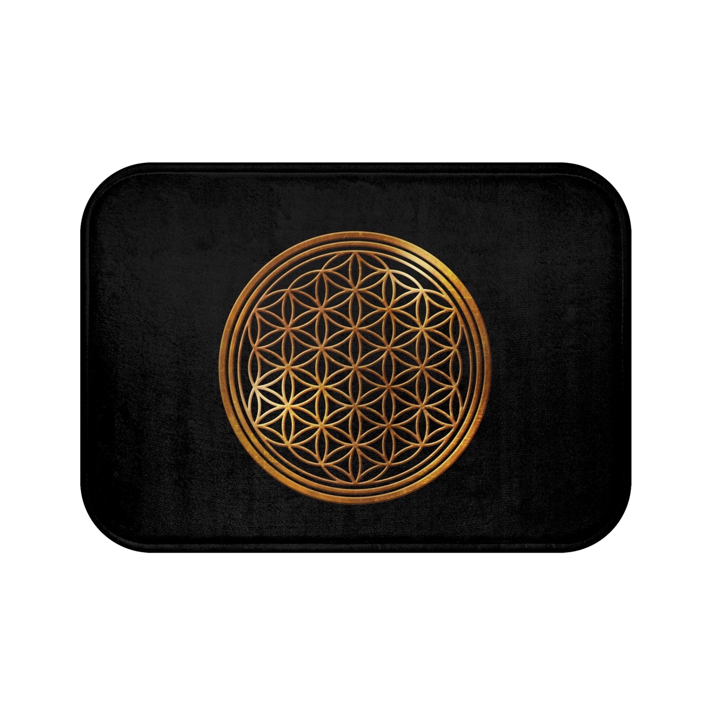 BLUME DES LEBENS BRONZE • Badvorleger Schwarz / Fussmatte / Badteppich EXTRA Weich • 53 x 86 cm