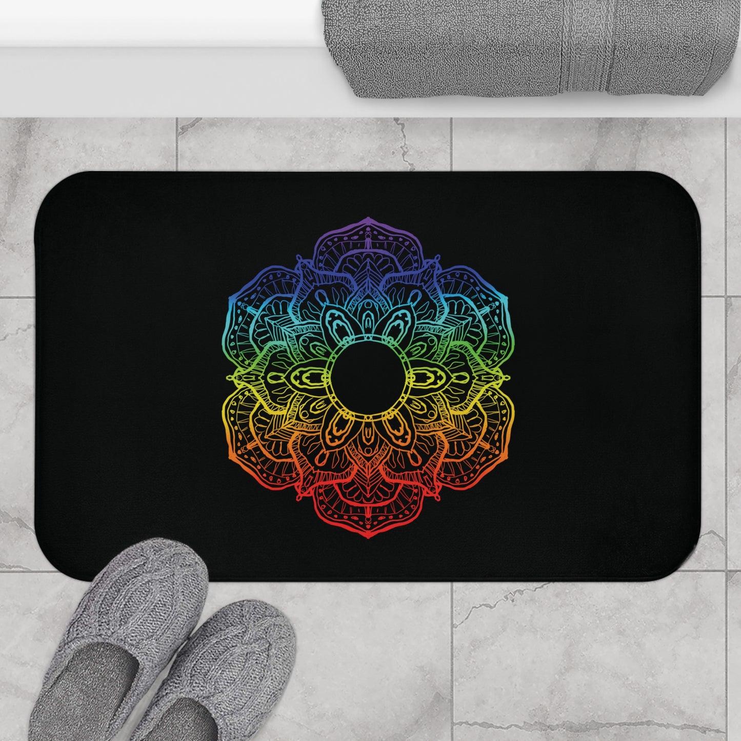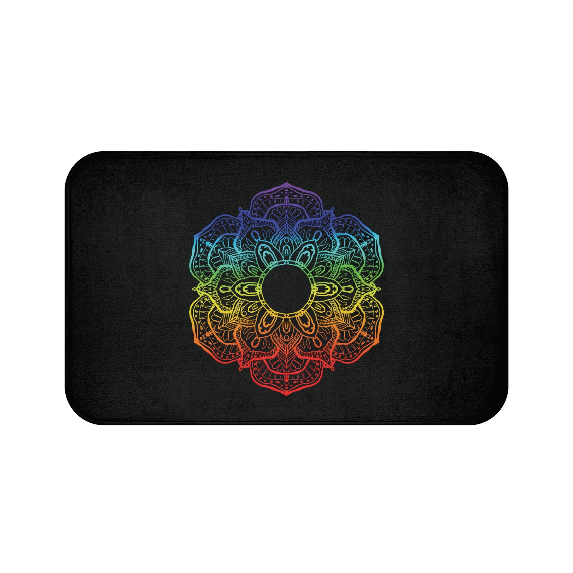 MANDALA BLUME BUNT REGENBOGEN - SPIRITUELLES MOTIV • Badvorleger Weiss / Fussmatte / Badteppich EXTRA Weich • 43 x 61 cm & 53 x 86 cm