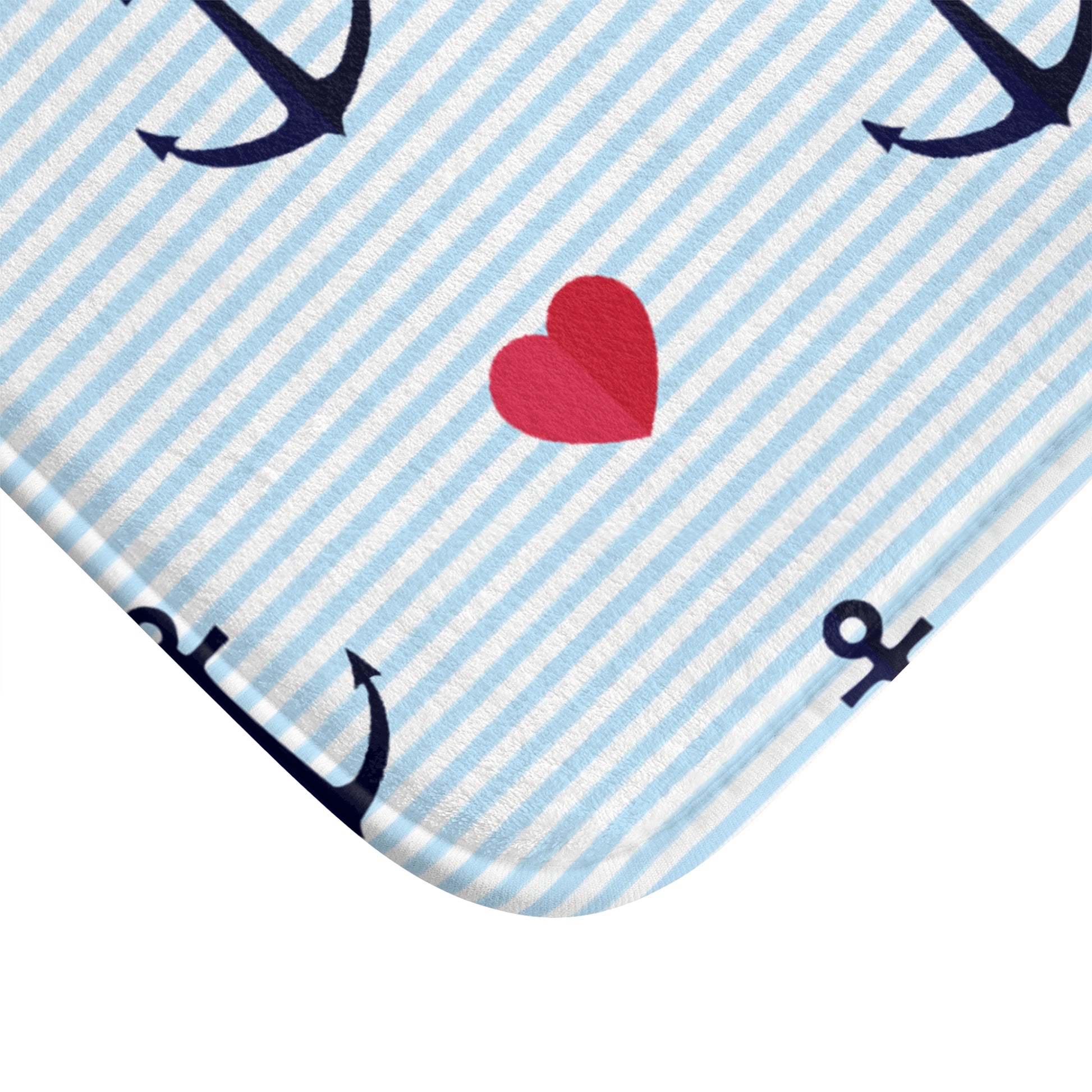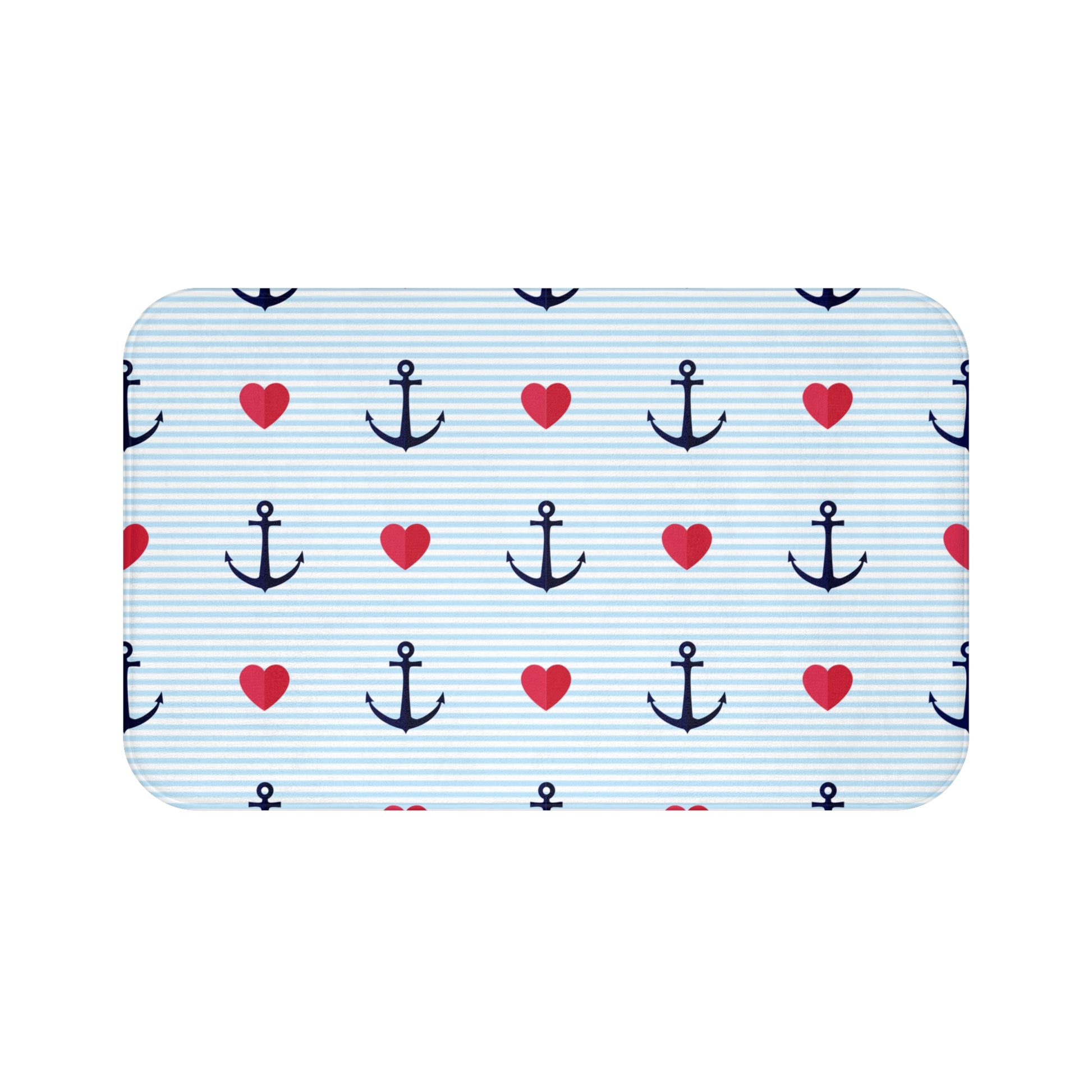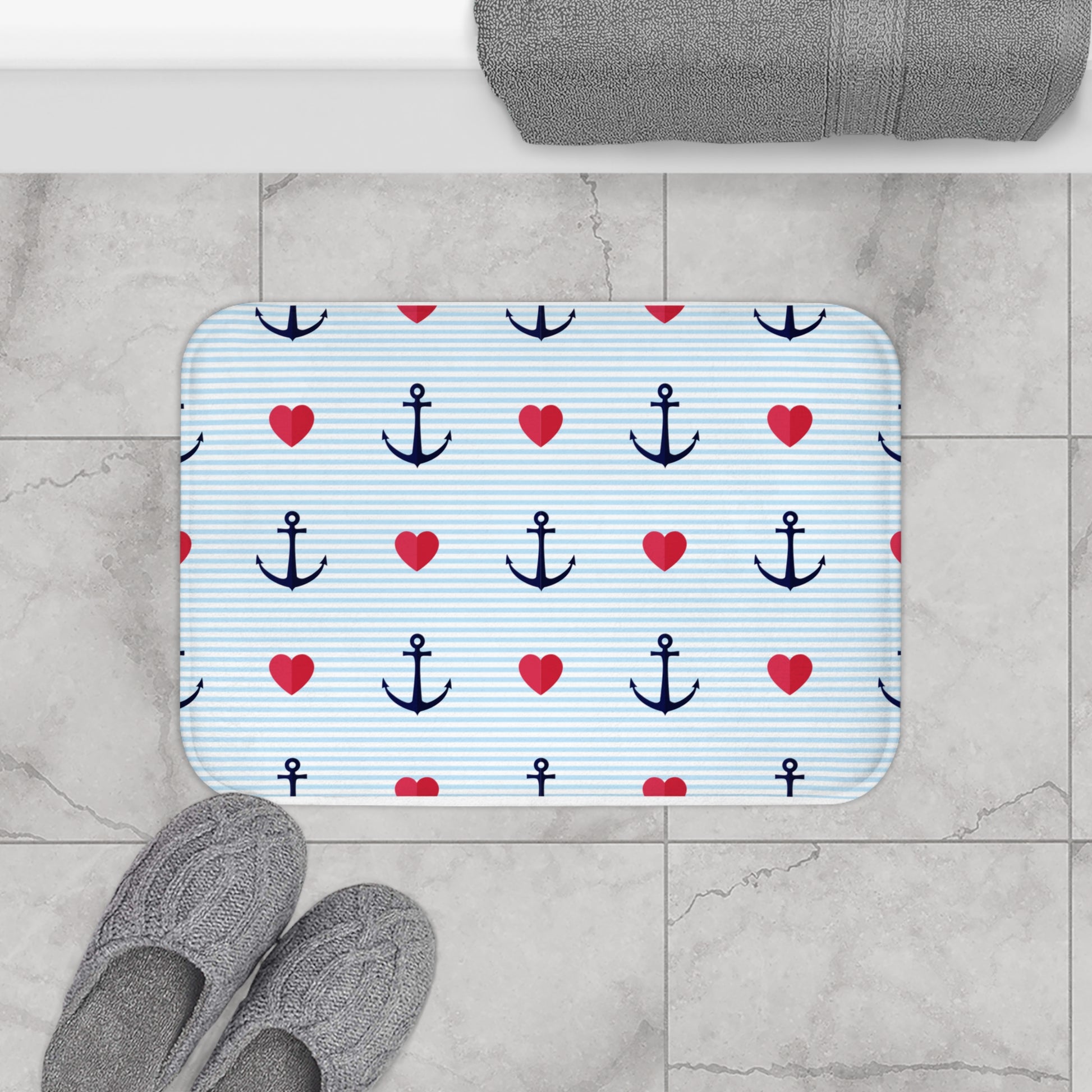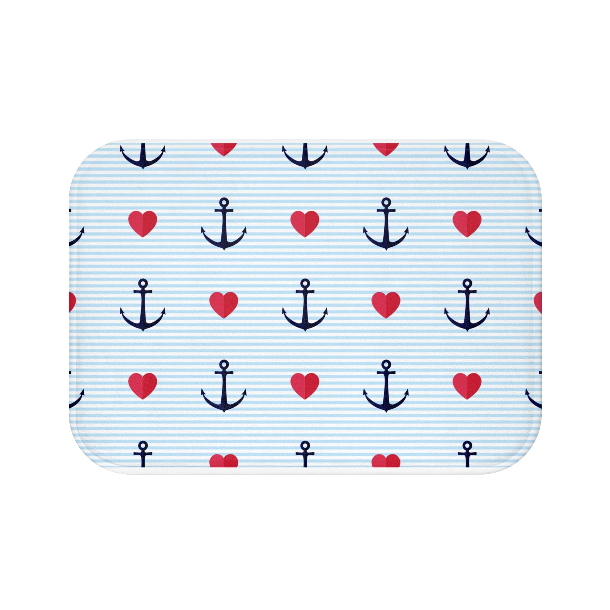 ANKER HERZEN MUSTER KAPITÄN BOOT • Badvorleger / Fussmatte / Badteppich EXTRA Weich • 43 x 61 cm & 53 x 86 cm