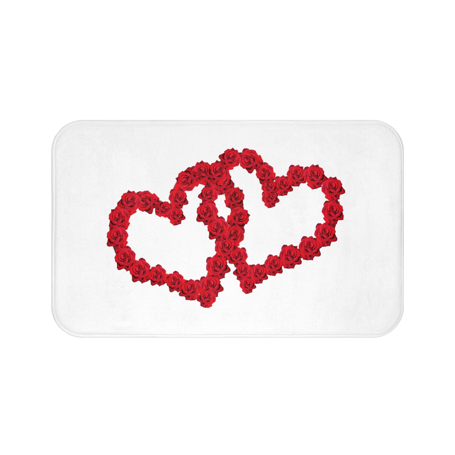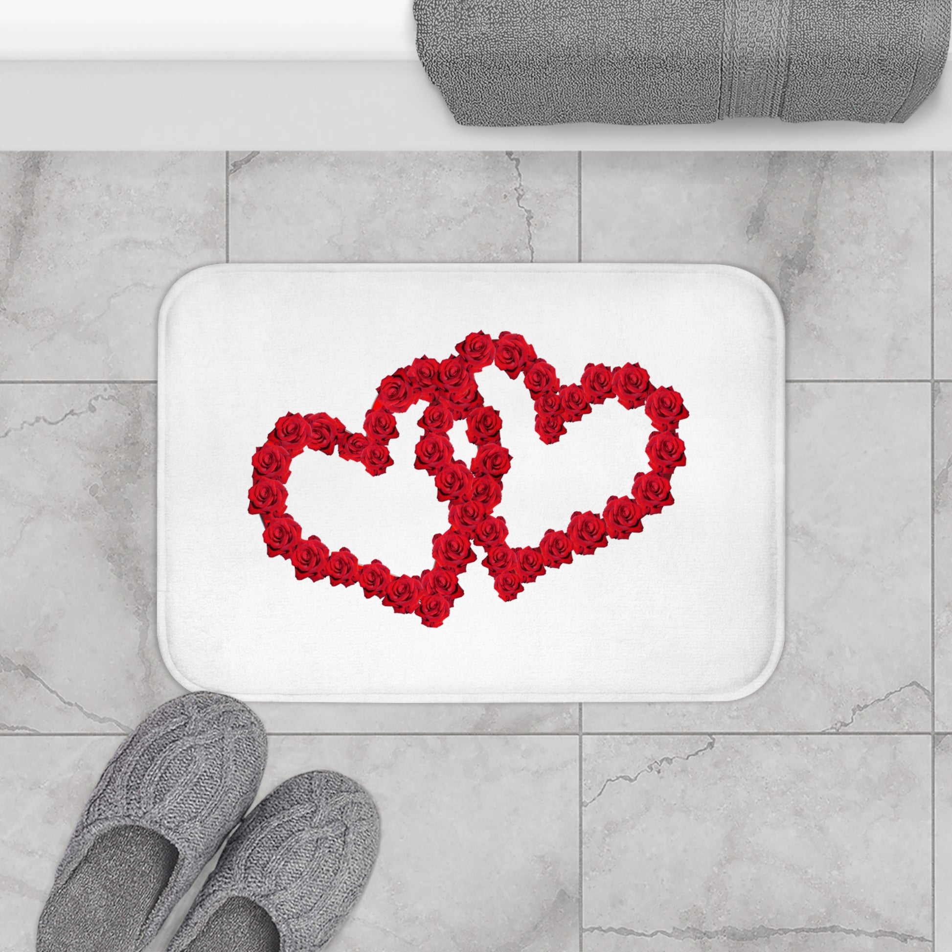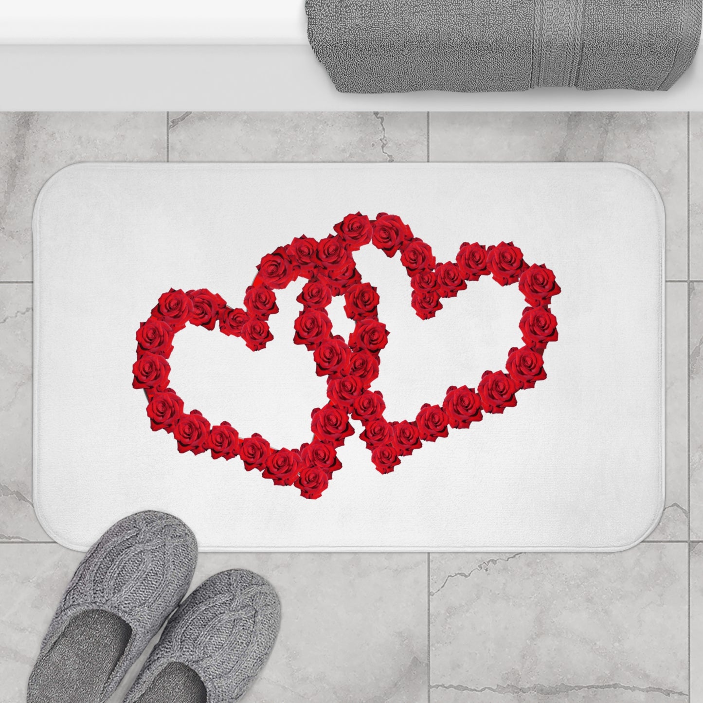 HERZ AUS ROTEN ROSEN BLÜTEN • Liebesbeweis Geschenk, LOVE Liebesbotschaft ❤️ • Badvorleger / Fussmatte / Badteppich EXTRA Weich • 43 x 61 cm & 53 x 86 cm