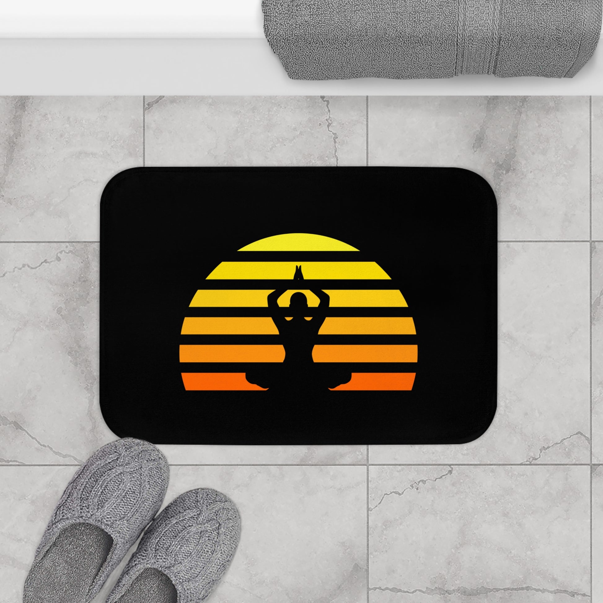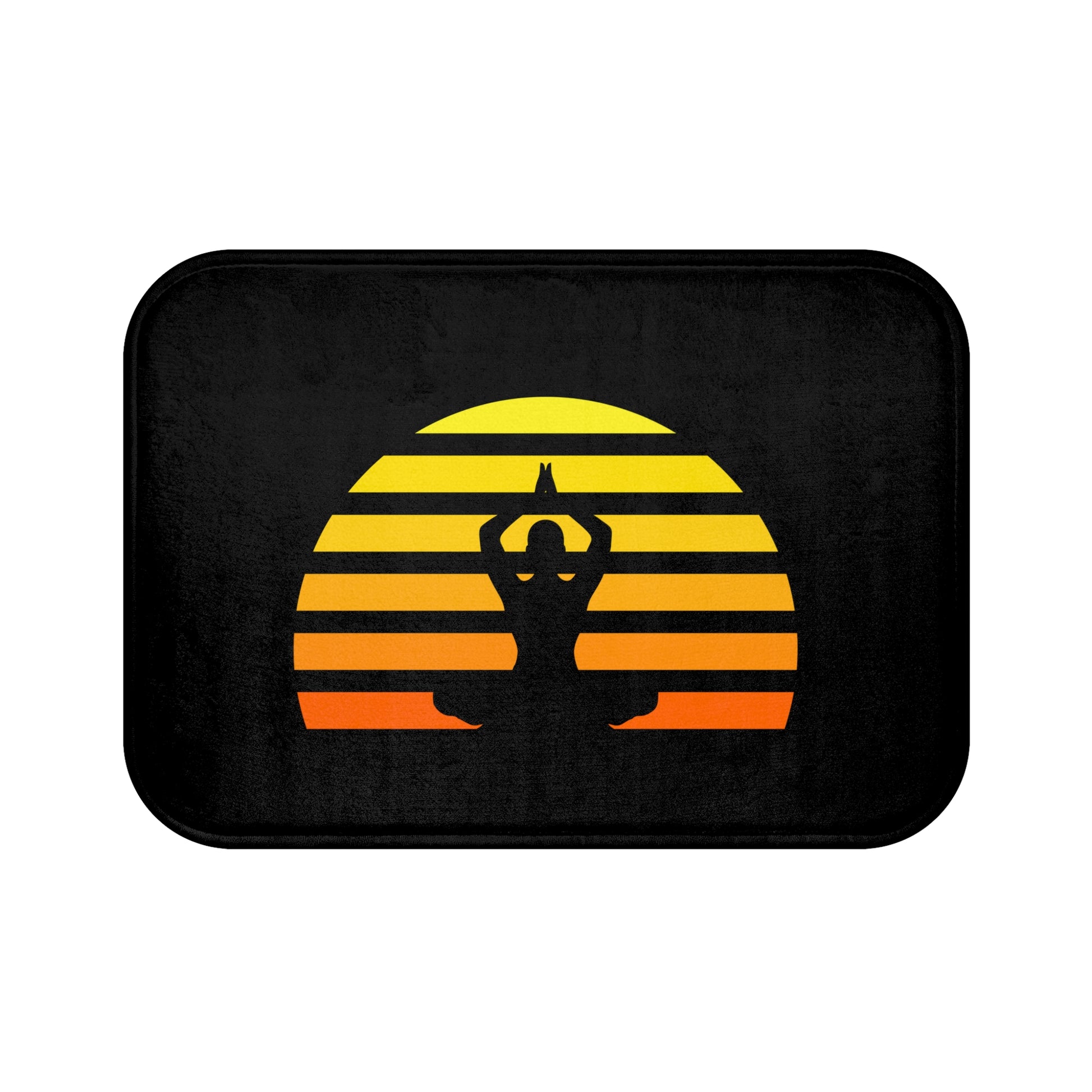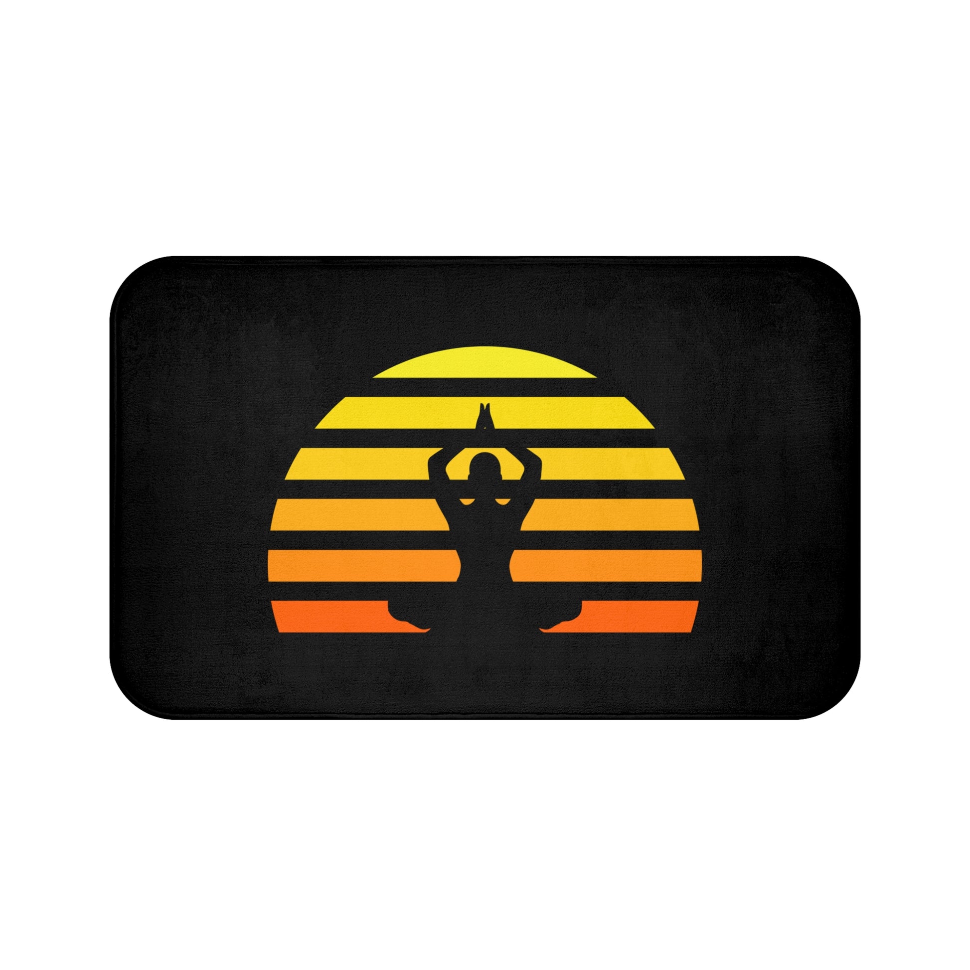 YOGA POSE MEDITATION SONNENAUFGANG RETRO • Badvorleger Weiss / Fussmatte / Badteppich EXTRA Weich • 43 x 61 cm & 53 x 86 cm