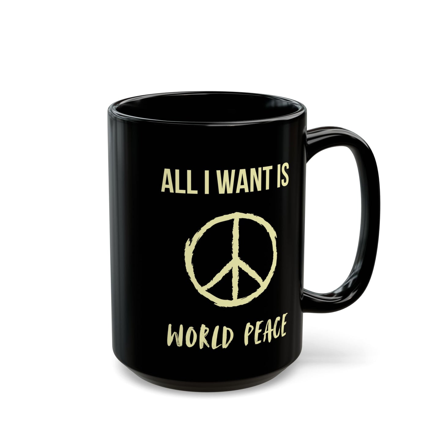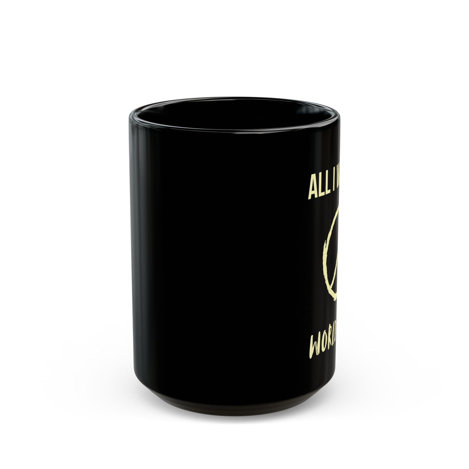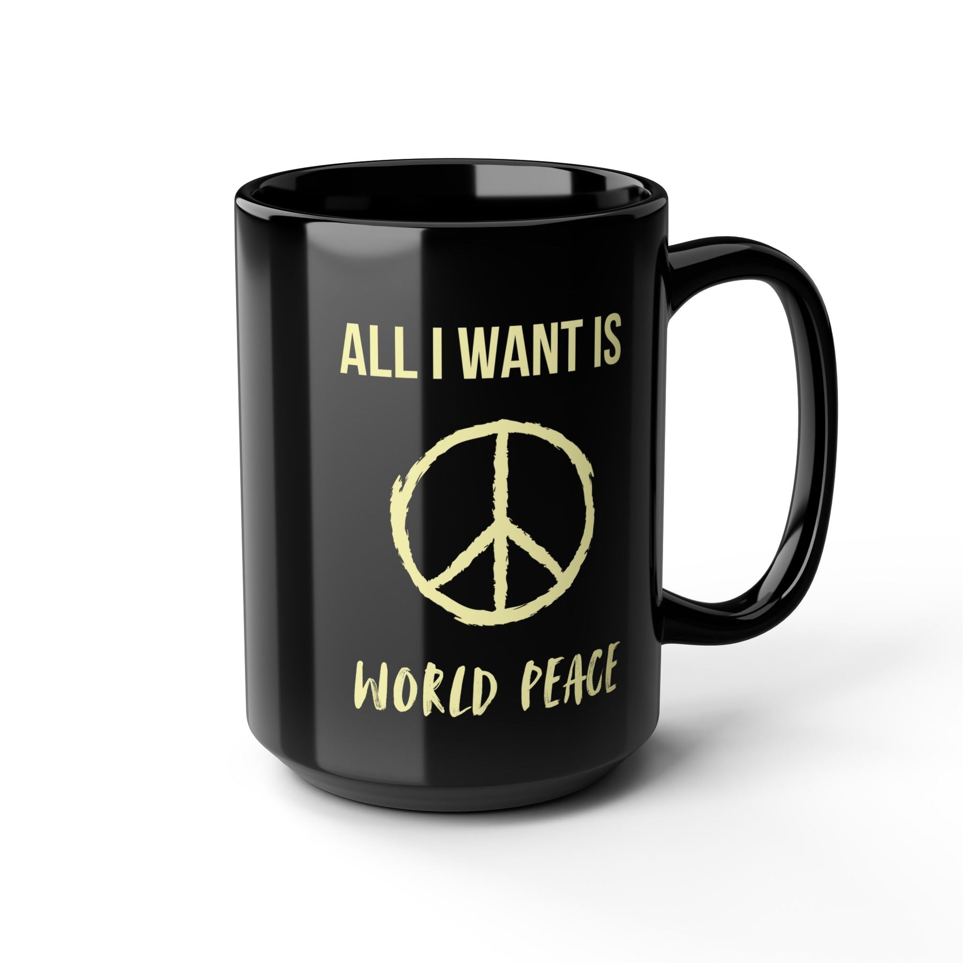 ALL YOU NEED IS YOGA • PEACE ZEICHEN SYMBOL Friedensbotschaft Friedensnachricht • 440ml XXL Kaffeebecher Schwarz