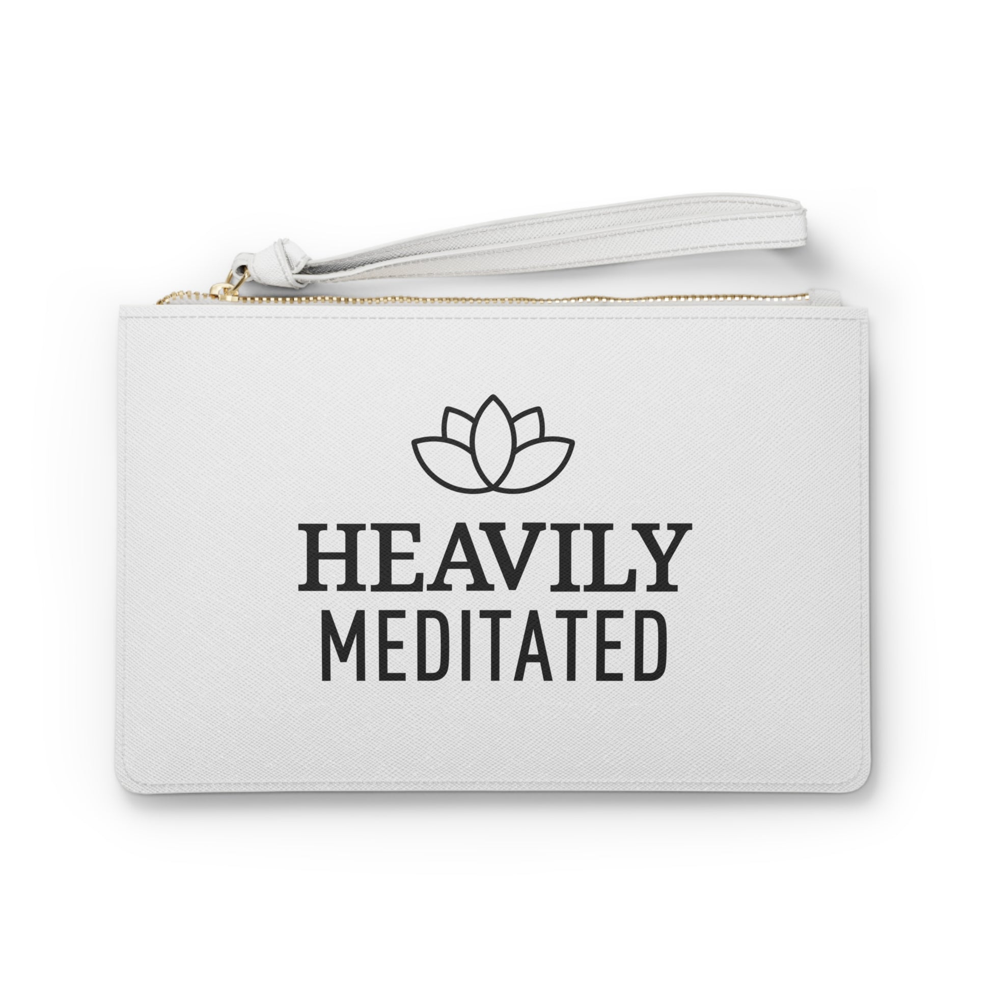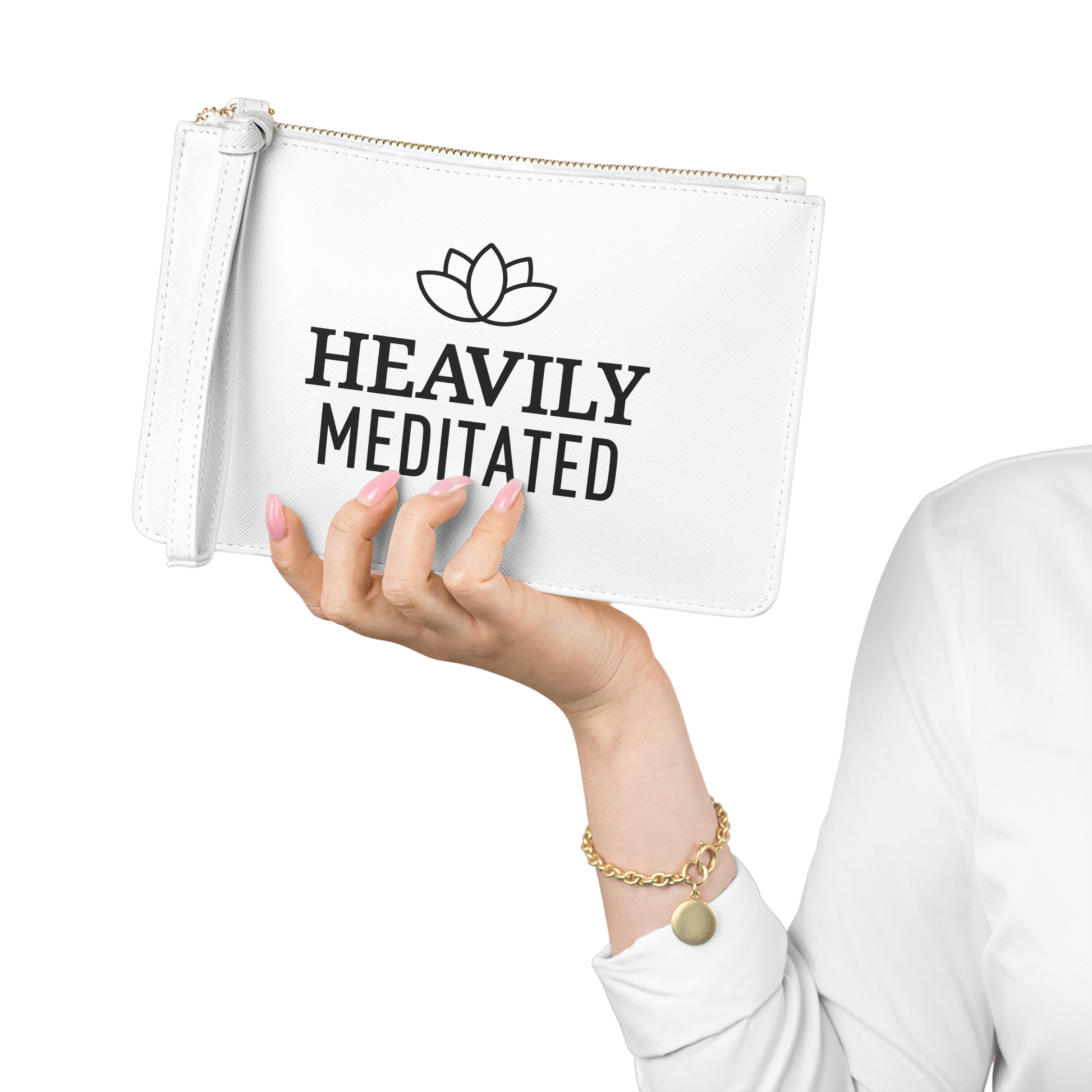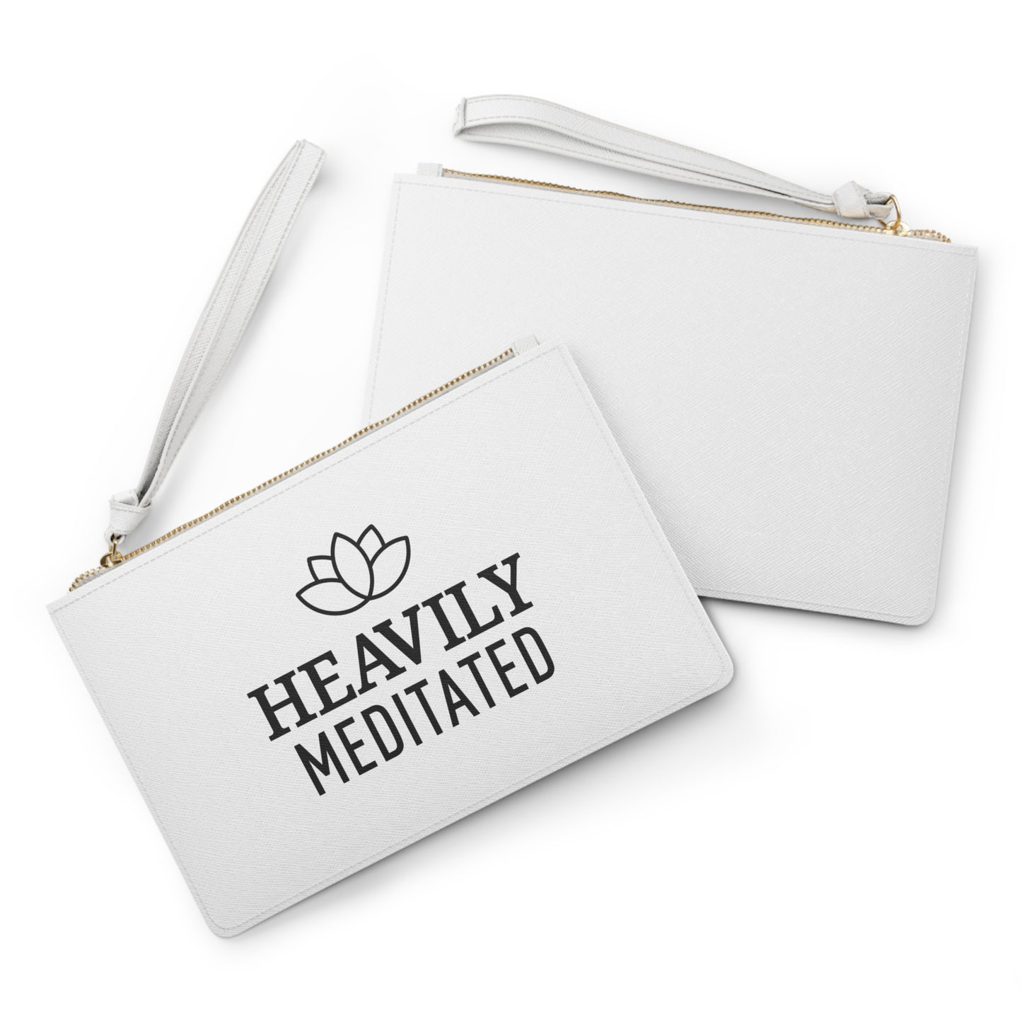 HEAVILY MEDITATED • Lotusblume Yoga Spruch Clutch Bag • Kosmetiktäschchen mit Henkel • Handtaschen Organizer • Damen Herren