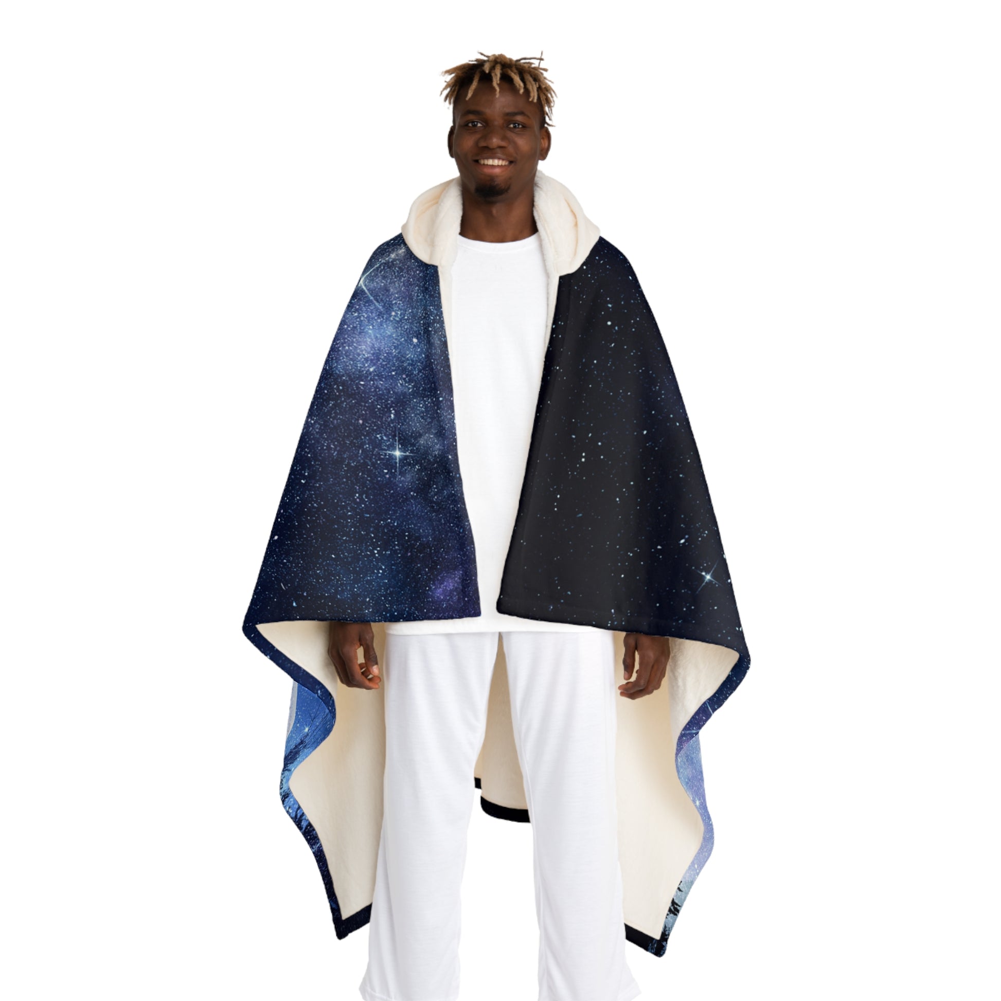 MOND GALAXY WALD BÄUME • Kapuzen Kuscheldecke Dunkelblau • Wohndecke Sherpa 130cm x 180cm