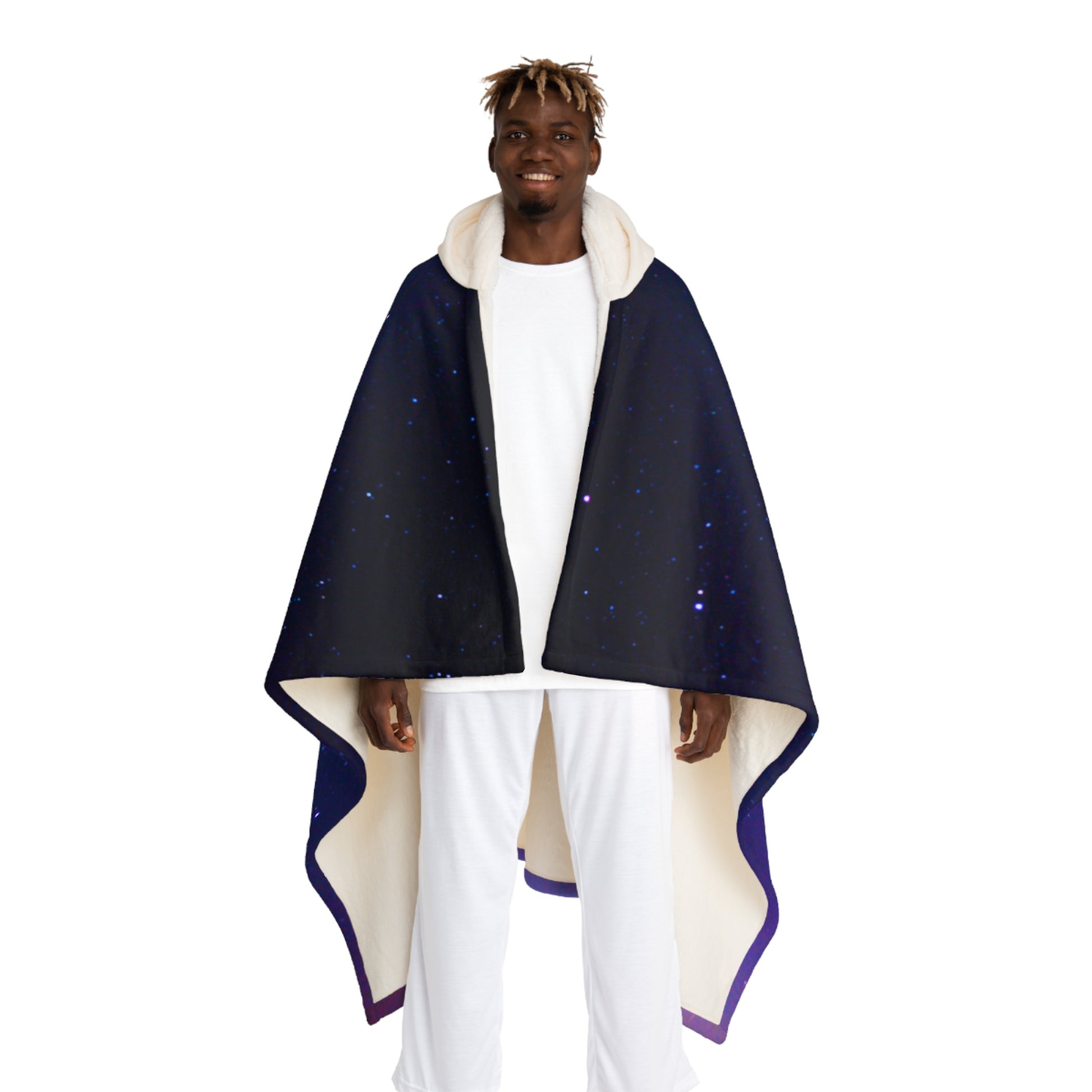 MOND HIMMEL • Kapuzen Kuscheldecke Schwarz • Wohndecke Sherpa 130cm x 180cm