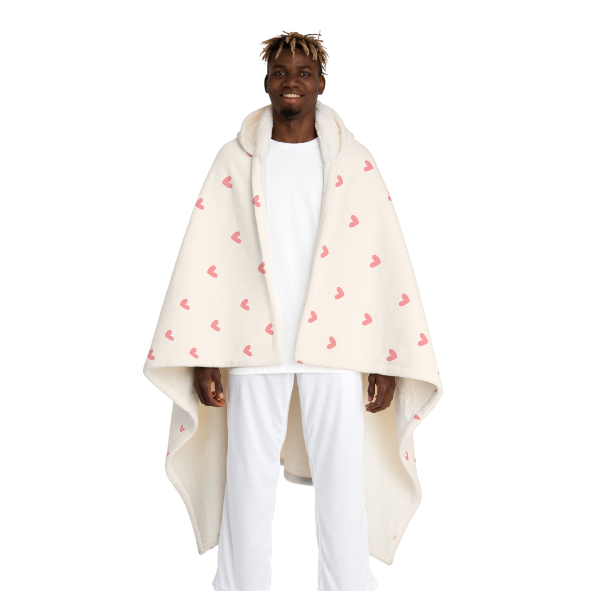 HEREN ROSA HERZCHEN ROT MUSTER LOVE • Kapuzen Kuscheldecke • Wohndecke Sherpa 130cm x 180cm