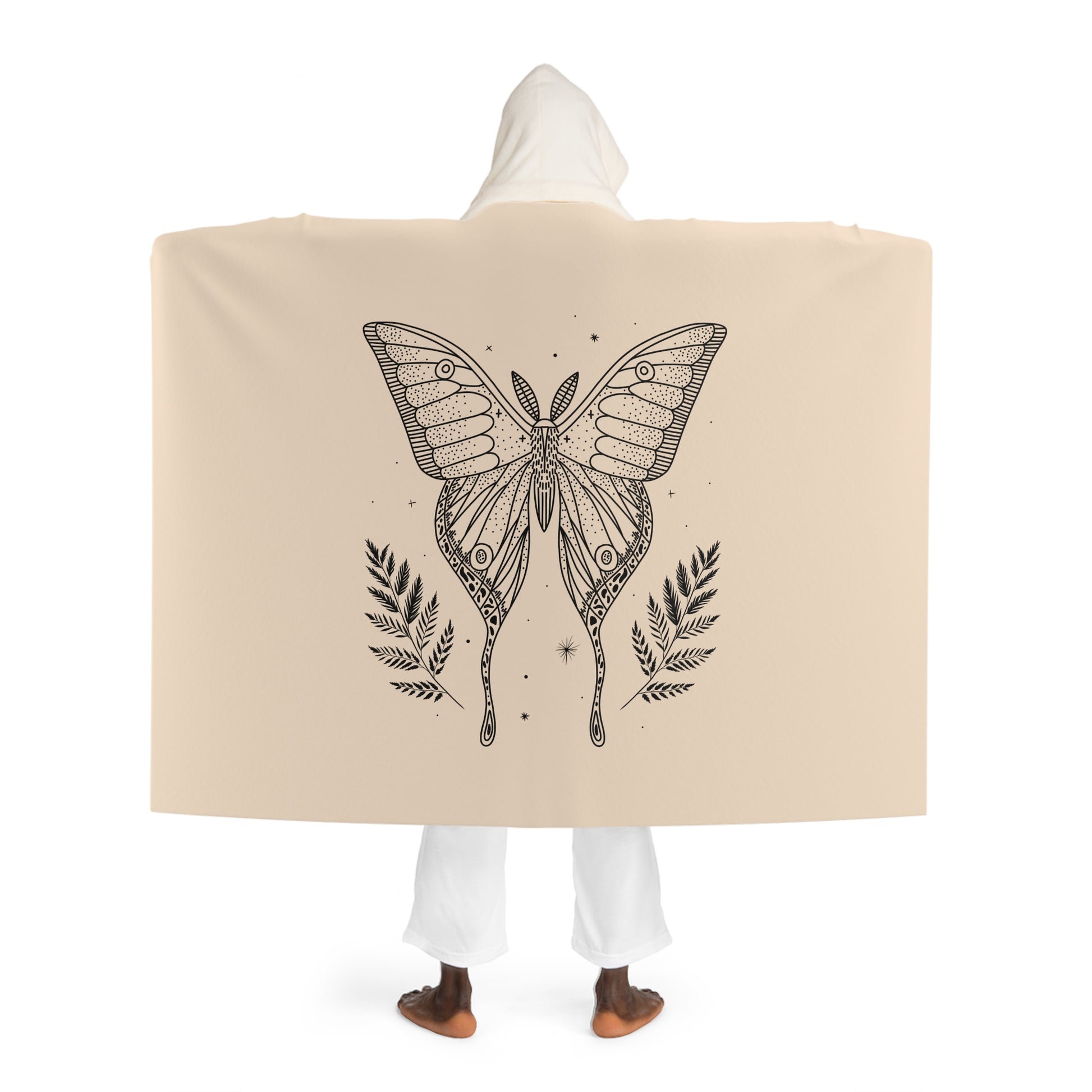 SCHMETTERLING ÄSTHETISCH • Kapuzen Kuscheldecke Beige Creme • Wohndecke Sherpa 130cm x 180cm