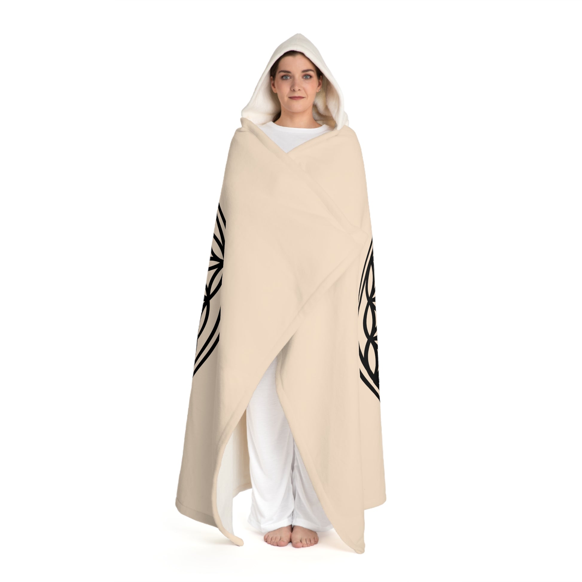 BLUME DES LEBEN SCHWARZ • Kapuzen Kuscheldecke Beige Creme • Wohndecke Sherpa 130cm x 180cm