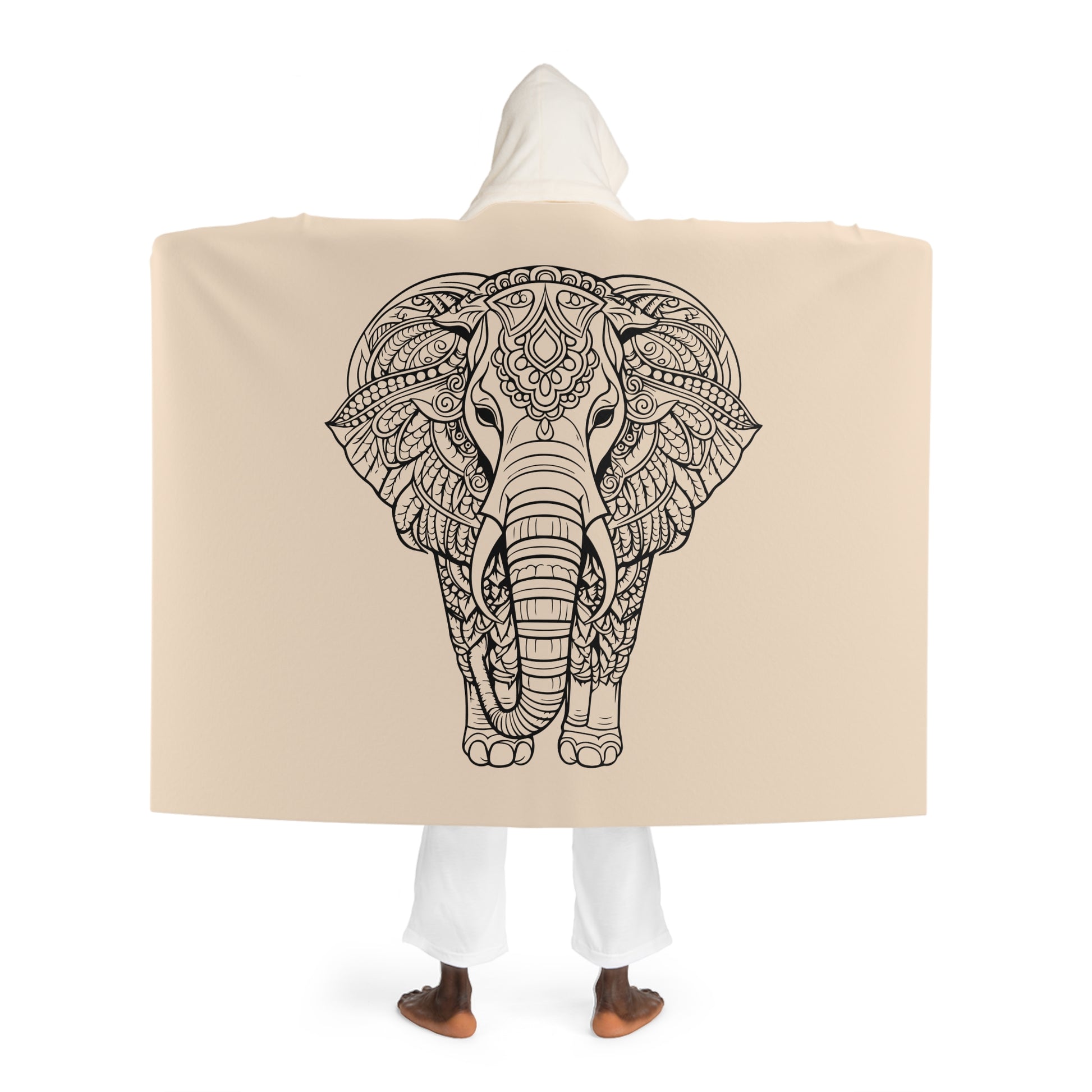 ELEFANT MANDALA MAJESTHÄTISCH • Kapuzen Kuscheldecke Beige Creme • Wohndecke Sherpa 130cm x 180cm