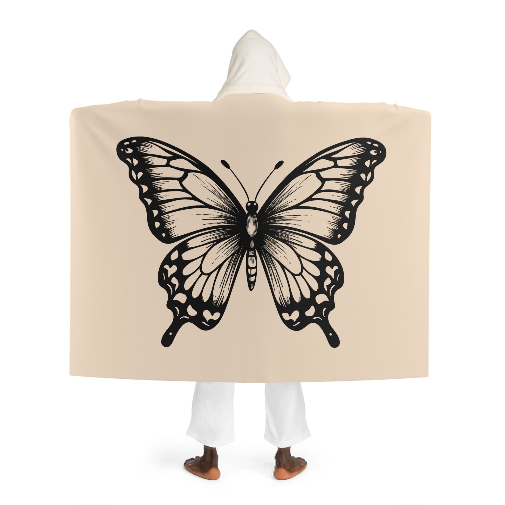SCHMETTERLING BOHO STYLE • Kapuzen Kuscheldecke Beige Creme • Wohndecke Sherpa 130cm x 180cm