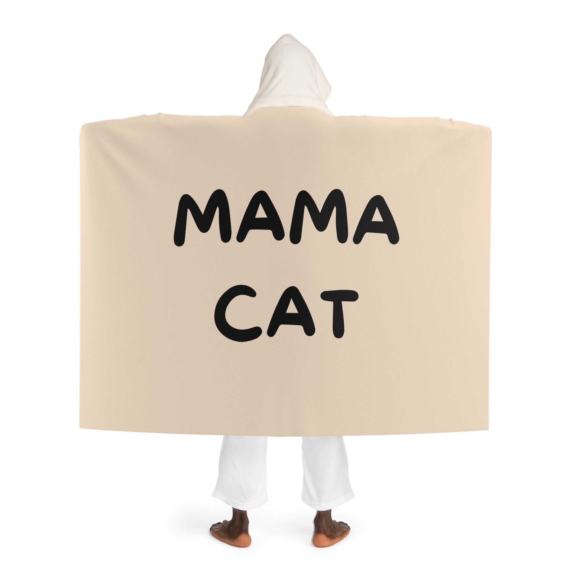 MAMA CAT - KATZENMUTTER DOSENÖFFNER • Kapuzen Kuscheldecke Beige Creme • Wohndecke Sherpa 130cm x 180cm