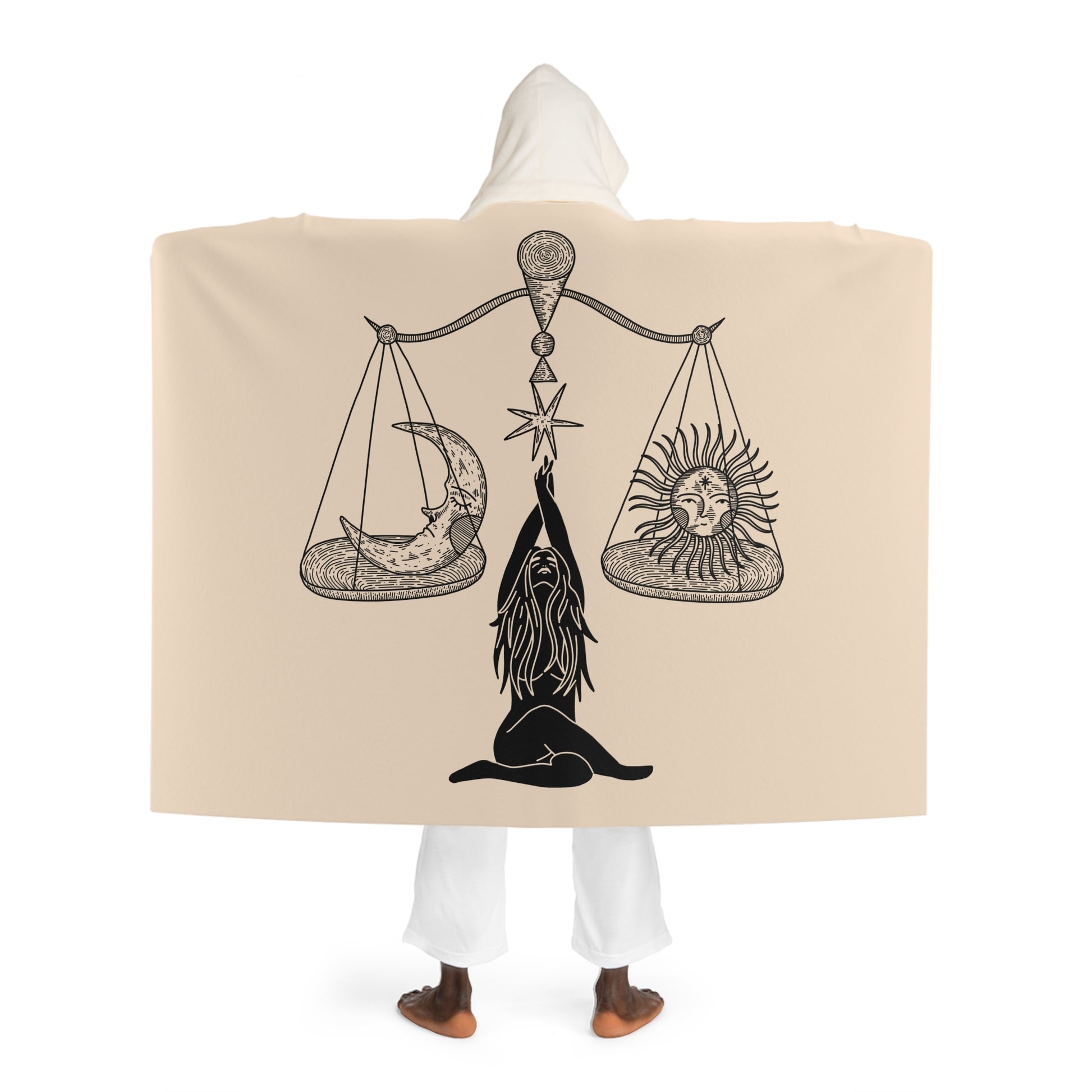 WAAGE STERNZEICHEN SONNE MOND • Kapuzen Kuscheldecke Beige Creme • Wohndecke Sherpa 130cm x 180cm