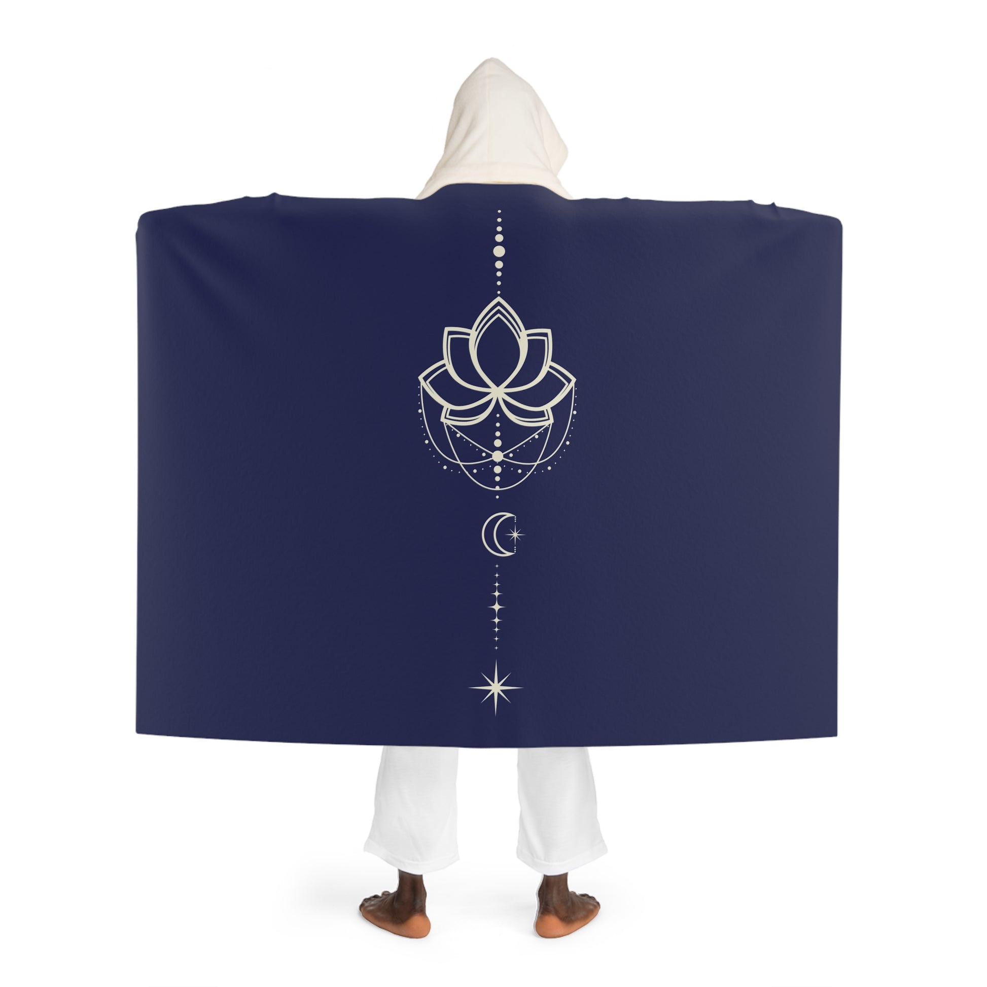 LOTUS MOND ORNAMENT SPIRITUELL • Kapuzen Kuscheldecke Beige Creme • Wohndecke Sherpa 130cm x 180cm