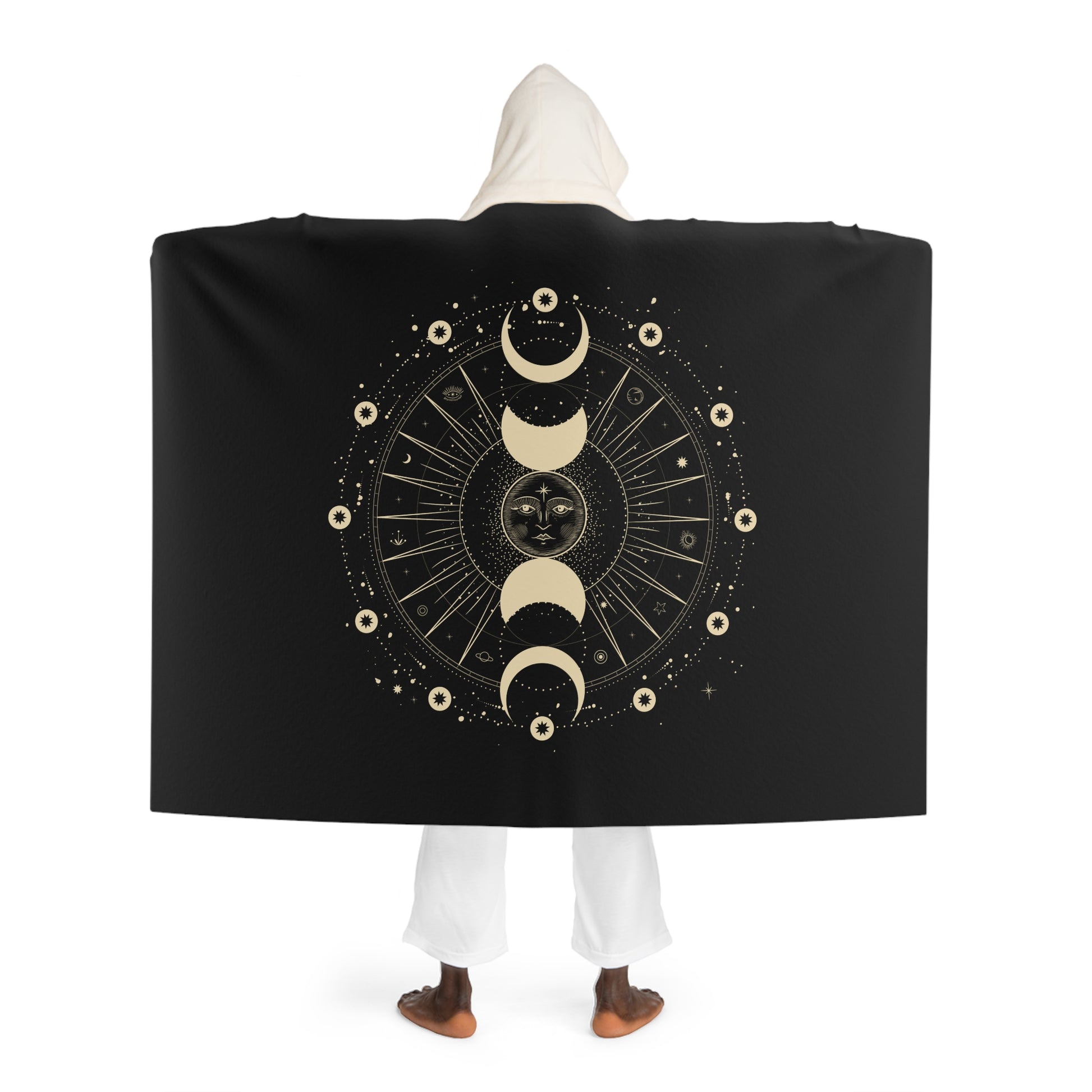 MONDPHASEN IN SONNE • Kapuzen Kuscheldecke Beige Creme • Wohndecke Sherpa 130cm x 180cm