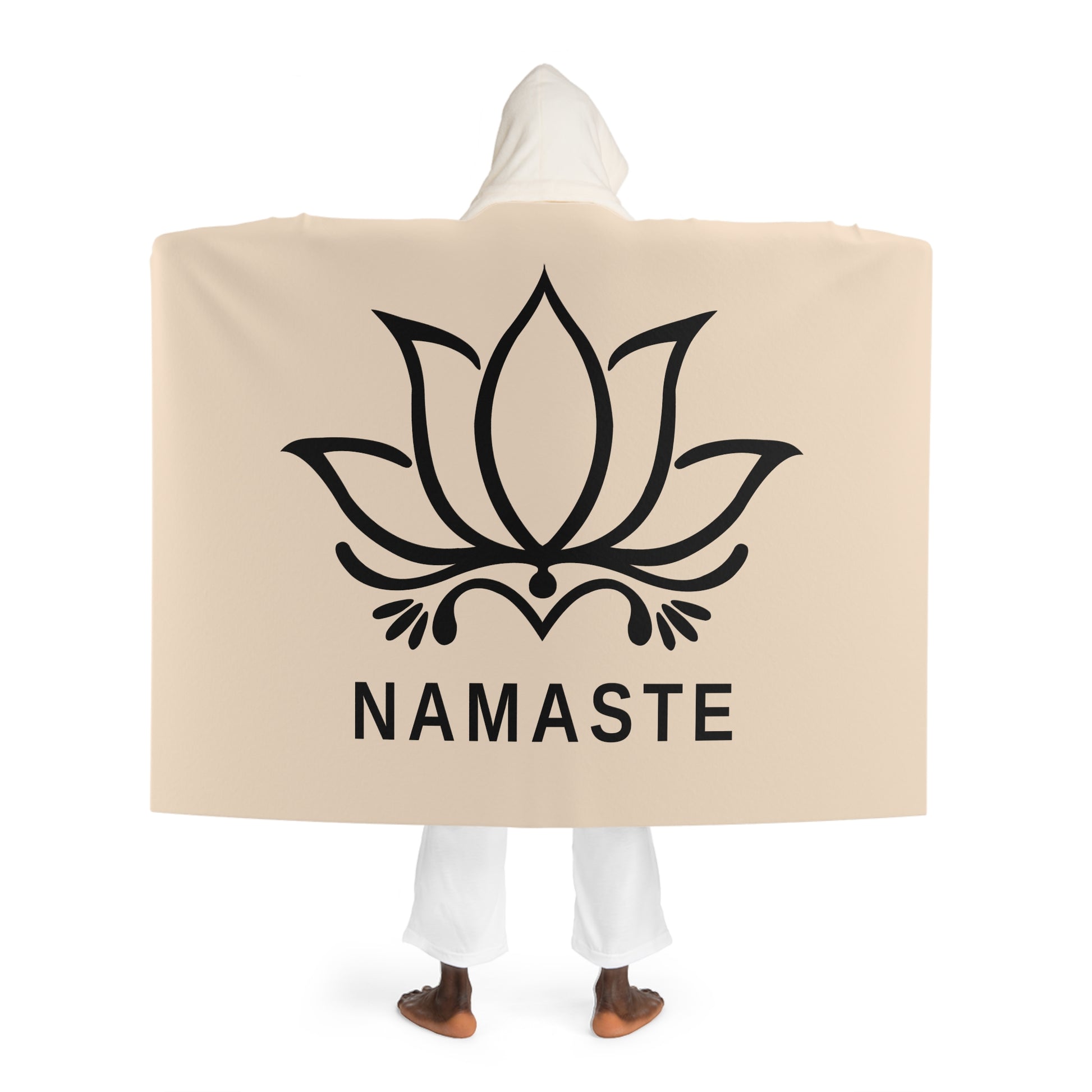 NAMASTE YOGA SPRUCH - Lotusblüte • Kapuzen Kuscheldecke Beige Creme • Wohndecke Sherpa 130cm x 180cm
