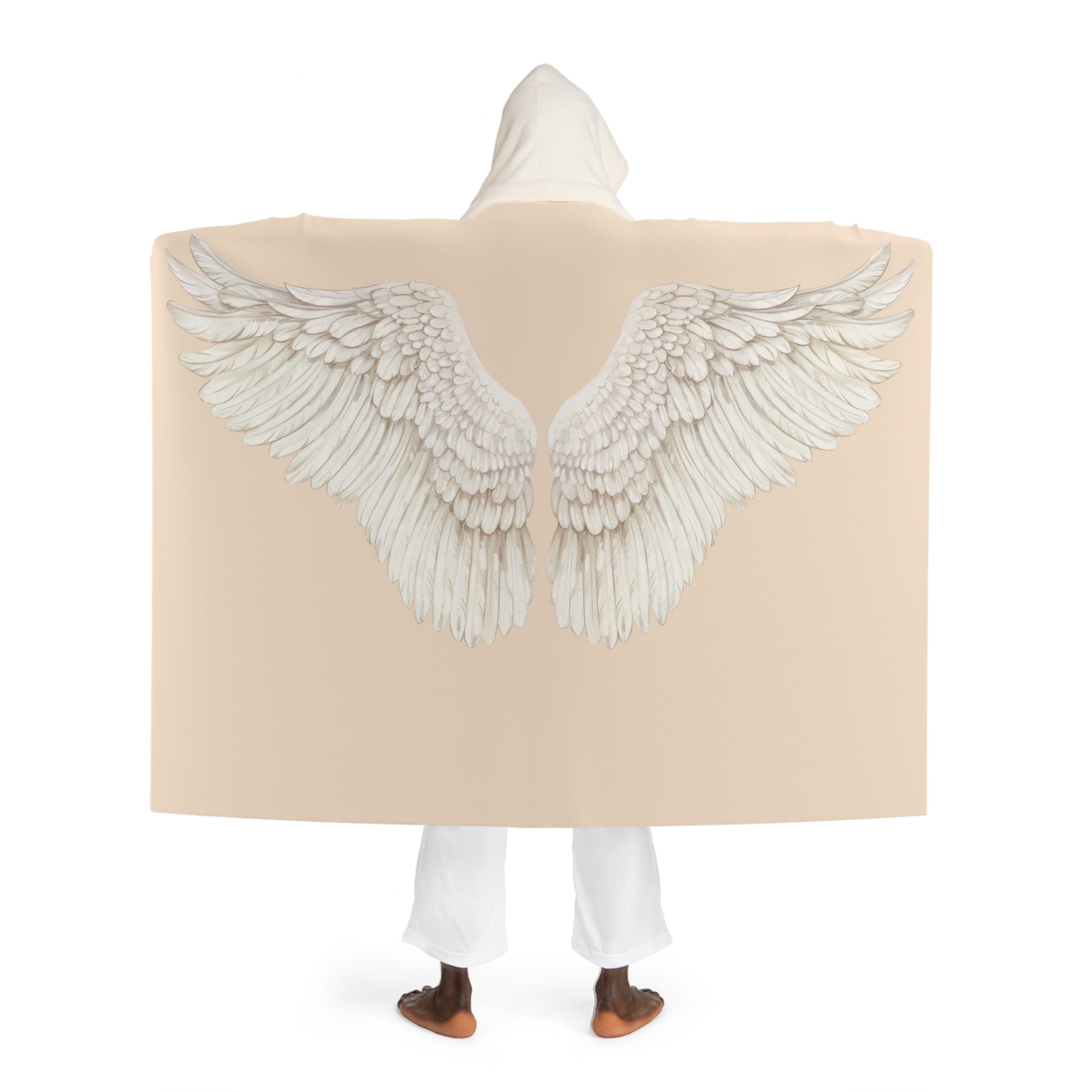 ENGEL FLÜGEL • Kapuzen Kuscheldecke Beige Creme • Wohndecke Sherpa 130cm x 180cm