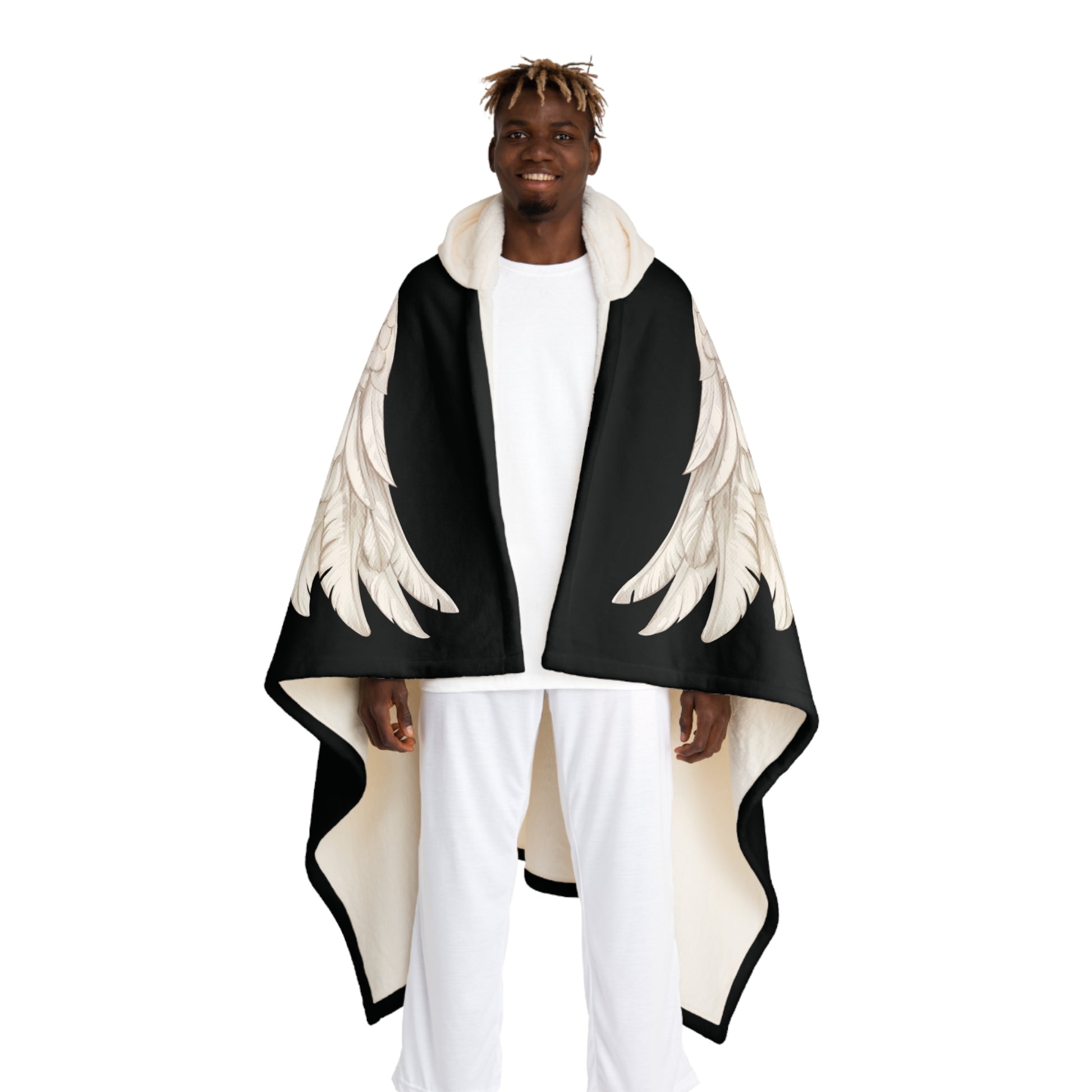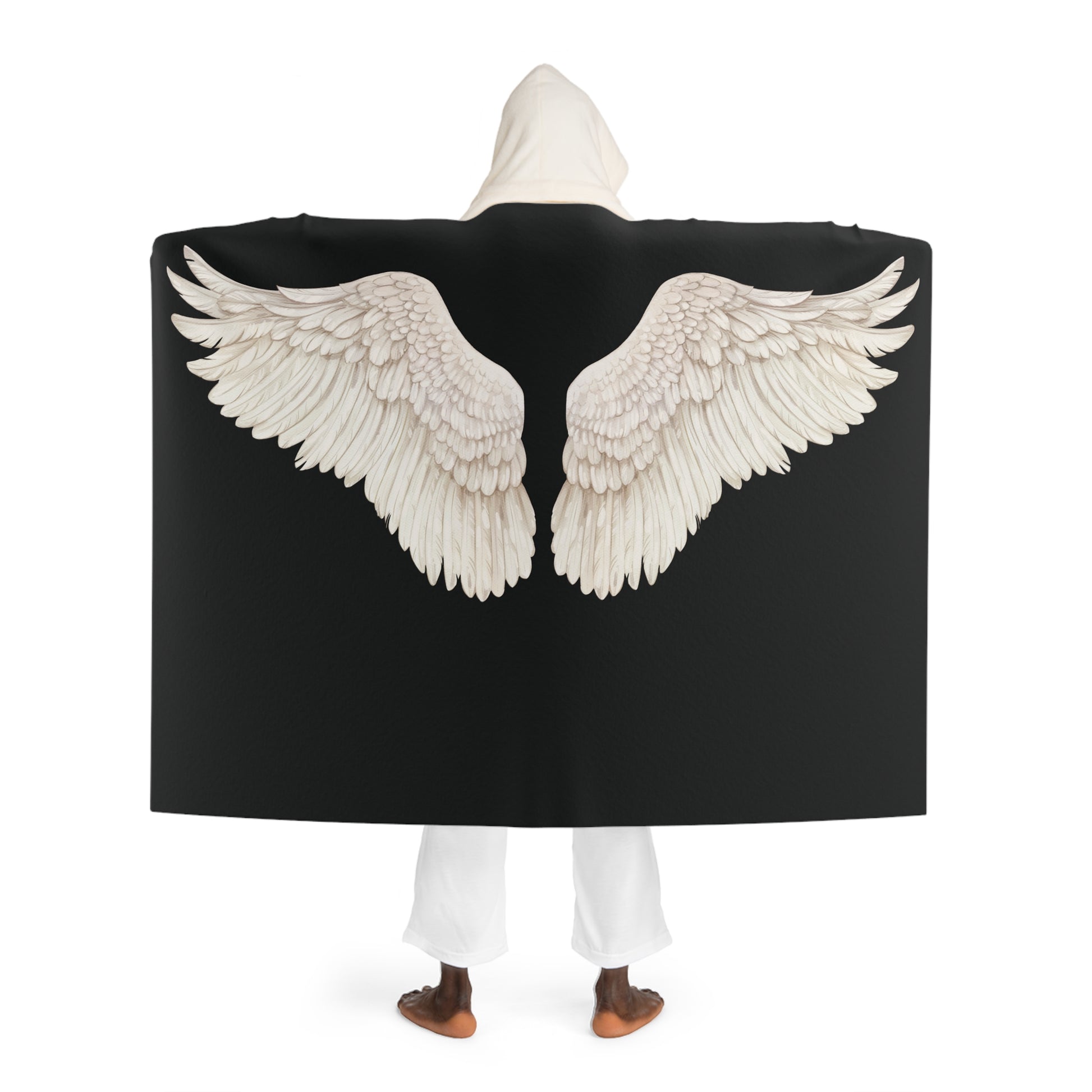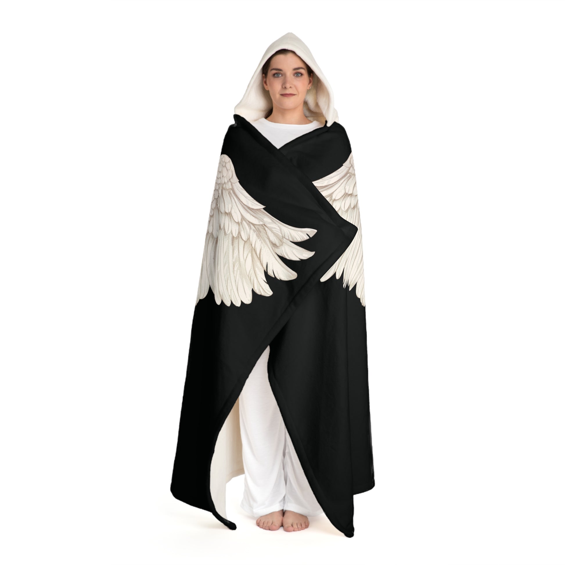 ENGELSFLÜGEL Federn • Kapuzen Kuscheldecke Schwarz • Wohndecke Sherpa 130cm x 180cm